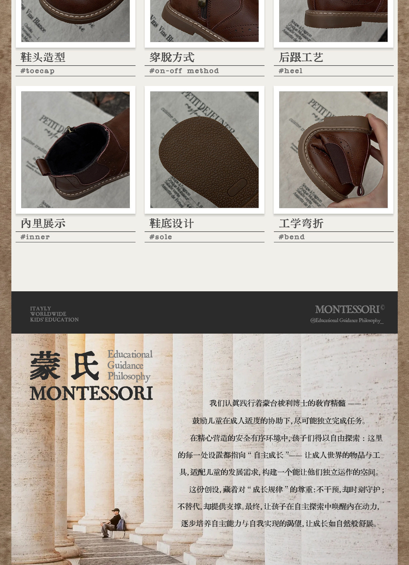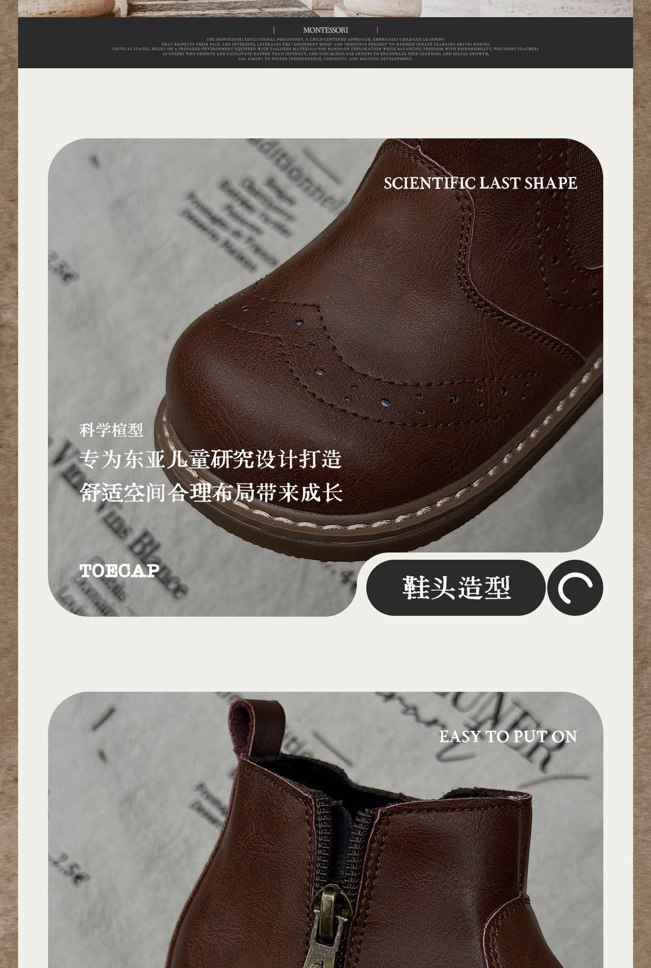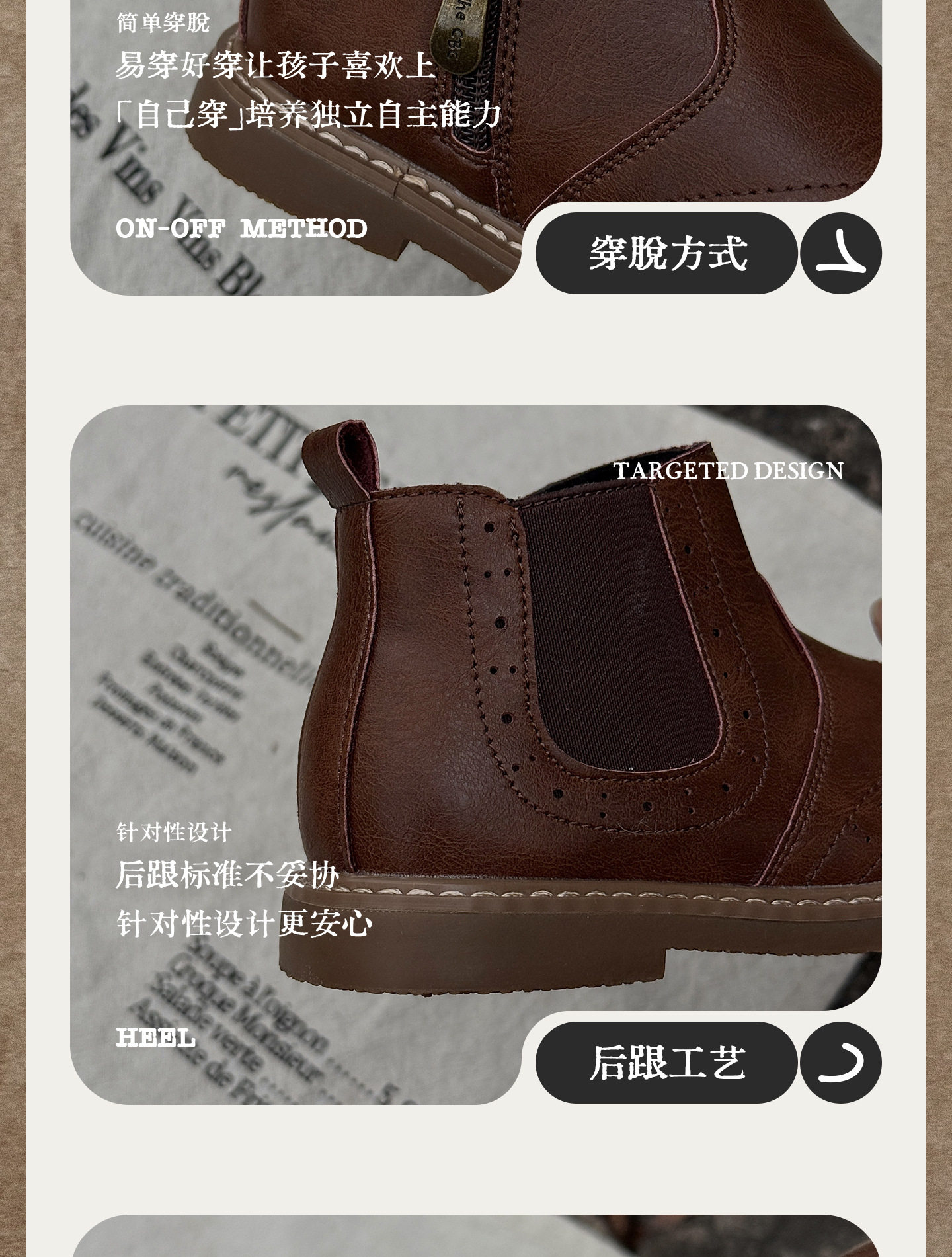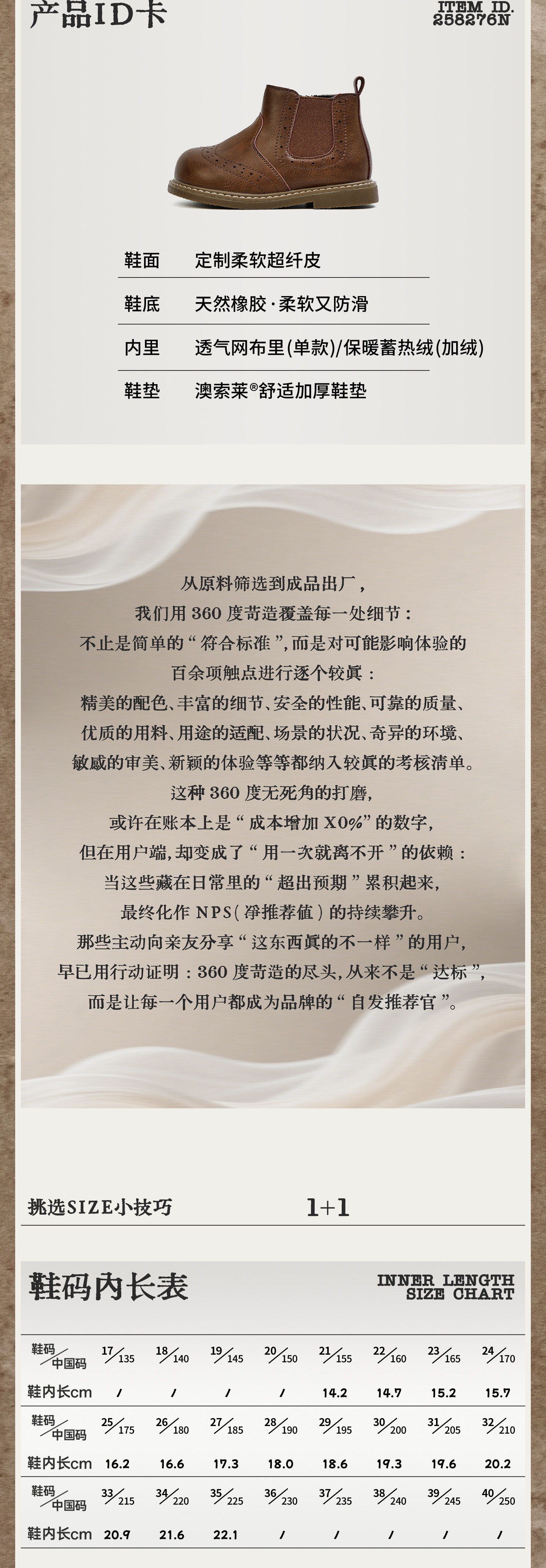 Xshx "London Brogue" Kidsren's Martin Leather Boots for Boys and Girls Side Zipper Chelsea Boots [Wenzhou Shoes]