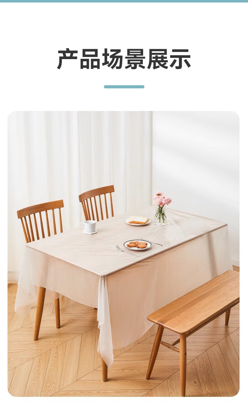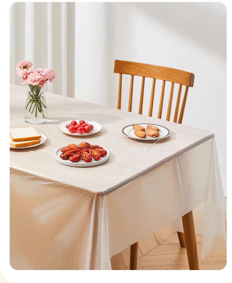 Disposable Tablecloth Waterproof and Oil-Proof Transparent Tablecloth Thickened Household Round Table Long Square Table Cover Plastic Disposable Tablecloth