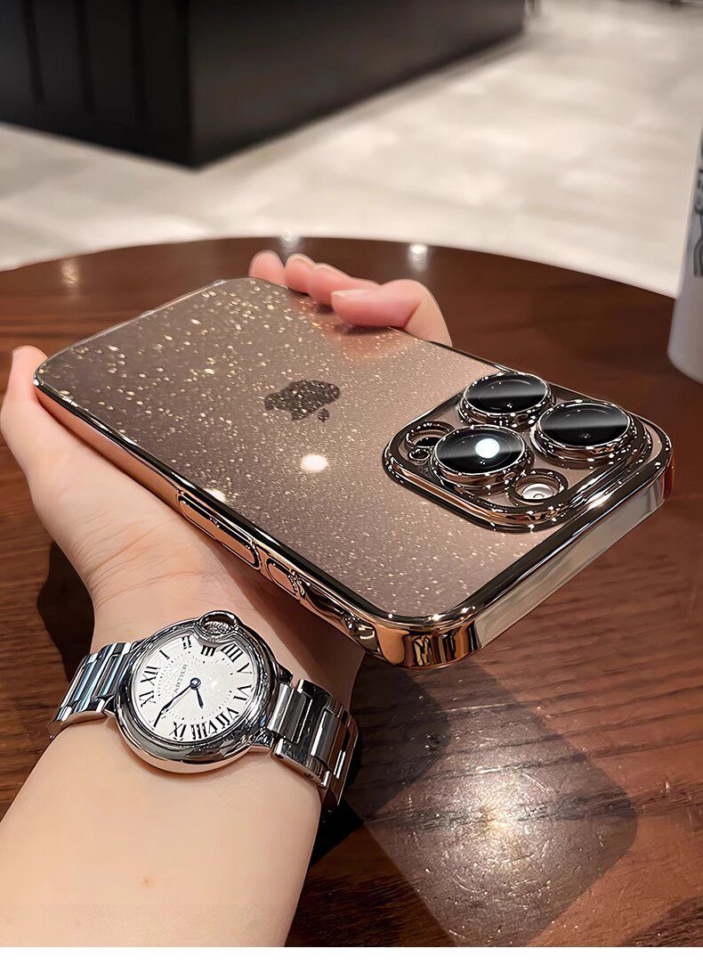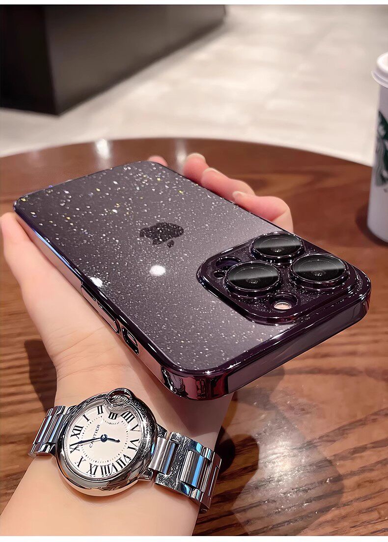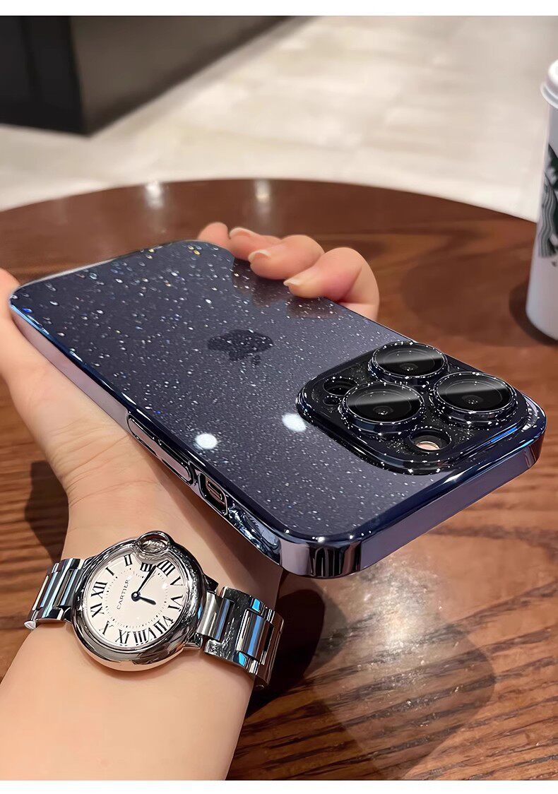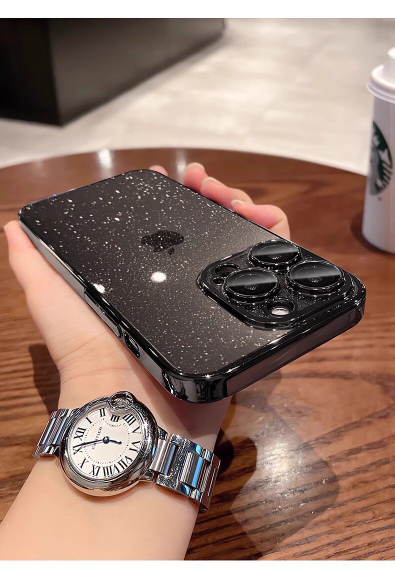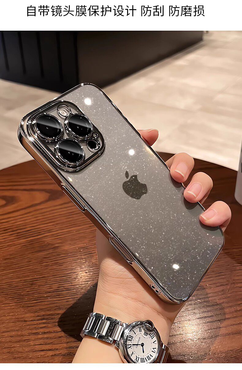 Electroplated Starry Sky Glitter Suitable for Iphone17 Mobile Phone Case Ultra-Thin Apple 14 Transparent Protective Cover with Built-In Lens Film