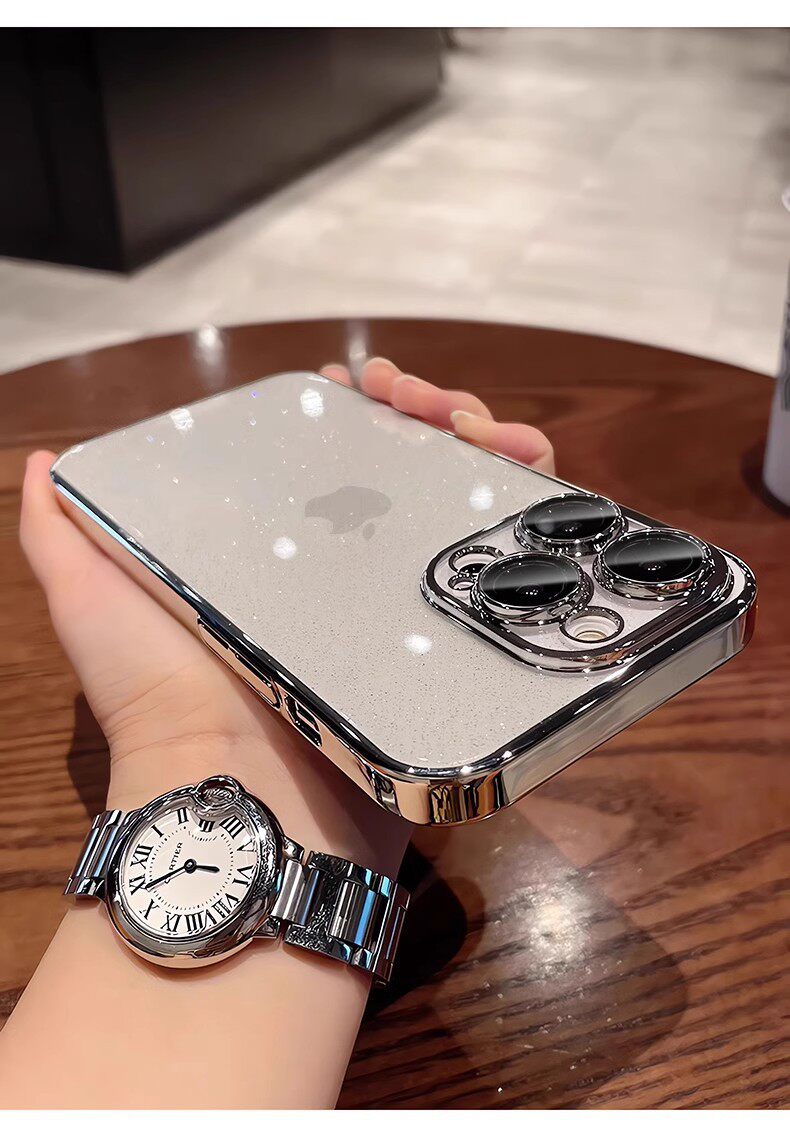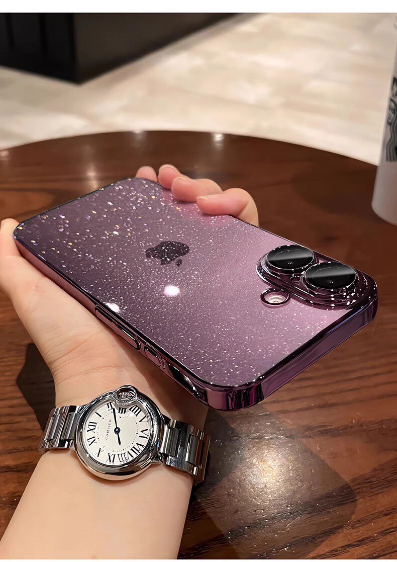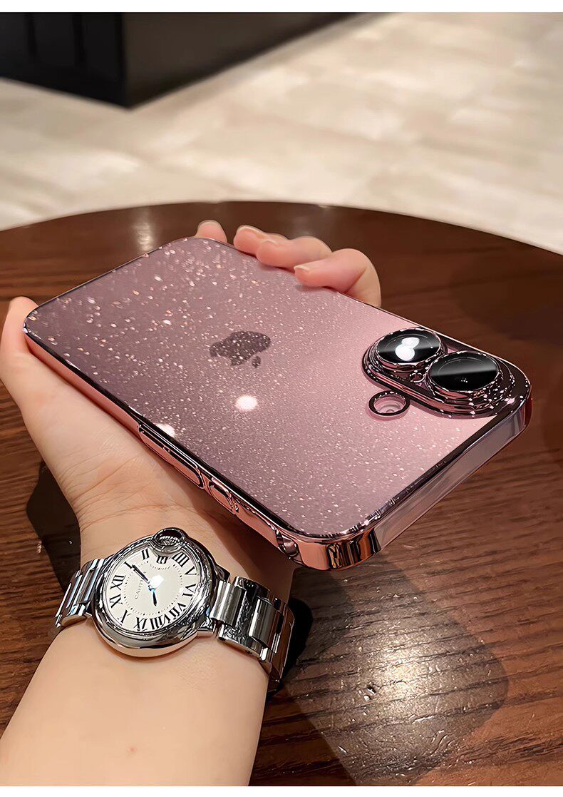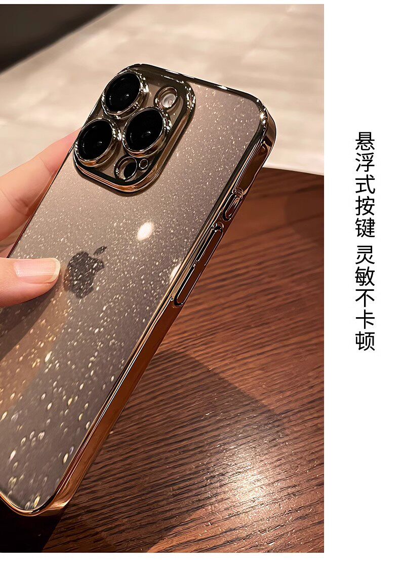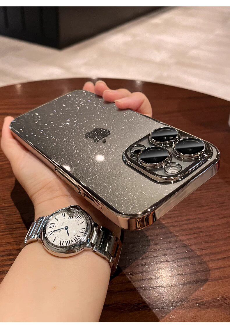 Electroplated Starry Sky Glitter Suitable for Iphone17 Mobile Phone Case Ultra-Thin Apple 14 Transparent Protective Cover with Built-In Lens Film