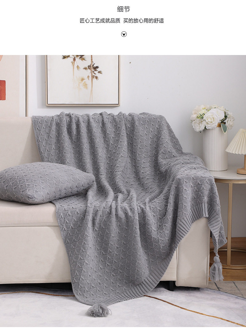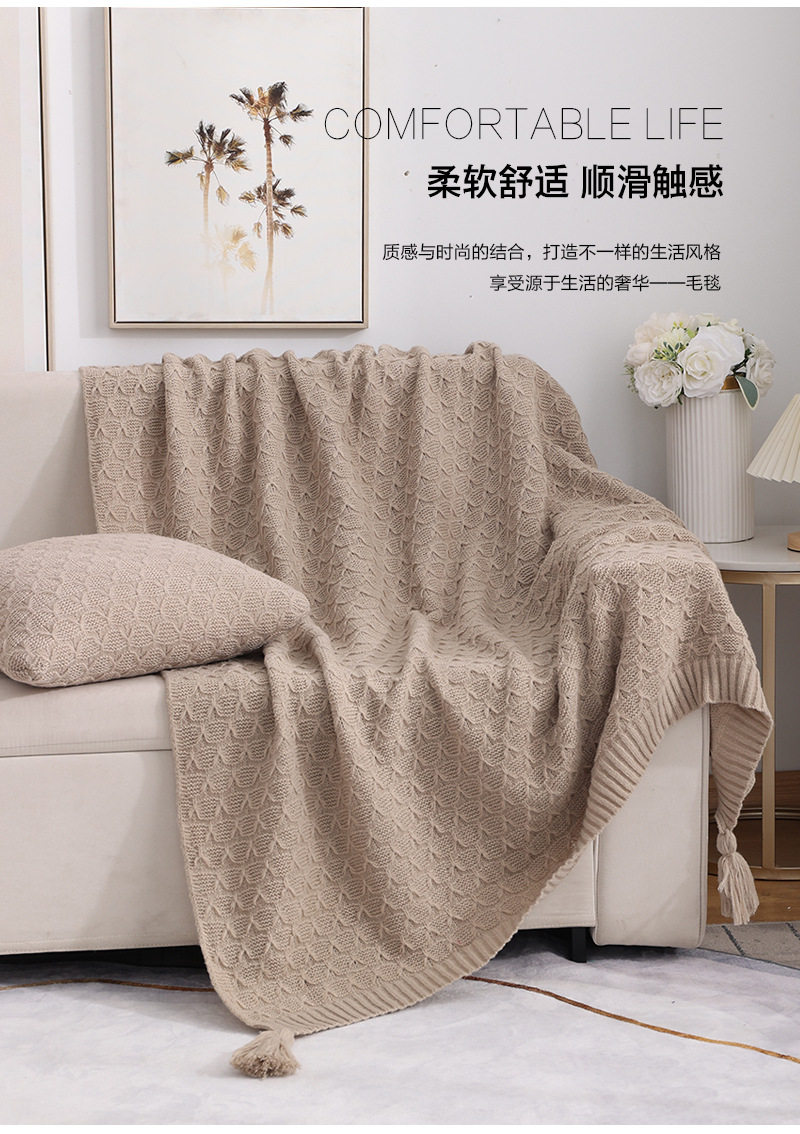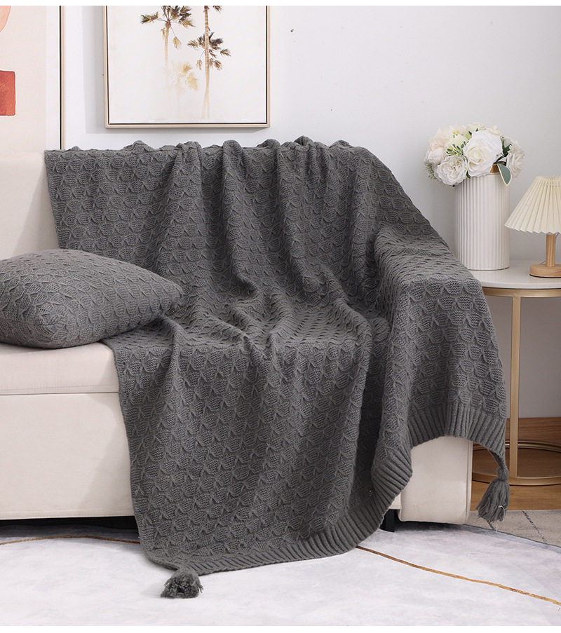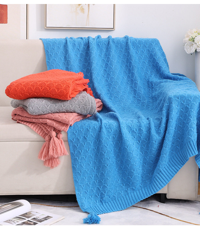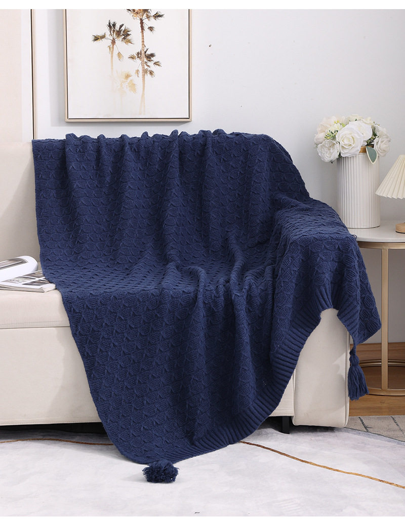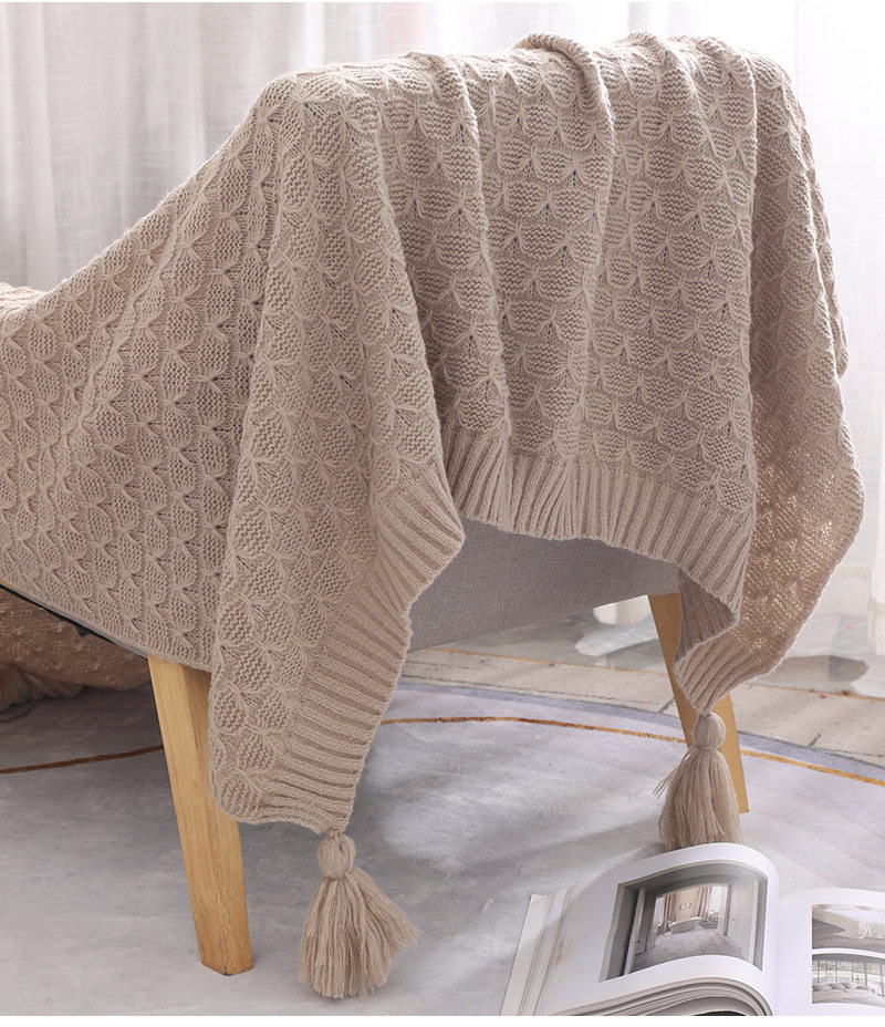 New European Style Tassel Knitted Blanket Thickened Nap Sofa Blanket Office Blanket Bedside Blanket Winter Thick Thread Blanket