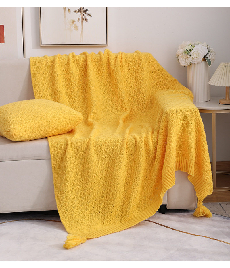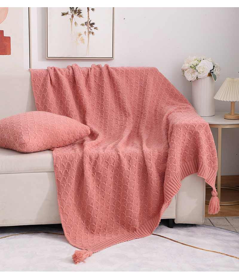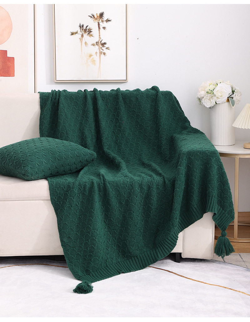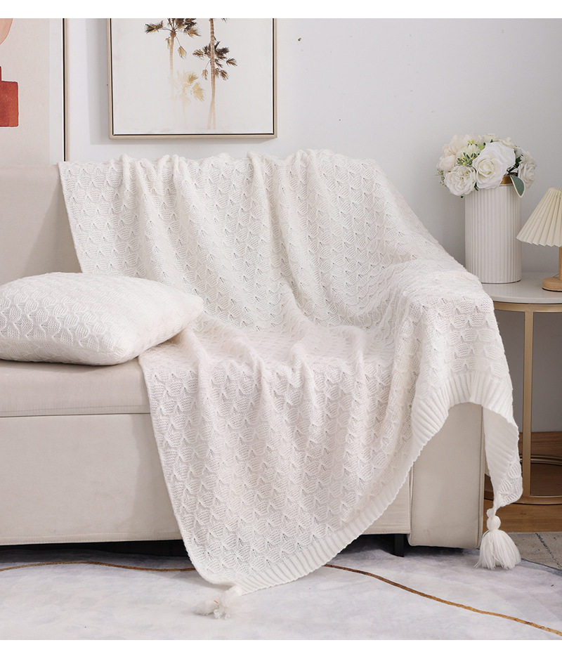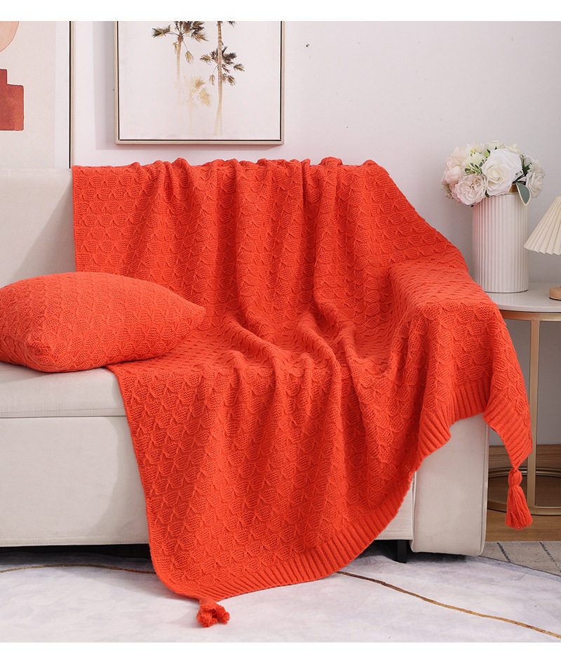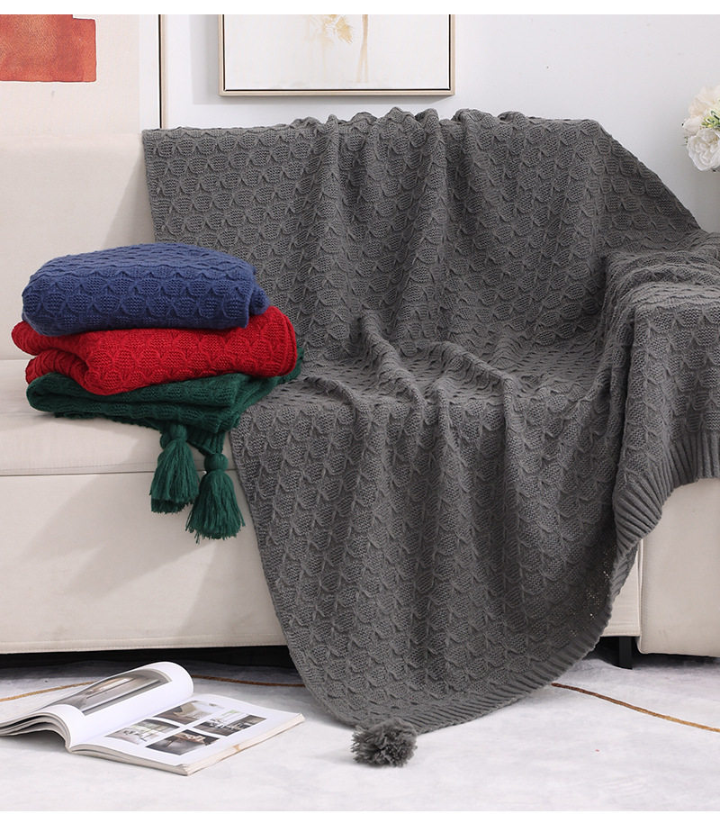 New European Style Tassel Knitted Blanket Thickened Nap Sofa Blanket Office Blanket Bedside Blanket Winter Thick Thread Blanket