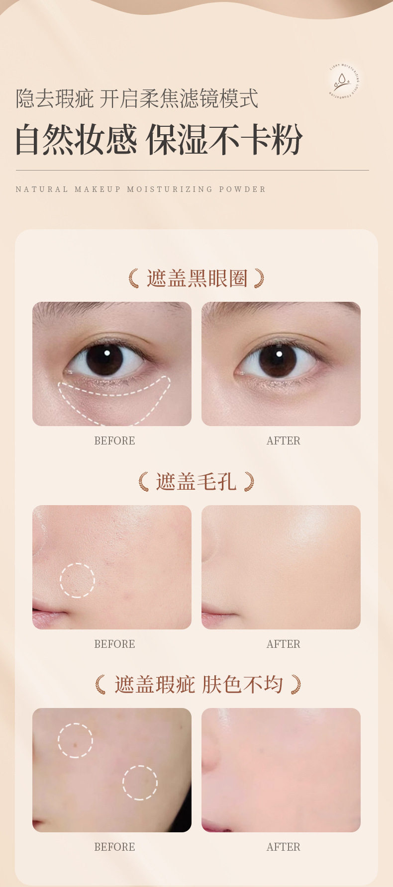 Acino Moisturizing Foundation Lightweight No-stuck Powder Concealer Oil Control Makeup Not Easy to Take off Skin Color Natural