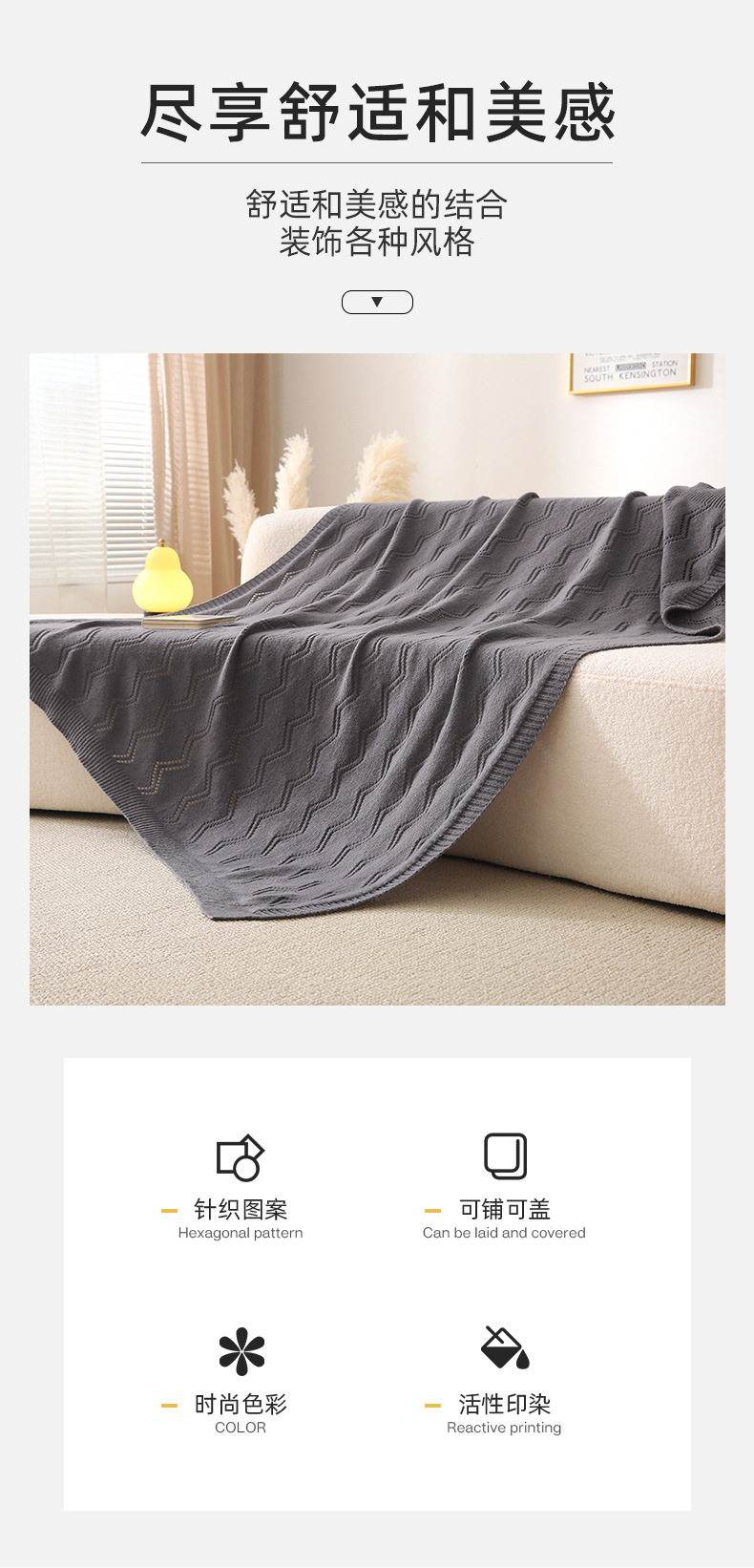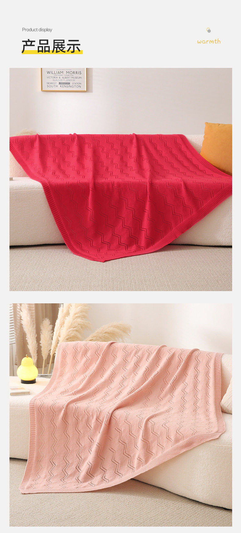 Amazon Cross-Border Solid Color Wavy Blanket Hotel Homestay Nap Blanket Office High-End Blanket Sofa Carpet