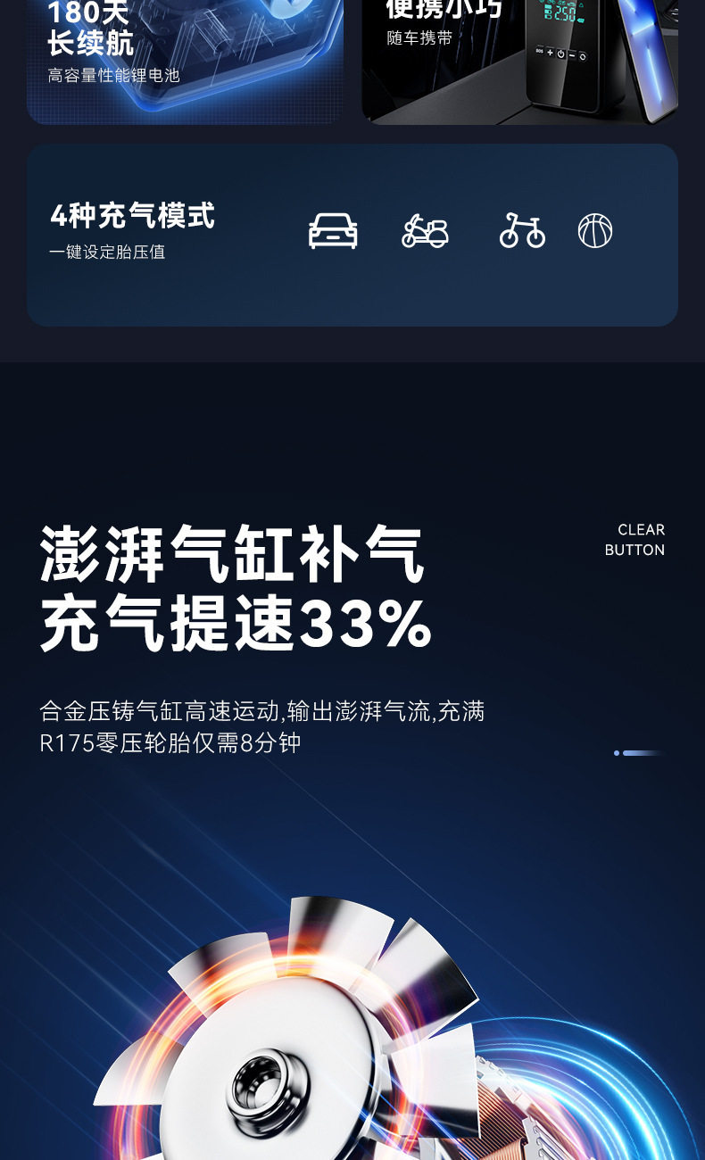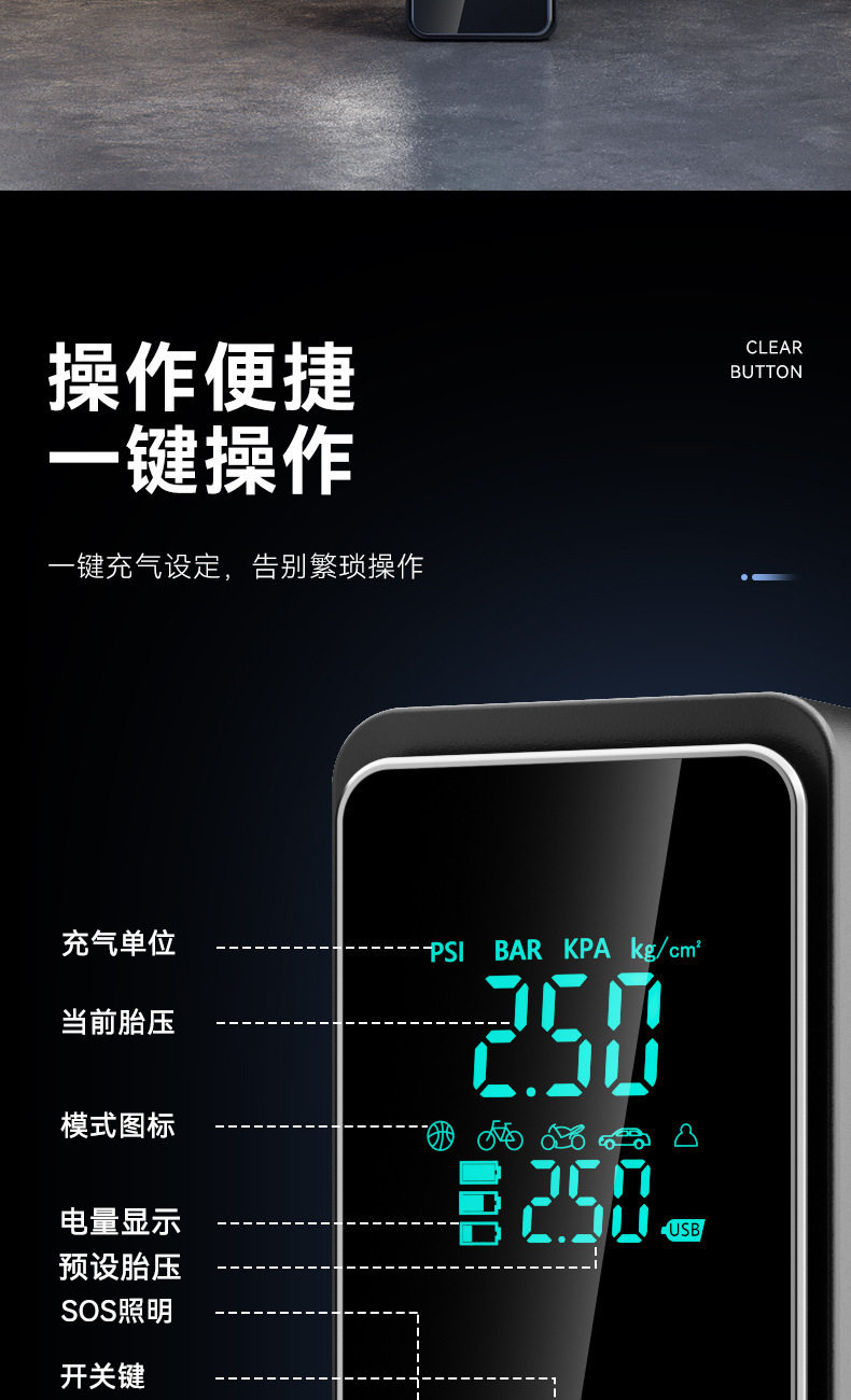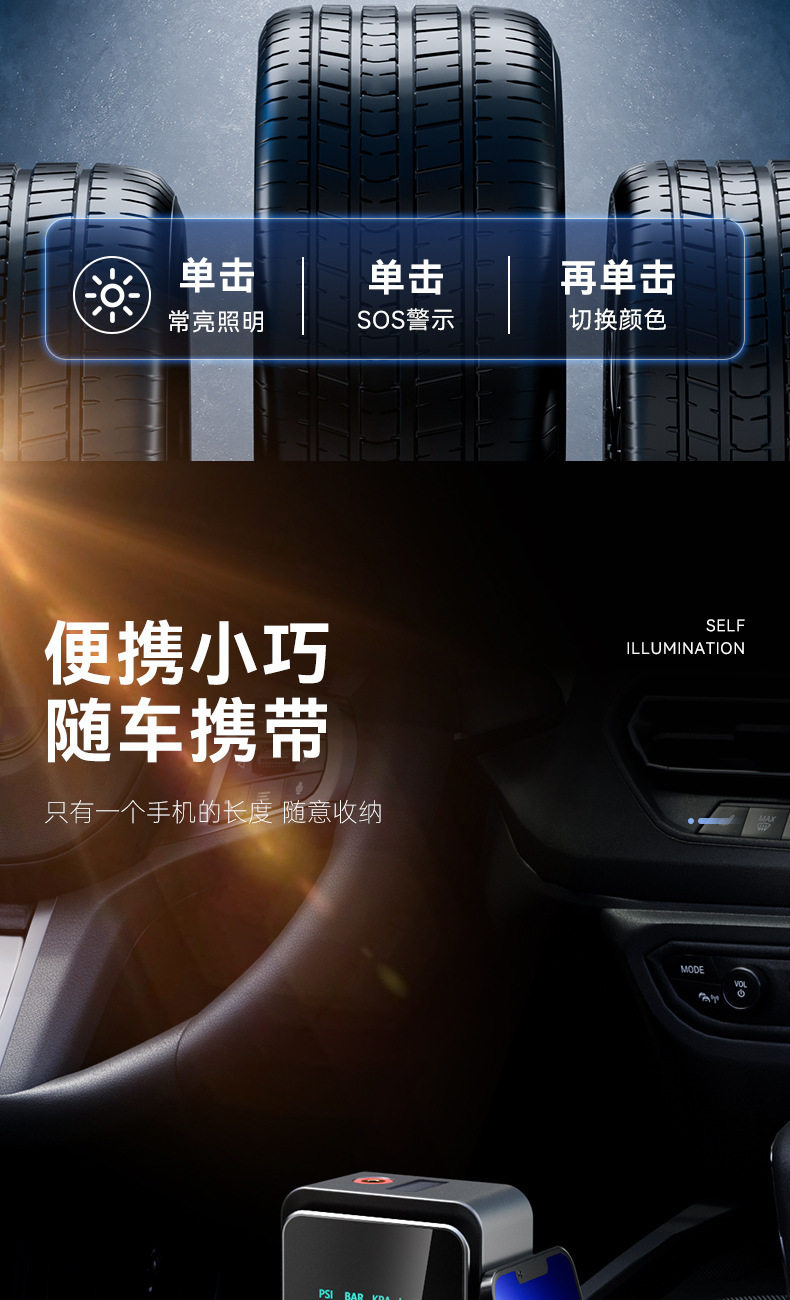 | Additional functions | Lighting,Tire pressure gauge,Warning light,Usb charging |