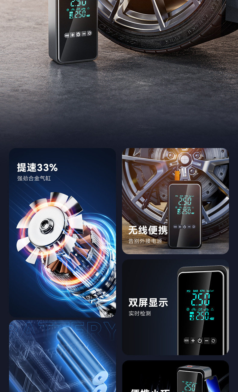 Wireless Car Air Pump, Portable Car Air Pump, Digital Display, Multi-Function Mobile Phone Power Bank, Exclusively for Cross-Border Use