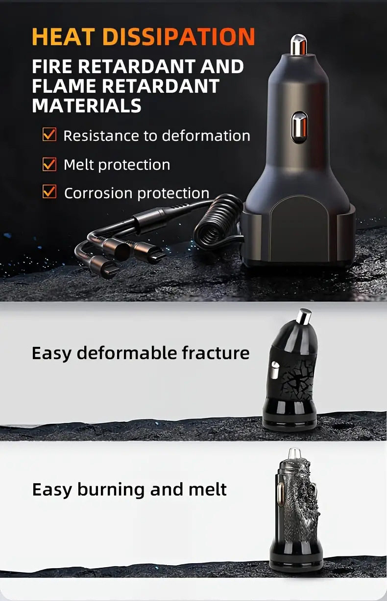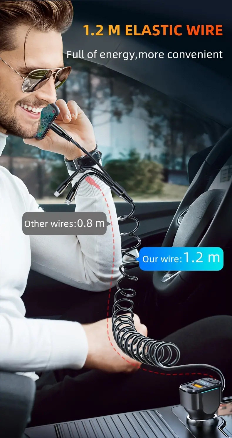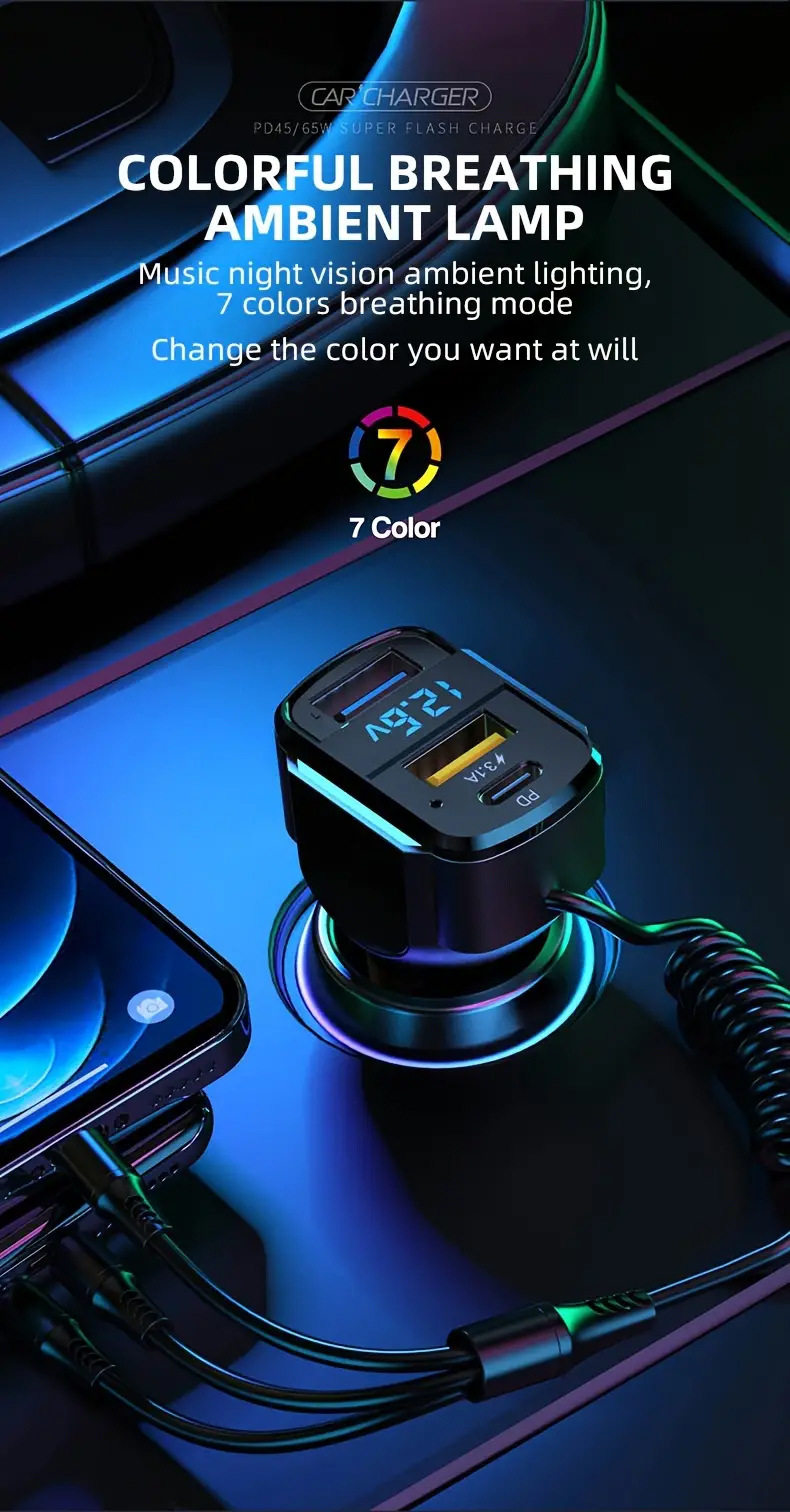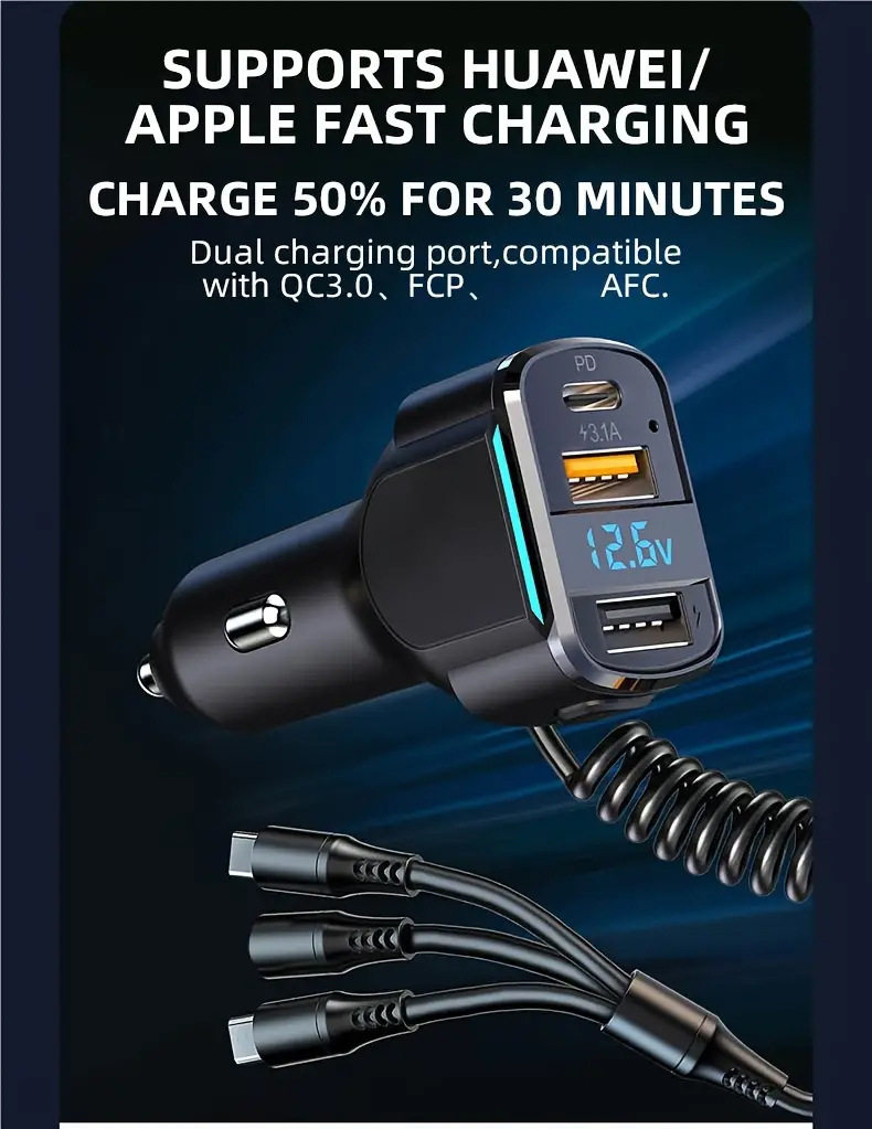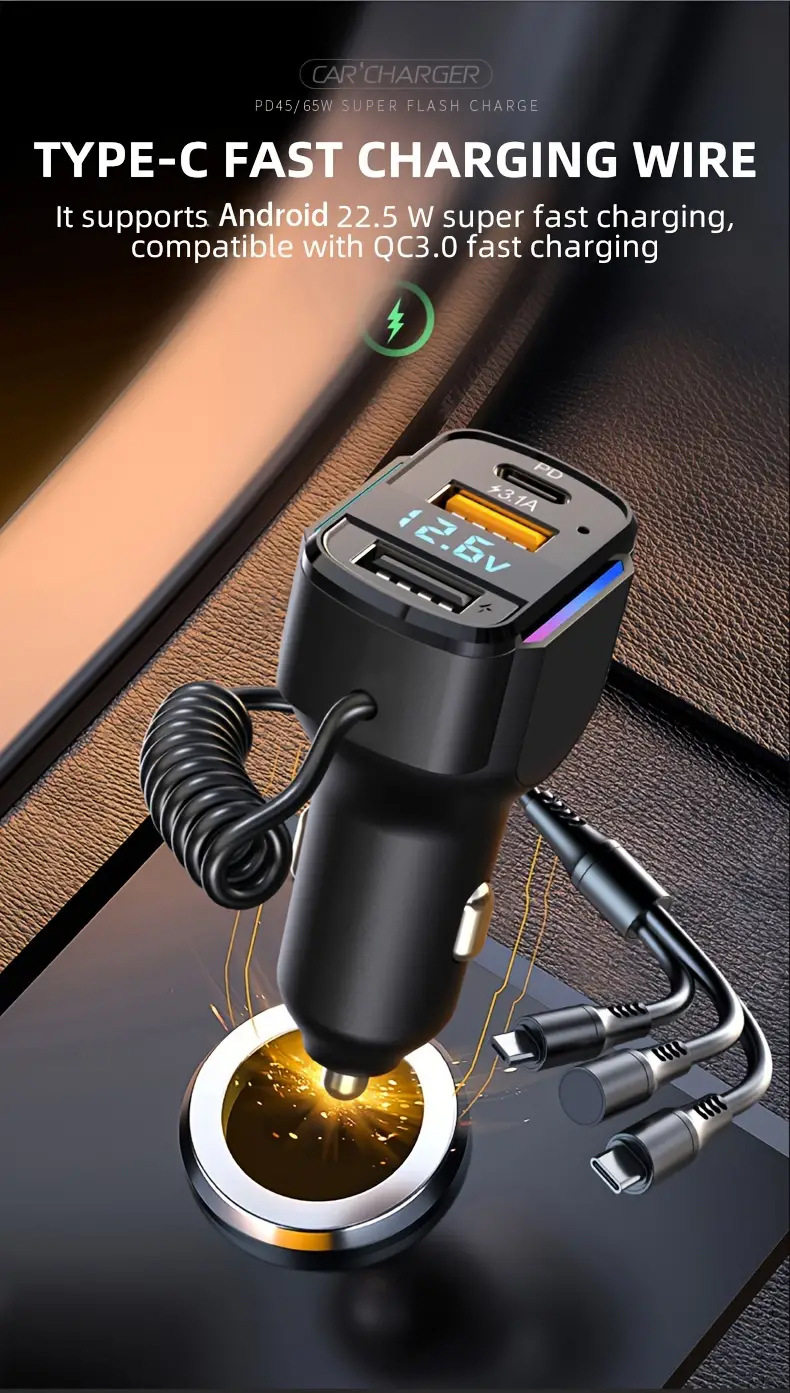 Cross-border new car charger PD fast charging one-to-three charging line high-power intelligent dual usb wired car charger