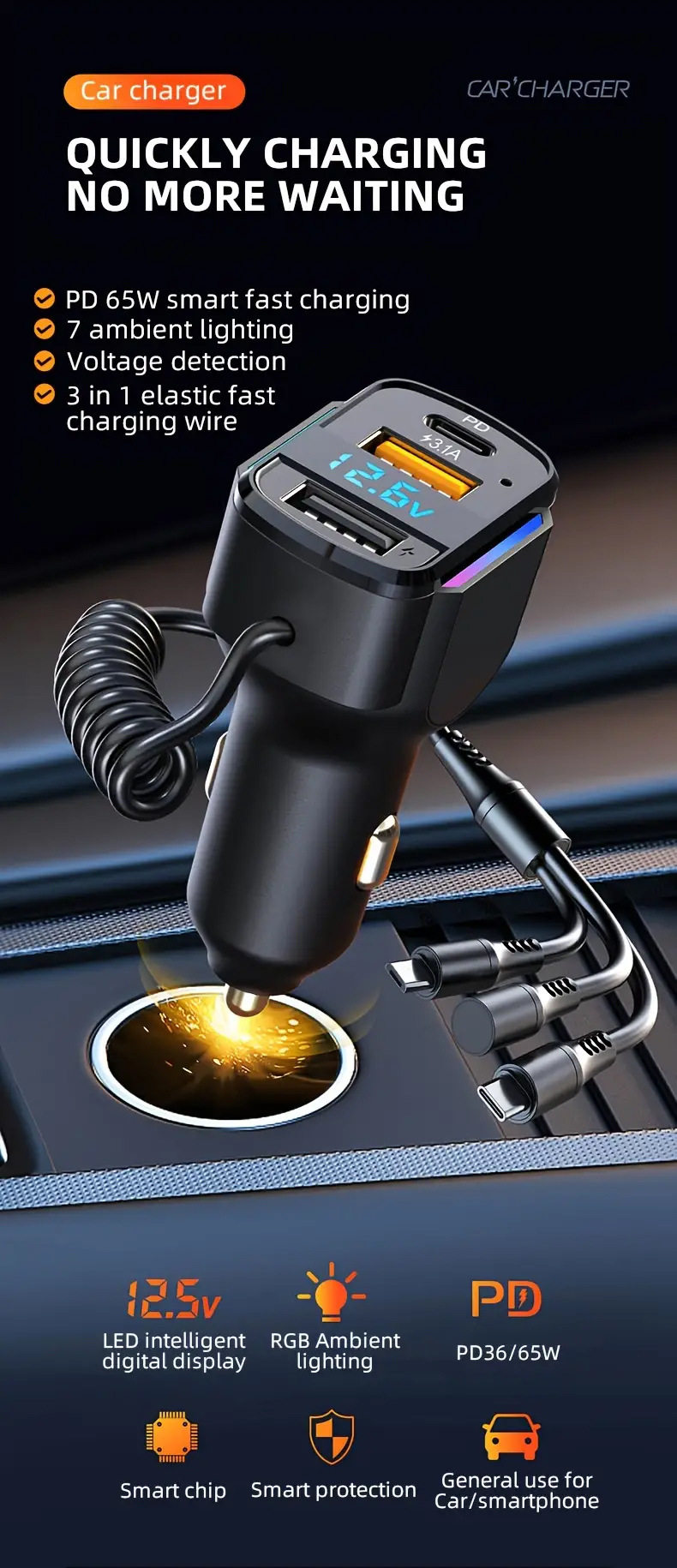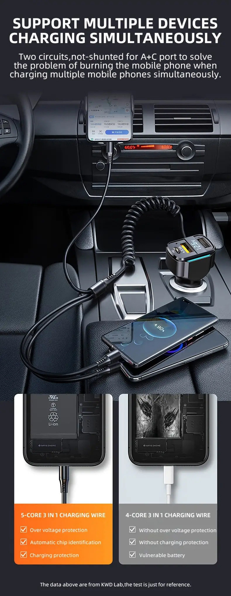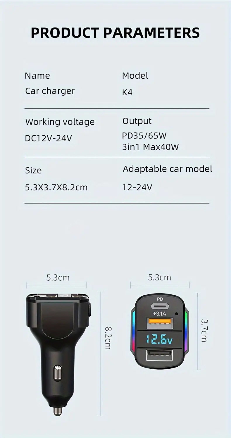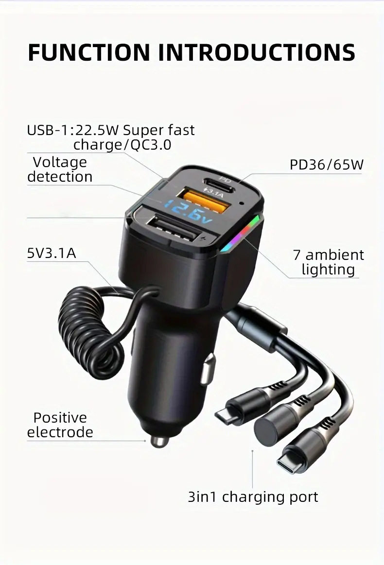 Cross-border new car charger PD fast charging one-to-three charging line high-power intelligent dual usb wired car charger
