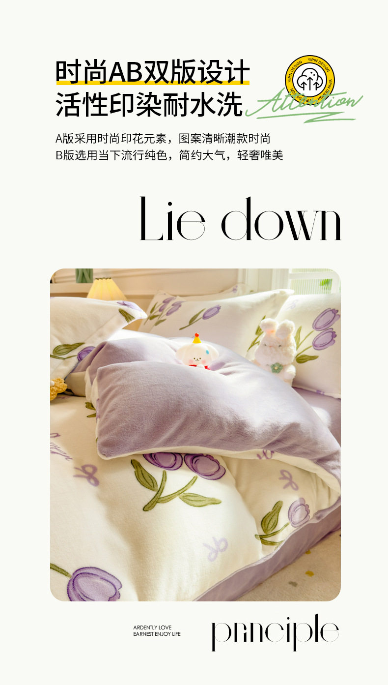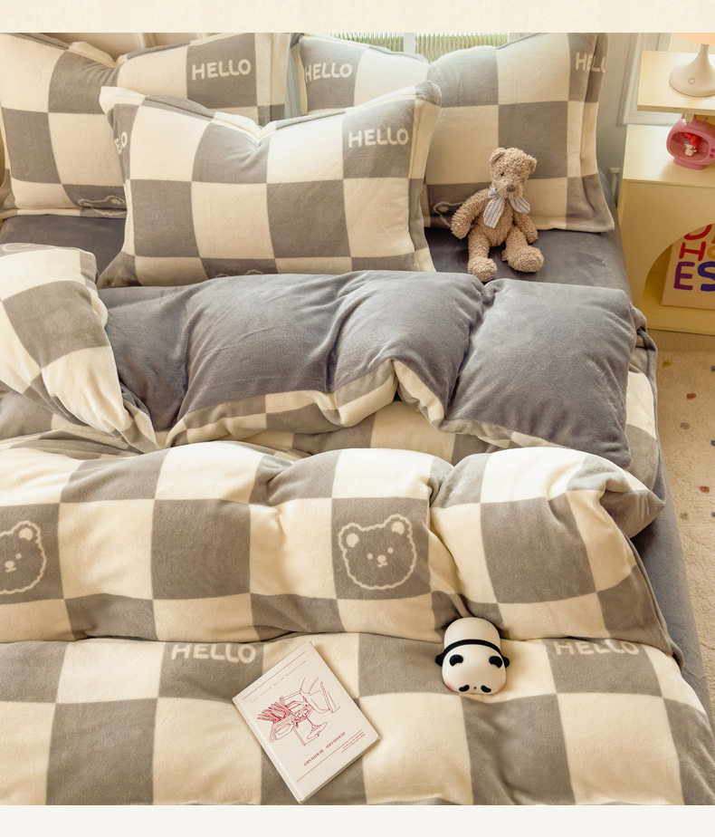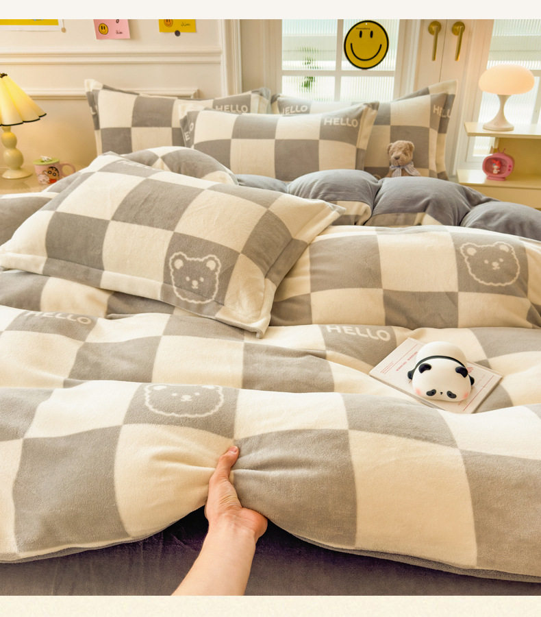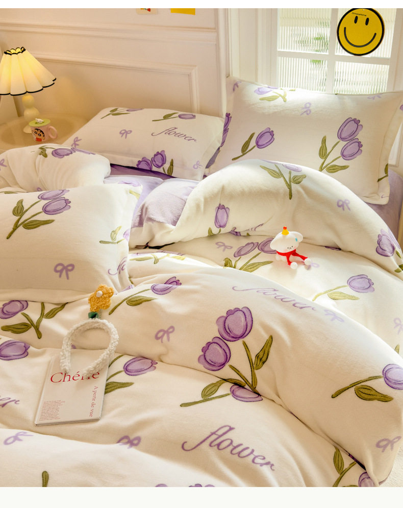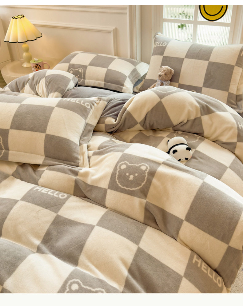 Thickened milk velvet four-piece set coral flannel double-sided fleece-lined bed sheet quilt cover bed three-piece set wholesale