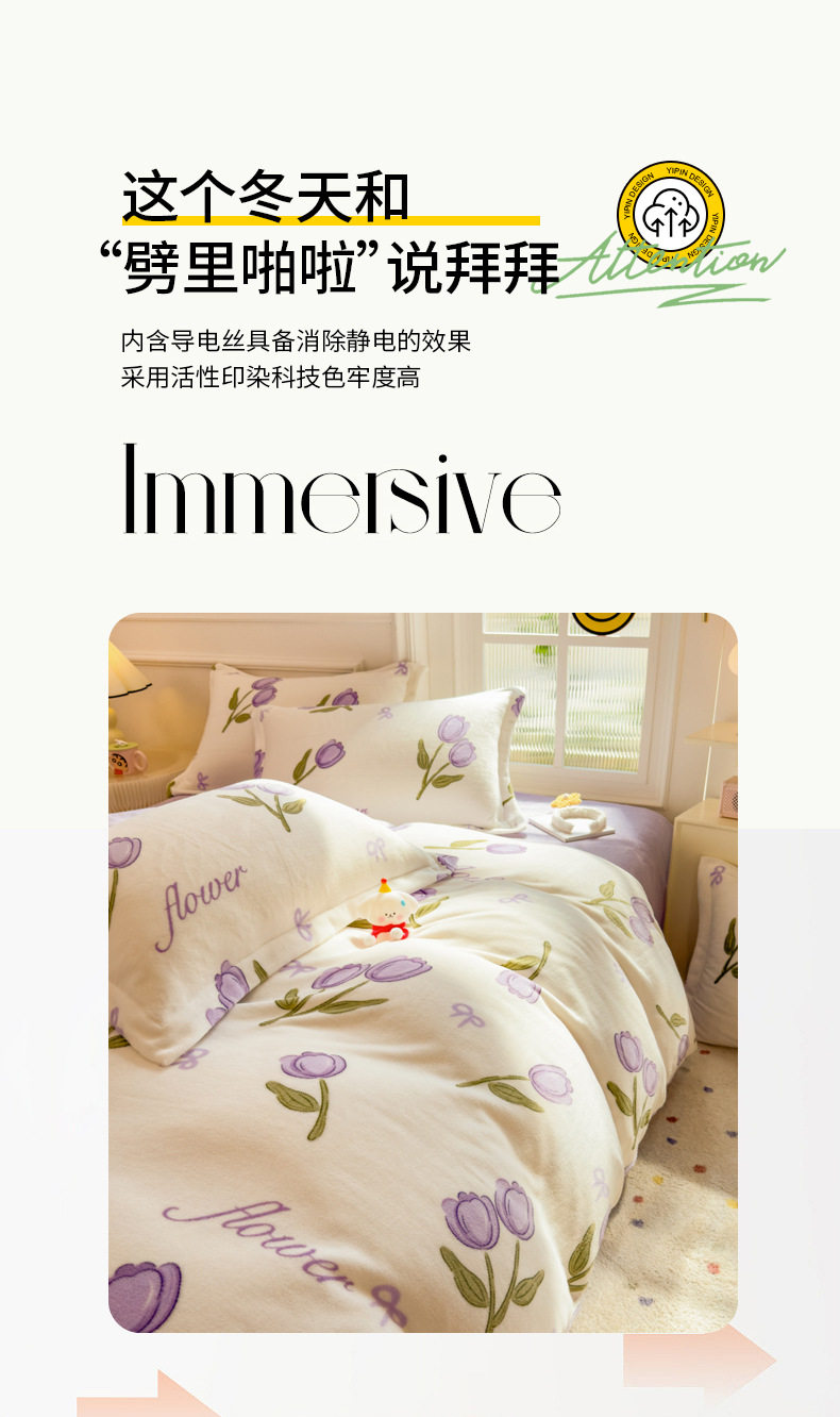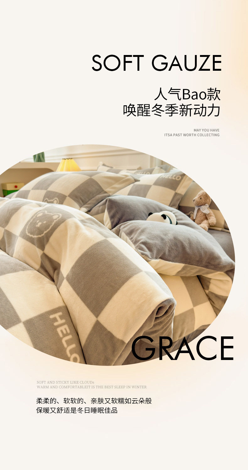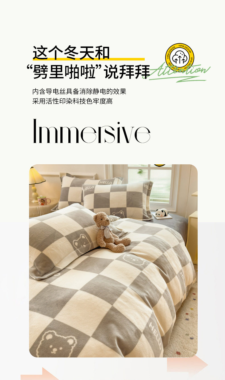 Thickened milk velvet four-piece set coral flannel double-sided fleece-lined bed sheet quilt cover bed three-piece set wholesale