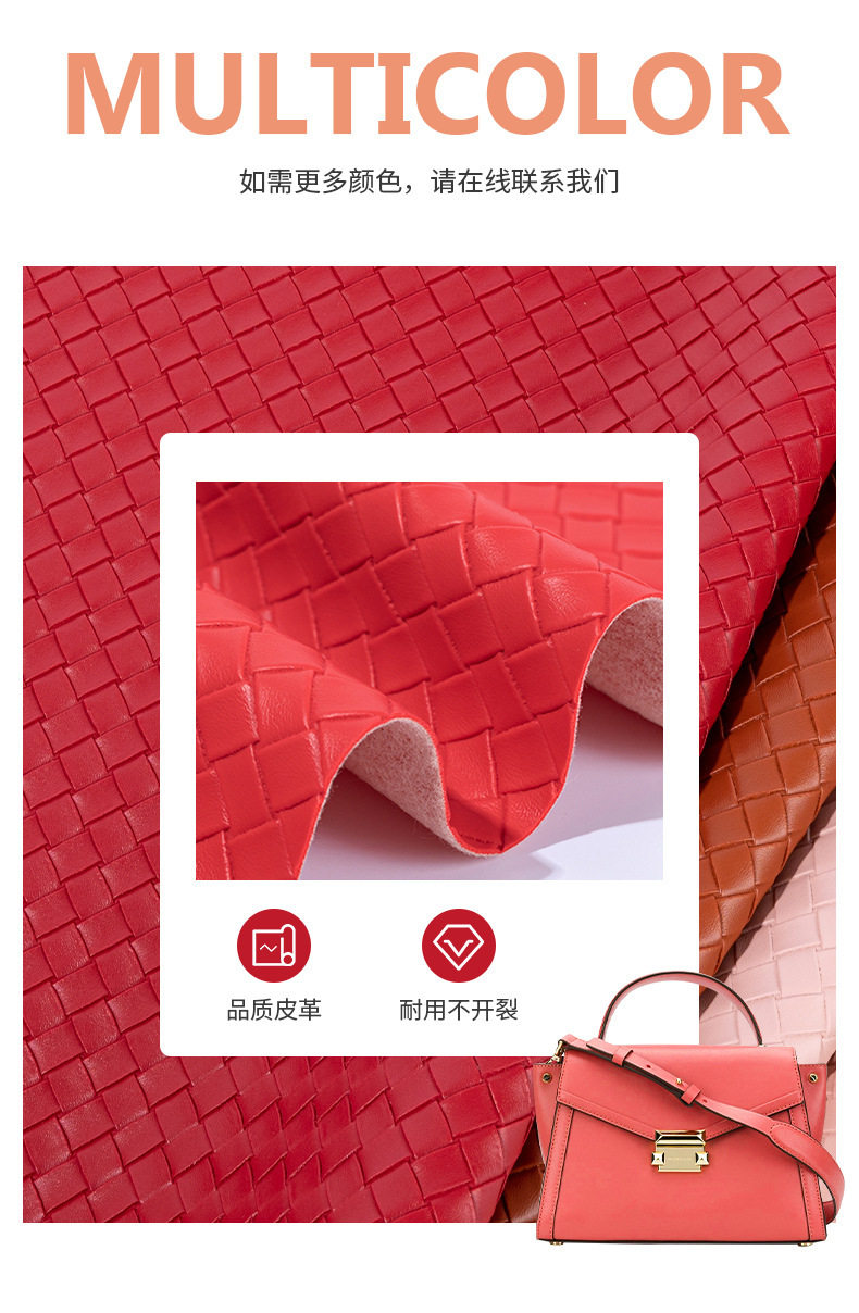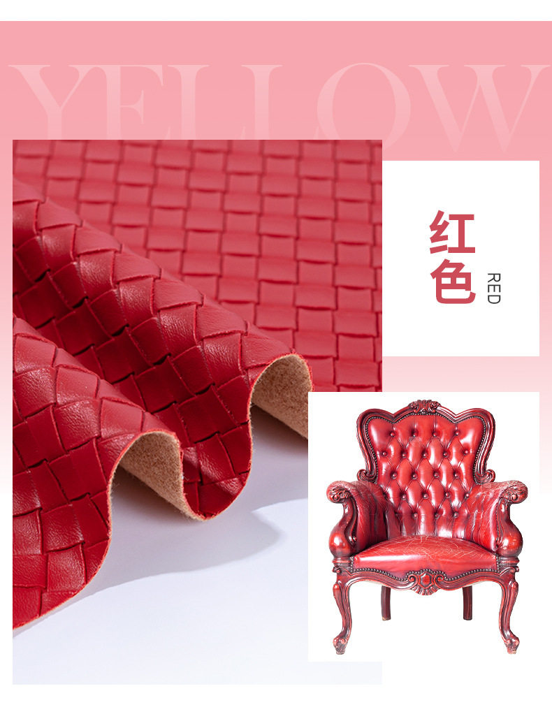 Factory 1.1mm woven plaid embossed PVC artificial leather dining table bags stationery shoe leather