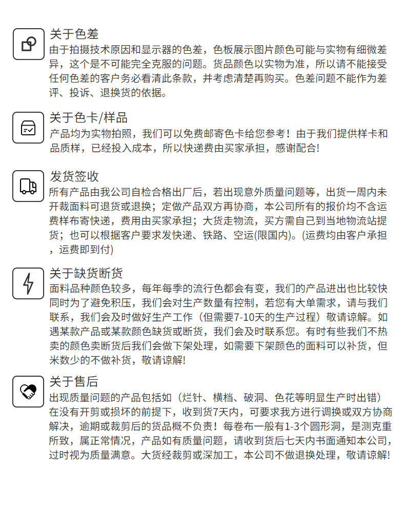 | Specifications | Color card,Please note the color number when placing an order (minimum of loose cuts within one piece),Please note the color number when placing an order (large quantity is more than one piece),For large quantities, please negotiate again |