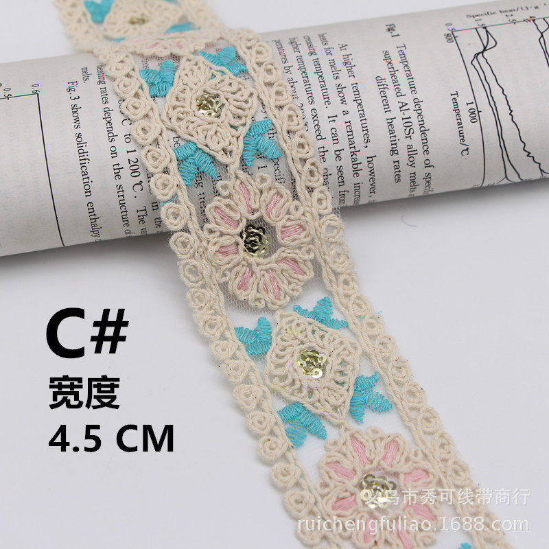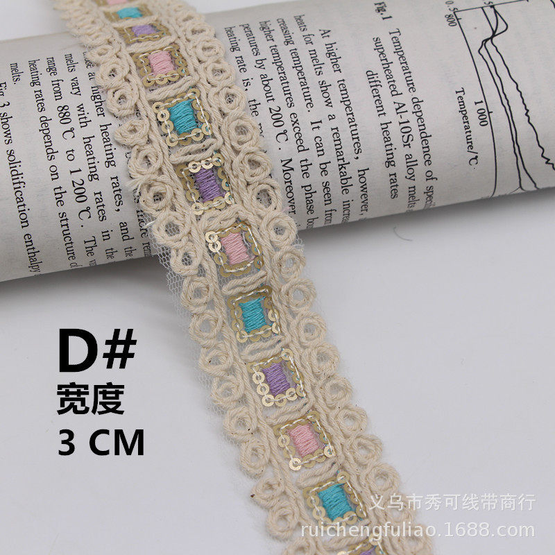 New Ethnic Style Embroider Car Strand Lace Rhombus Sequin Barcode Cotton Thread Strand Rope Embroider Clothing Accessories Han Dynasty Decoration