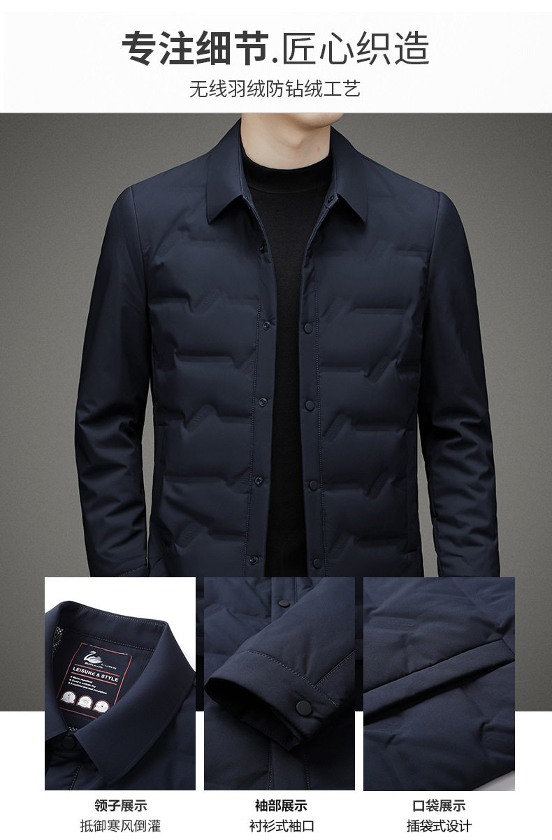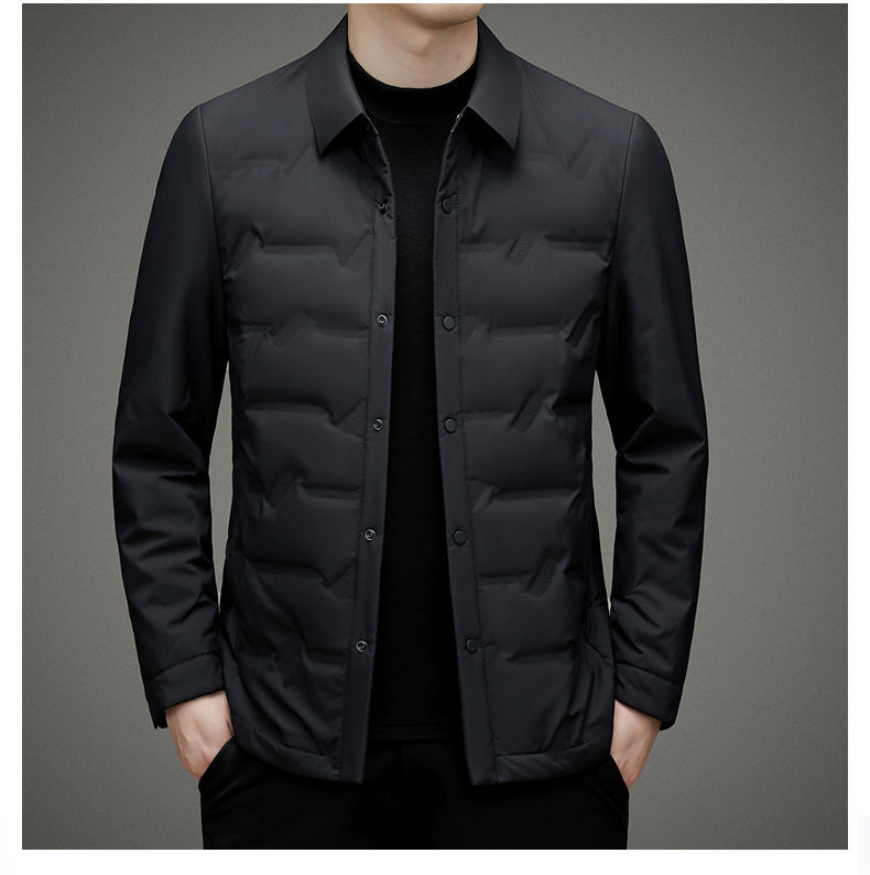 Cross-Border Stable Supply 2025 New Men's down Jacket with Lapel, Winter Business Casual Duck down Coat for Middle-Aged Men