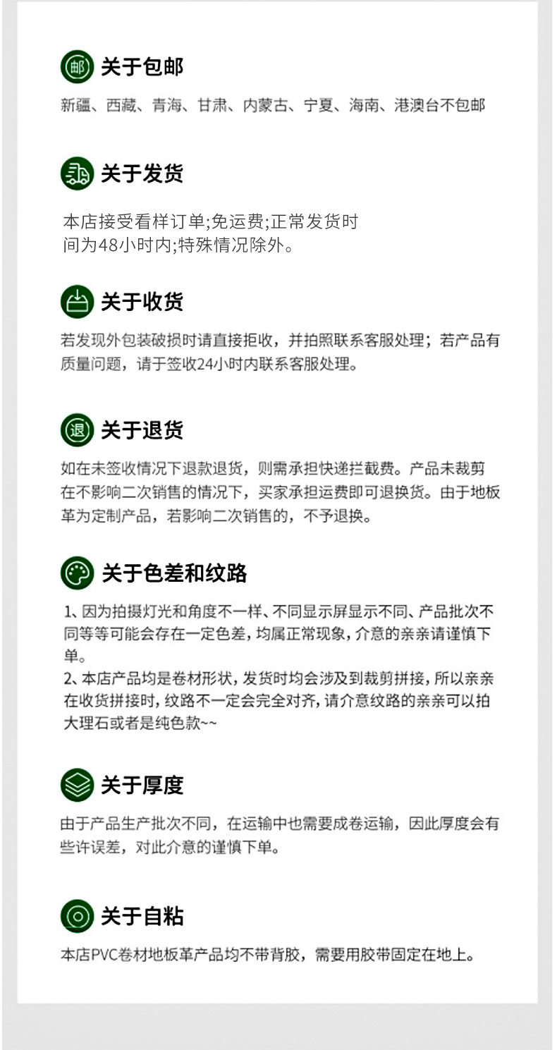 | Color | Diamond leather floor pattern,King kong leather jiangnan gray,Diamond leather yellow peach wood,Diamond leather rosewood,King kong leather birch,Diamond leather ceramic tile pattern |