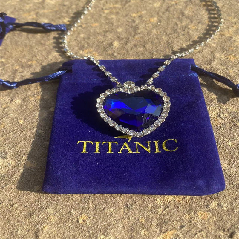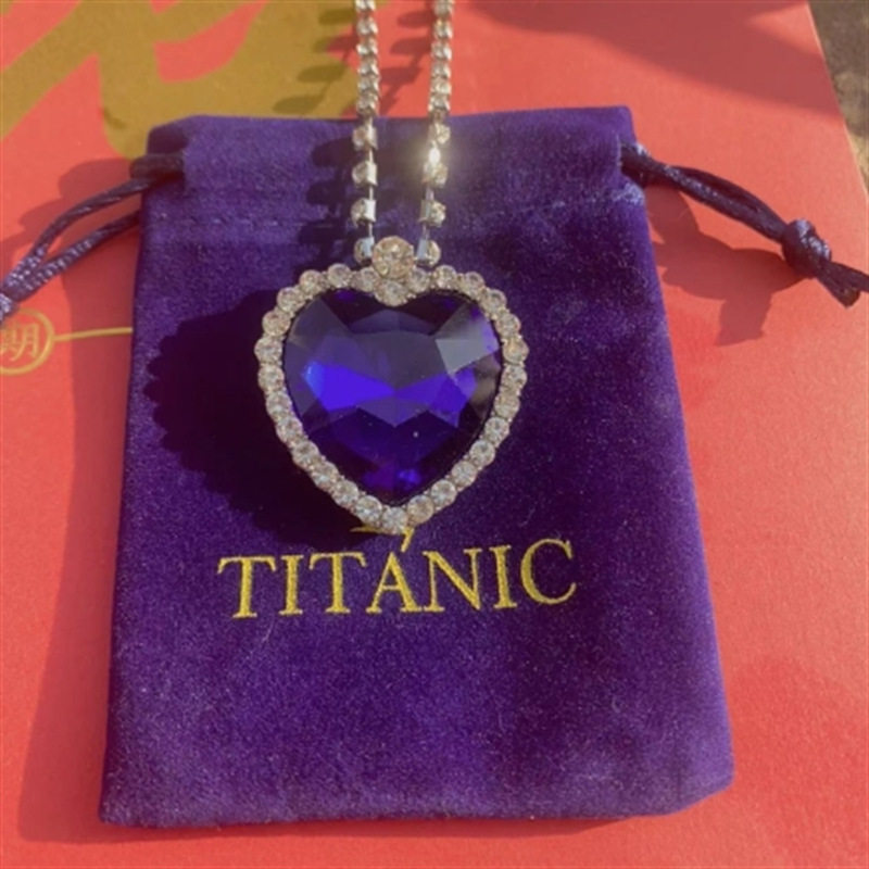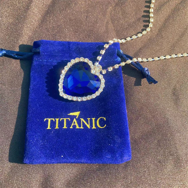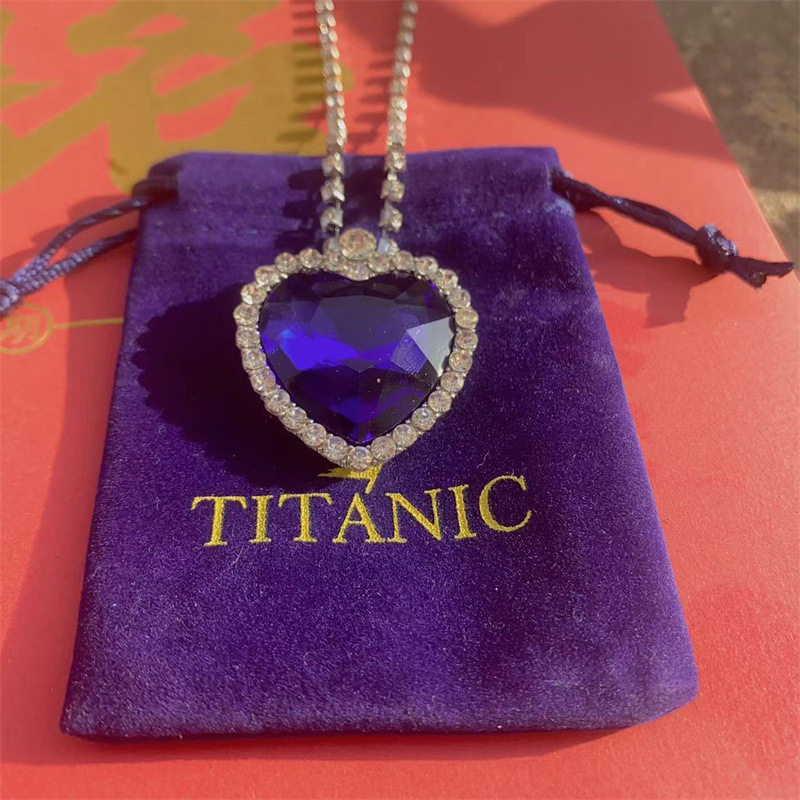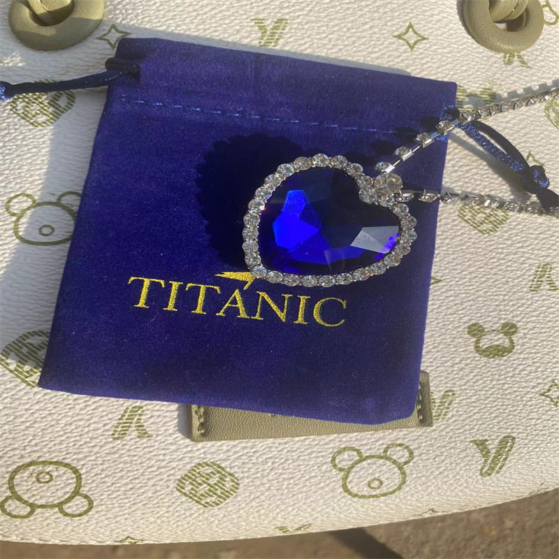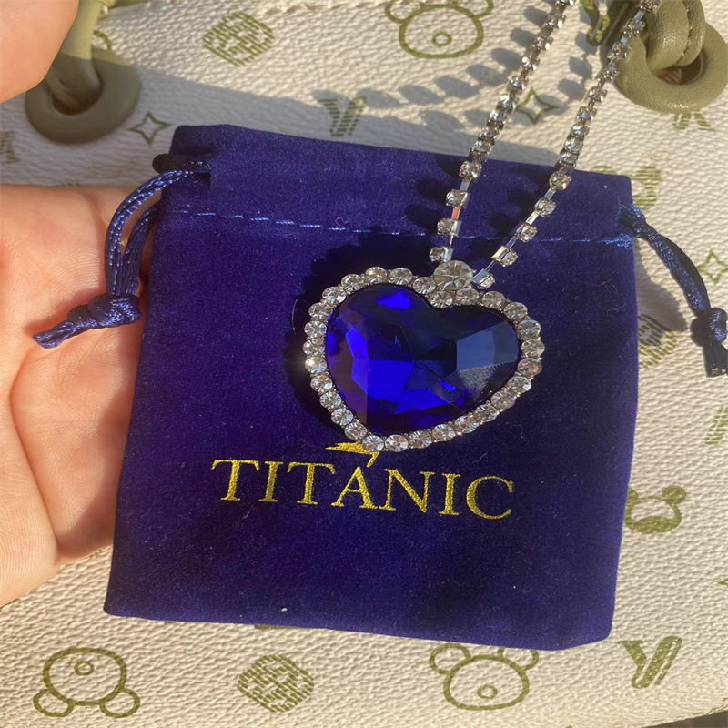 2025 Cross-Border New Ocean Heart Blue Necklace Women's European and American Style Titanic High-End Pendant