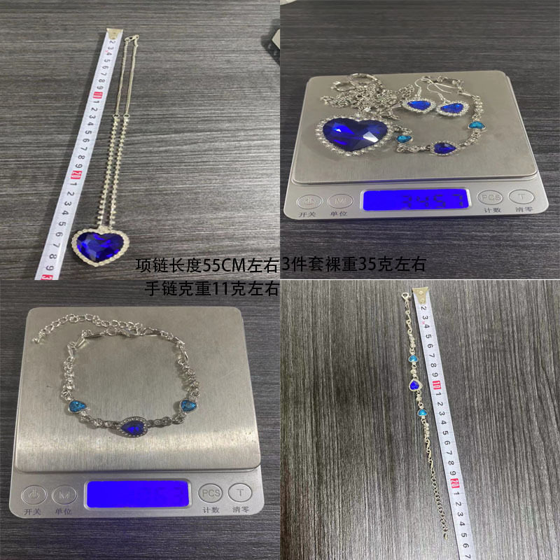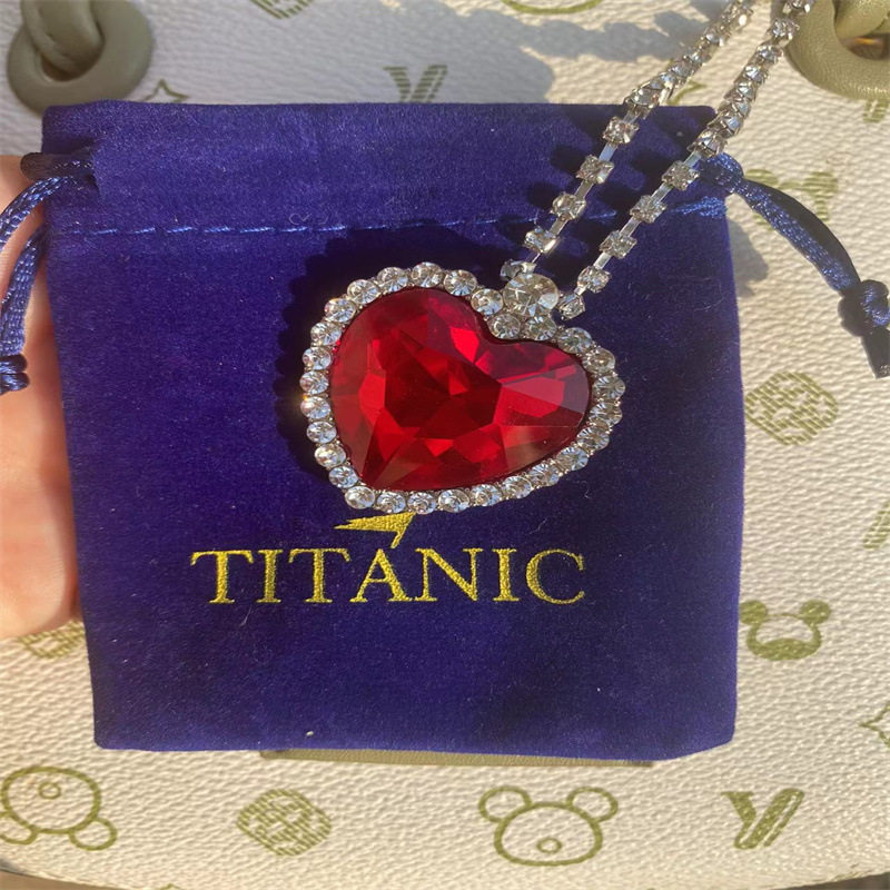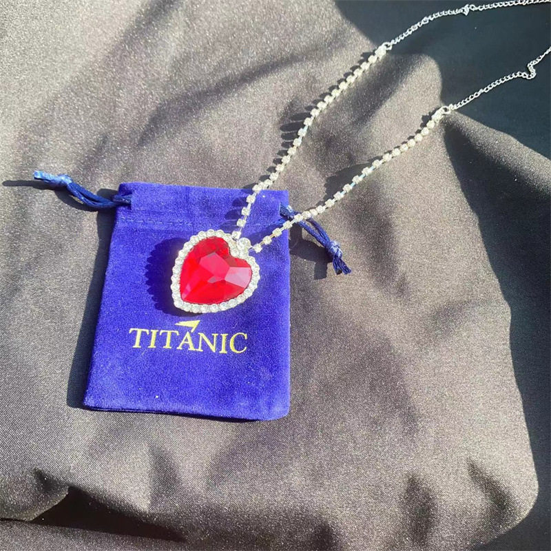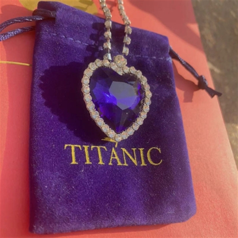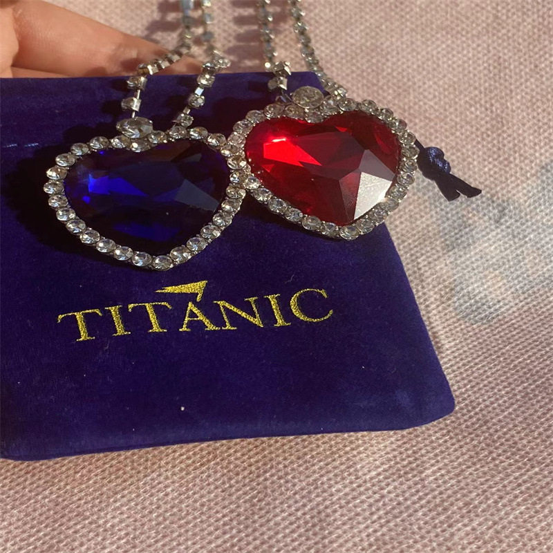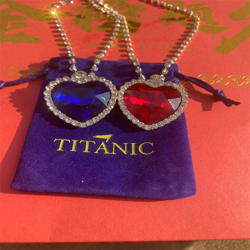 2025 Cross-Border New Ocean Heart Blue Necklace Women's European and American Style Titanic High-End Pendant