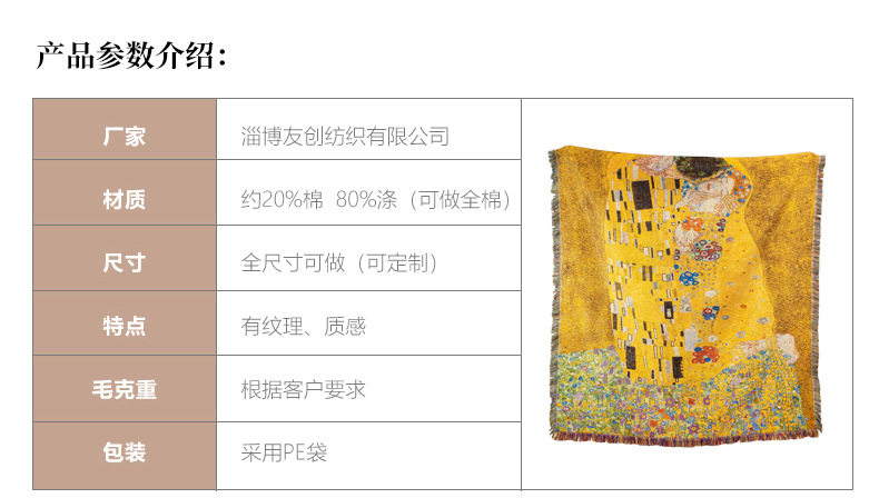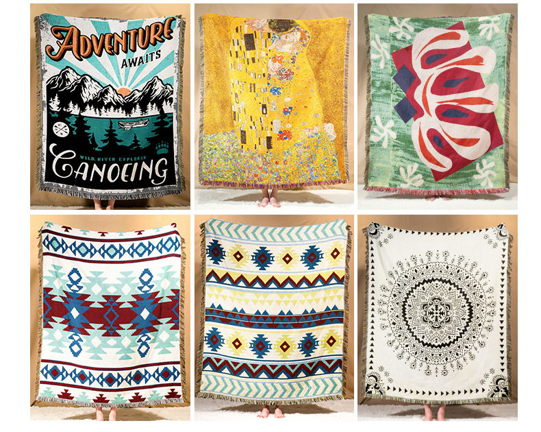 Cross-Border Decorative Blanket Jacquard Tapestry World Famous Painting Sofa Towel Thread Blanket Dustproof Full Cover Sofa Blanket