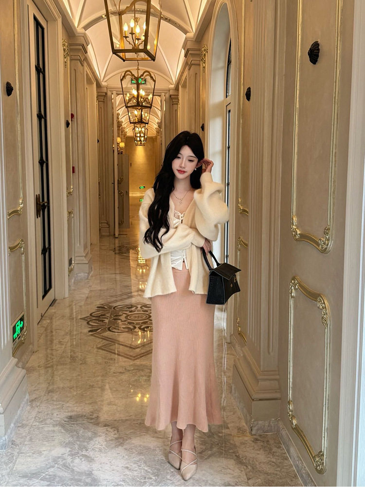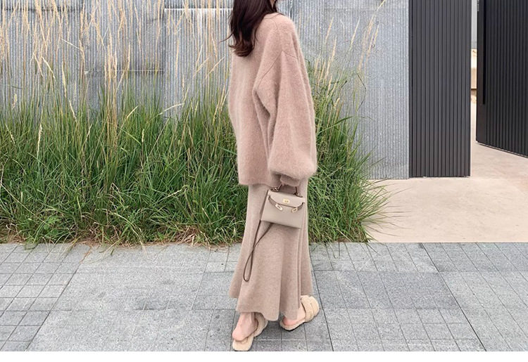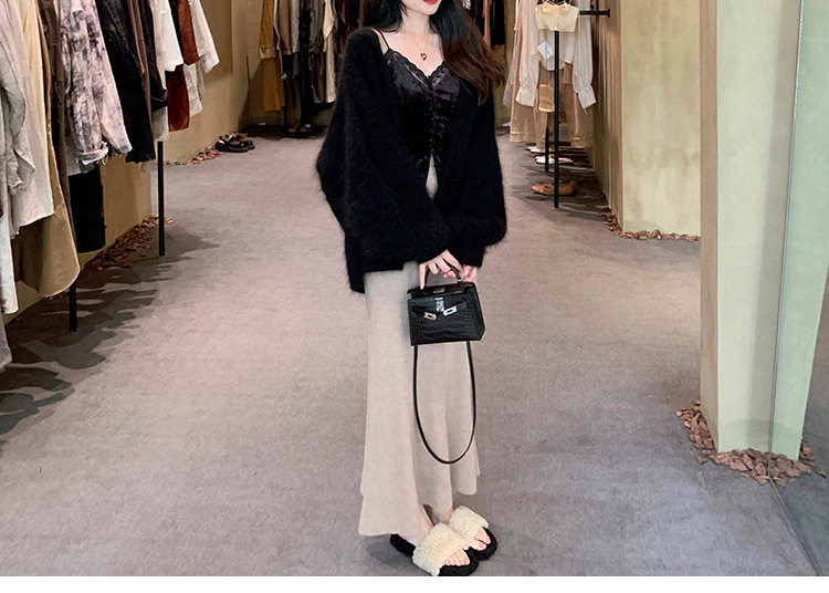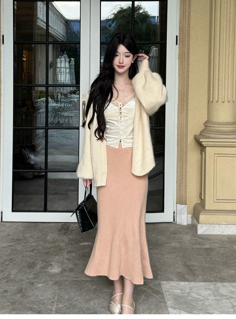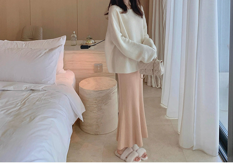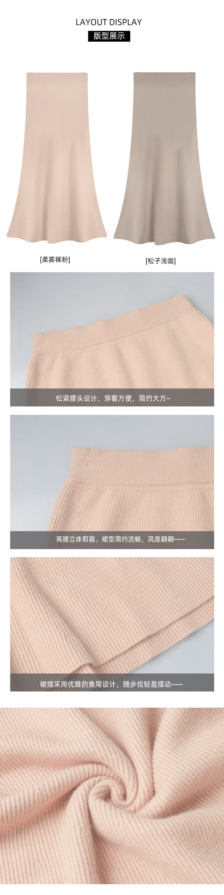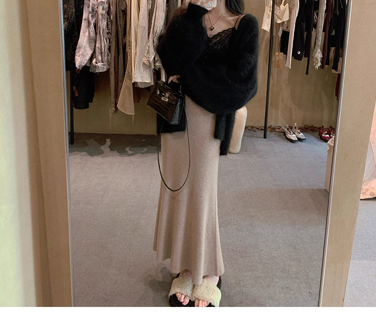 Slow Rhythm Small Proportion Rabbit Velvet Fishtail Knitted Skirt Women's Autum Elegant Pure Color Slim Straight Skirt Long Skirt
