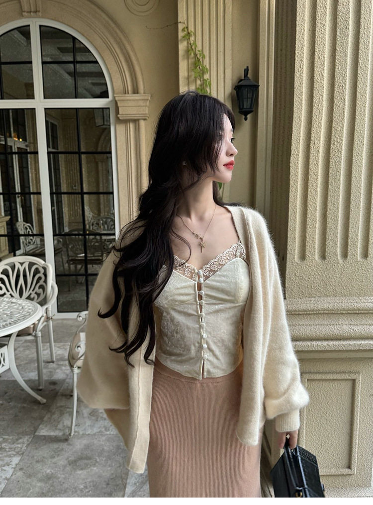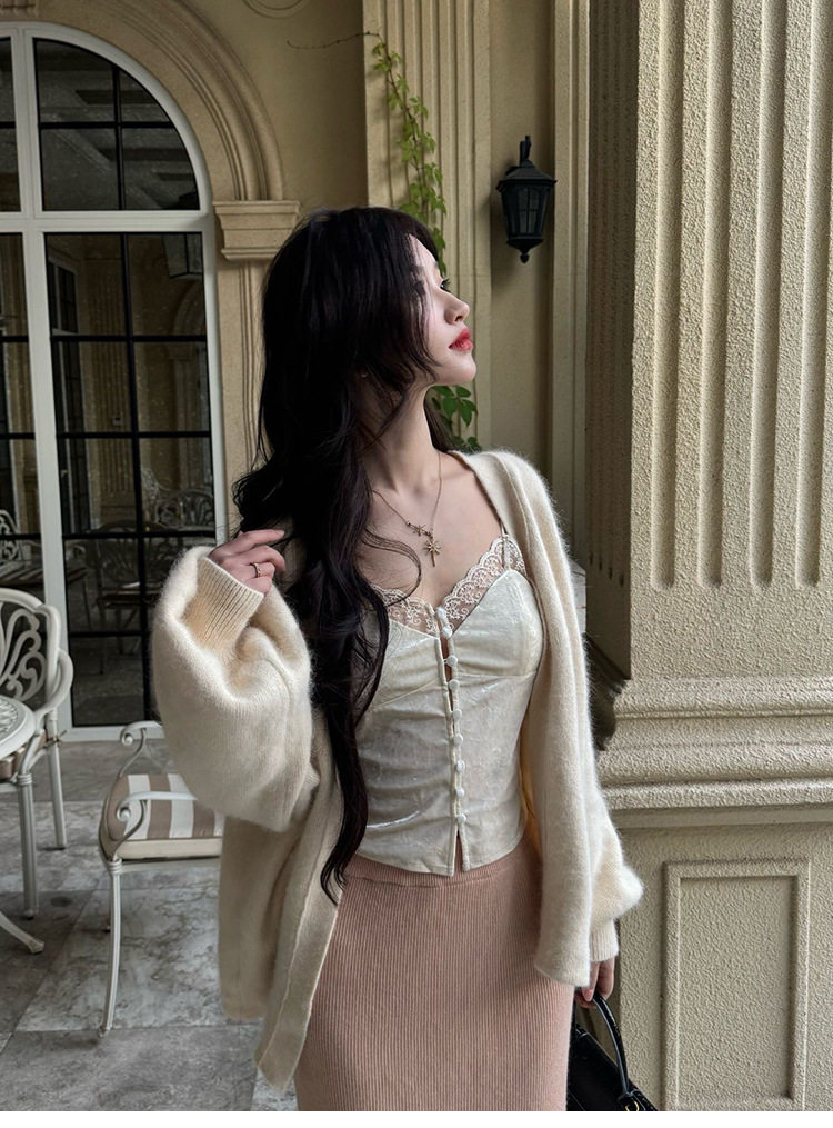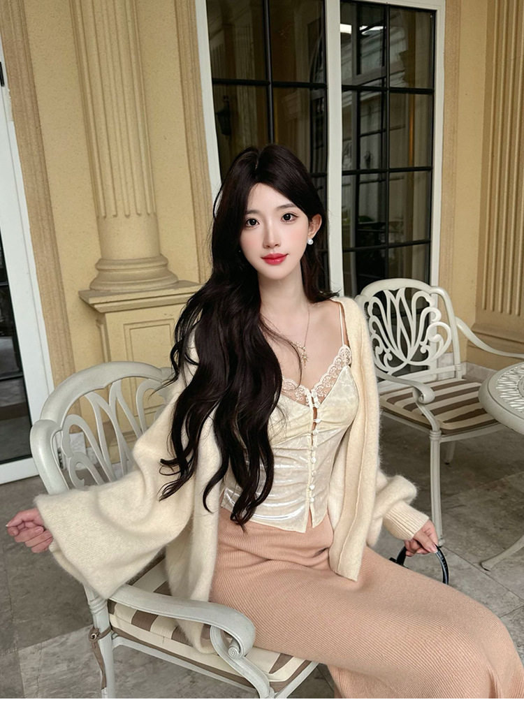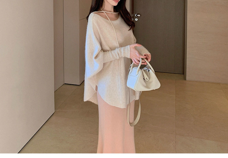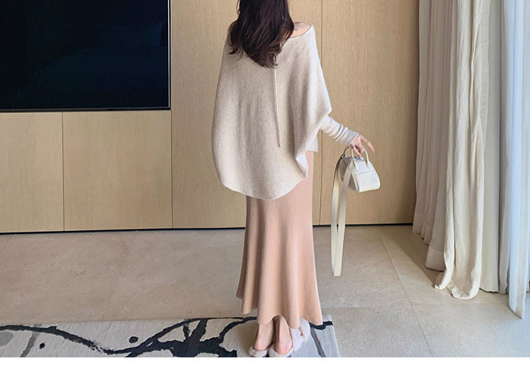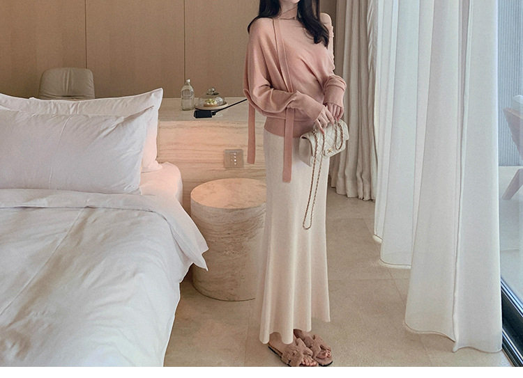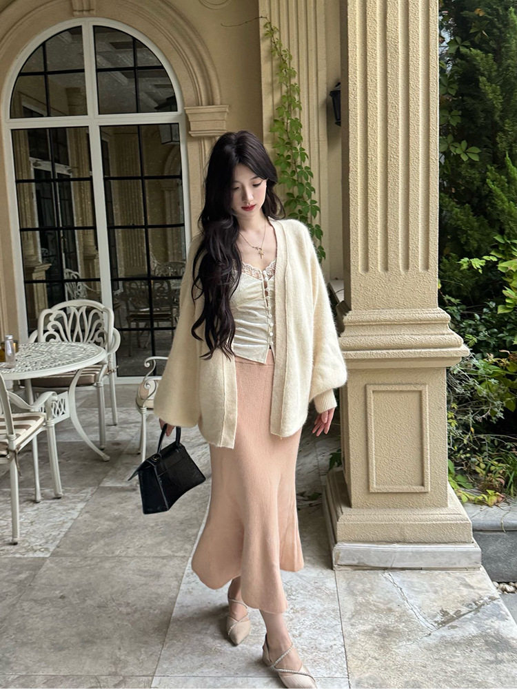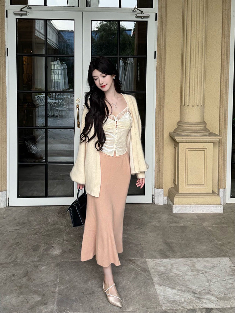 Slow Rhythm Small Proportion Rabbit Velvet Fishtail Knitted Skirt Women's Autum Elegant Pure Color Slim Straight Skirt Long Skirt