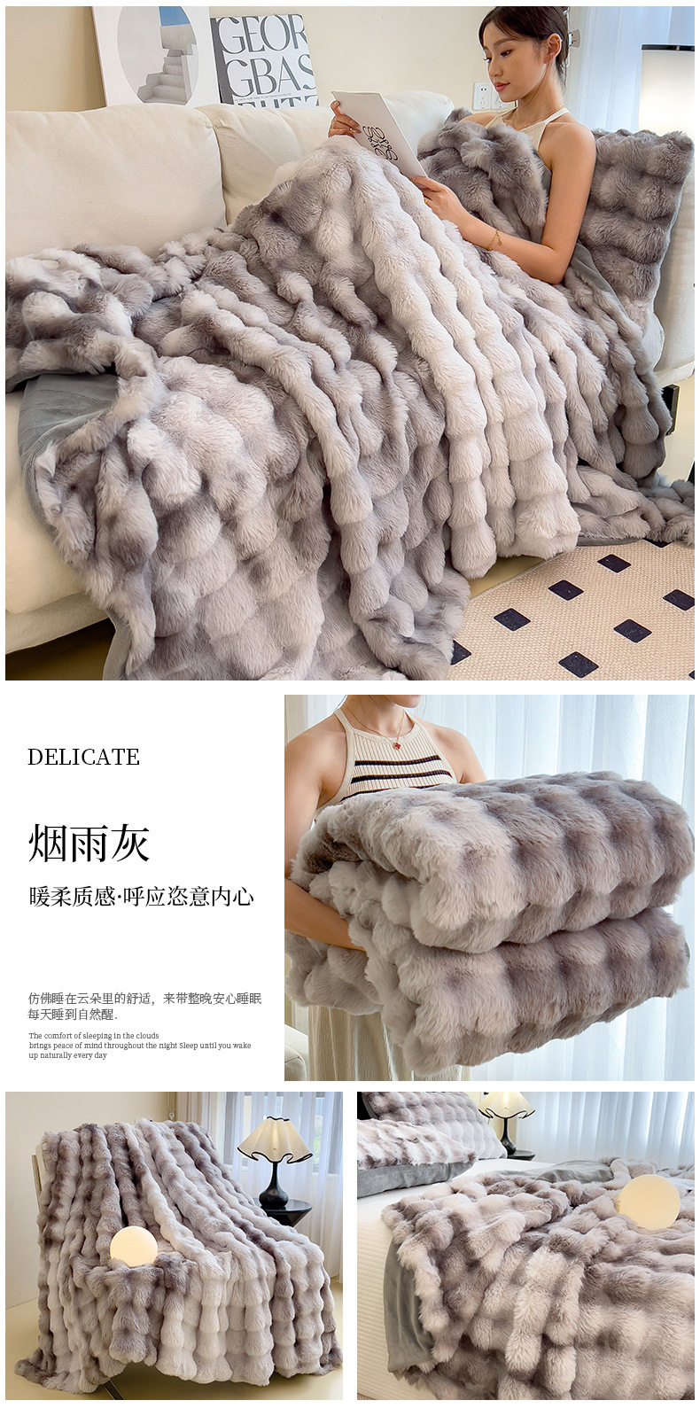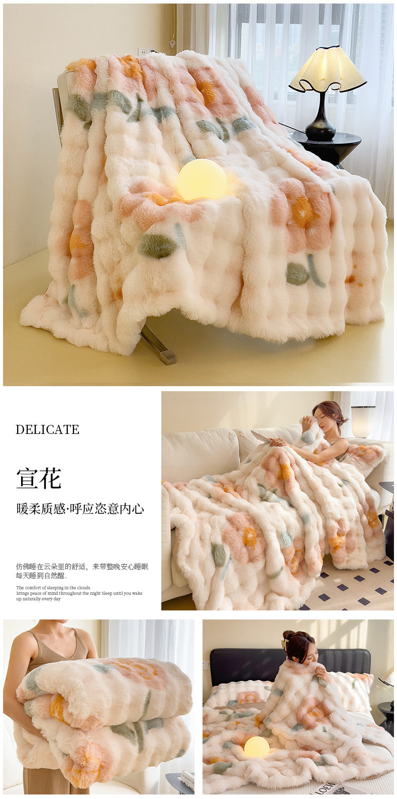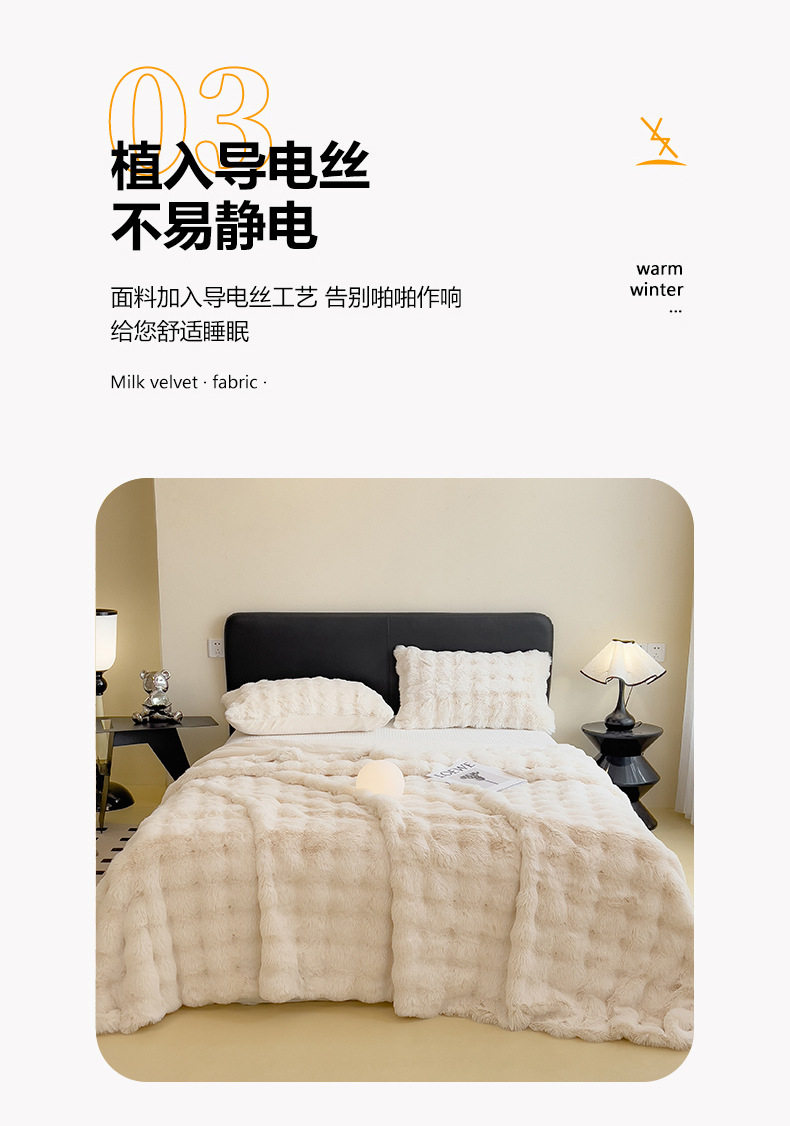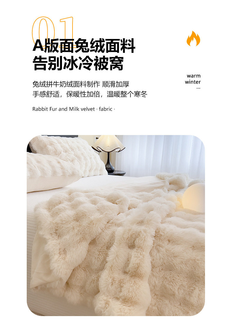 | Color | Yunmeng powder-rabbit plush double layer blanket,Pear blossom white-rabbit plush double layer blanket,Provence-rabbit plush double layer blanket,Snow grass-rabbit plush double layer blanket,Smoke gray-rabbit plush double layer blanket,Camellia-rabbit plush double layer blanket,Bear-teddy rabbit plush double layer blanket,Xuanhua-rabbit plush double layer blanket |
