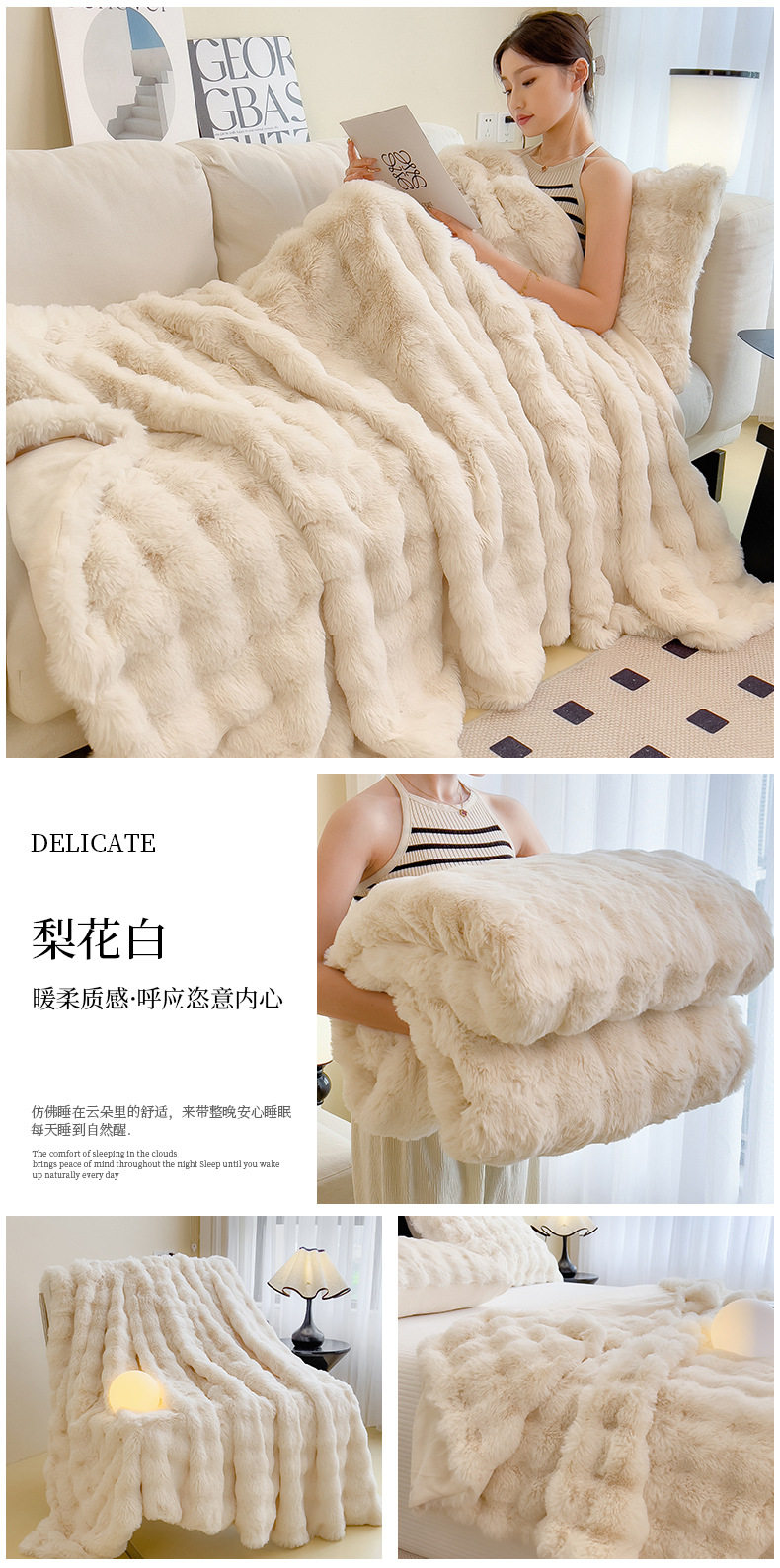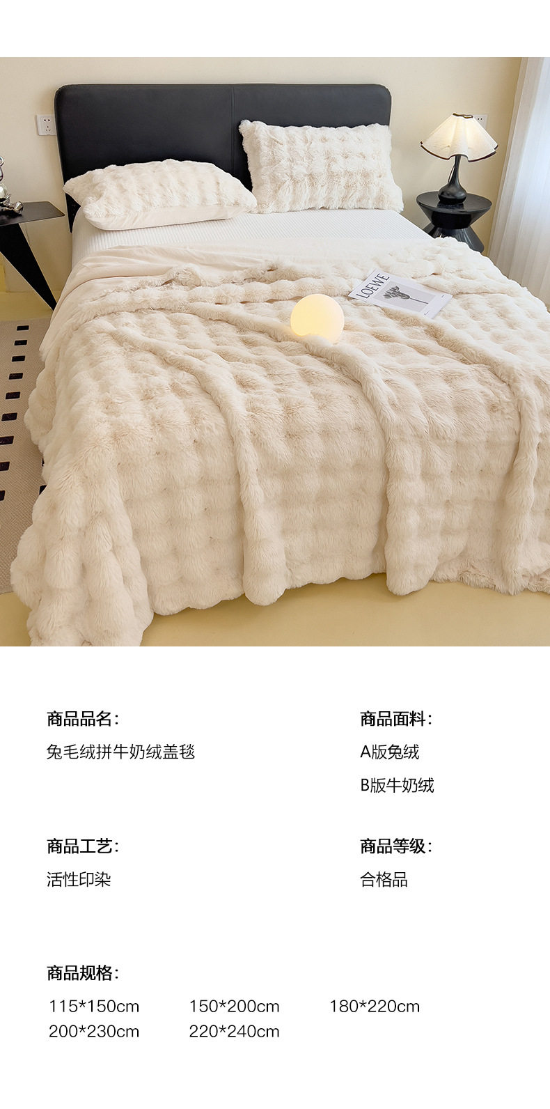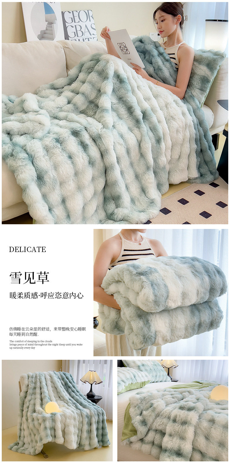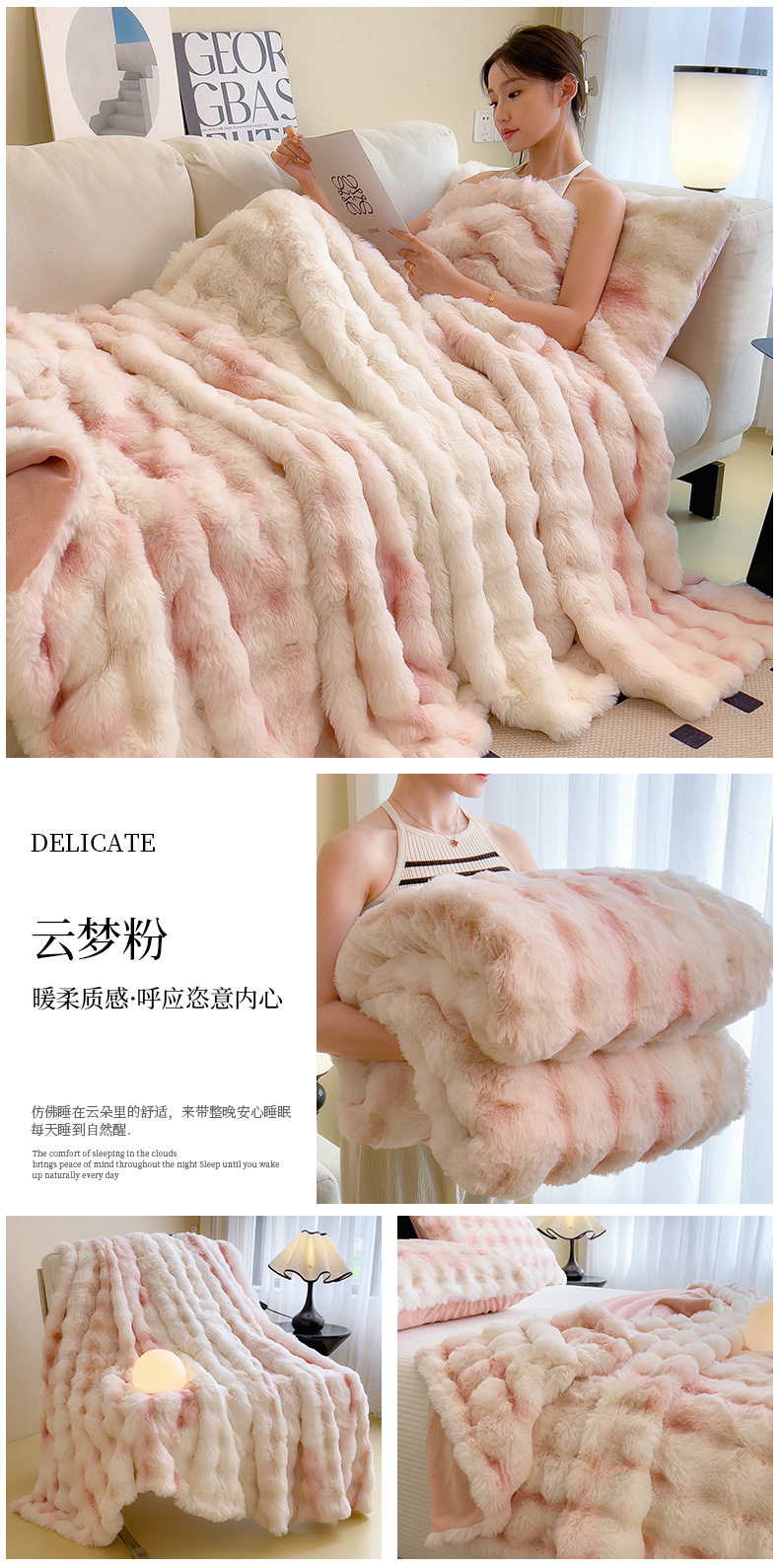 | Color | Yunmeng powder-rabbit plush double layer blanket,Pear blossom white-rabbit plush double layer blanket,Provence-rabbit plush double layer blanket,Snow grass-rabbit plush double layer blanket,Smoke gray-rabbit plush double layer blanket,Camellia-rabbit plush double layer blanket,Bear-teddy rabbit plush double layer blanket,Xuanhua-rabbit plush double layer blanket |
