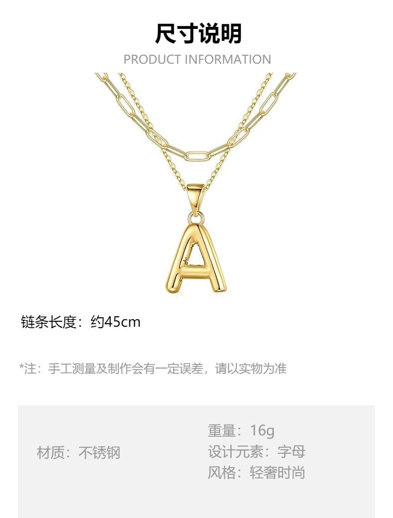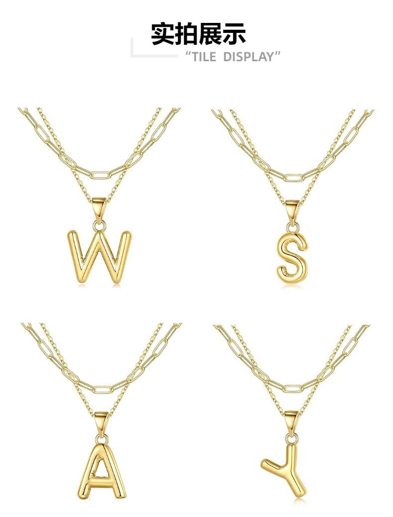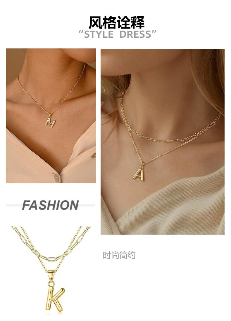 Cross-border new letter double-layer necklace women 14K gold paper clip folded clavicle chain women light luxury jewelry women wholesale