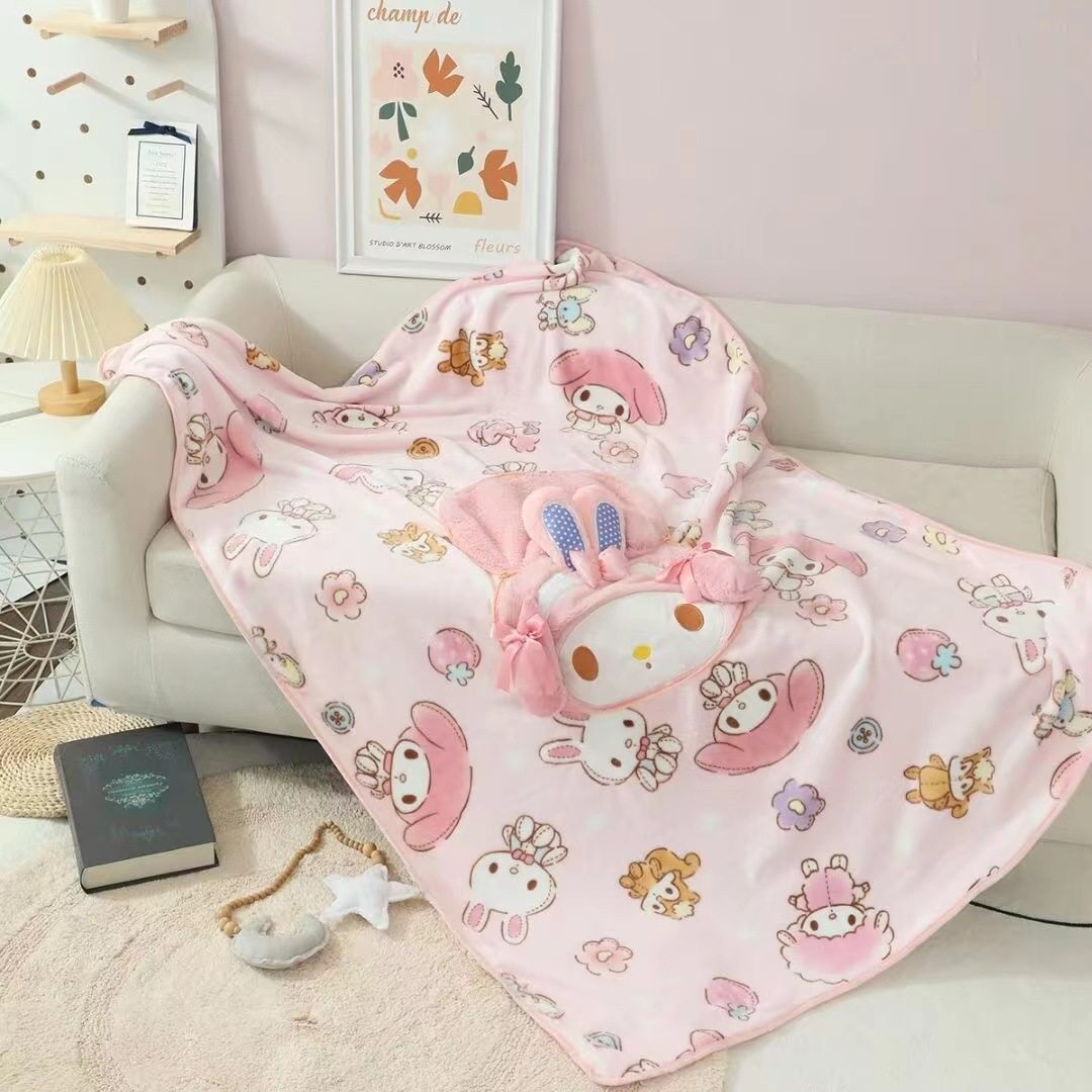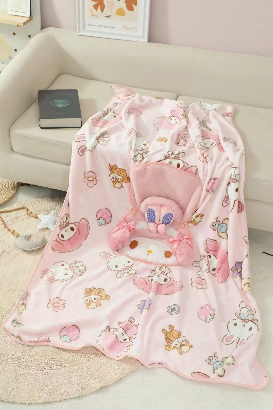 Cartoon Cute Lamb Merlot Handbag Pillow Blanket 2-in -1 Girl's Portable Nap Air-conditioning Blanket