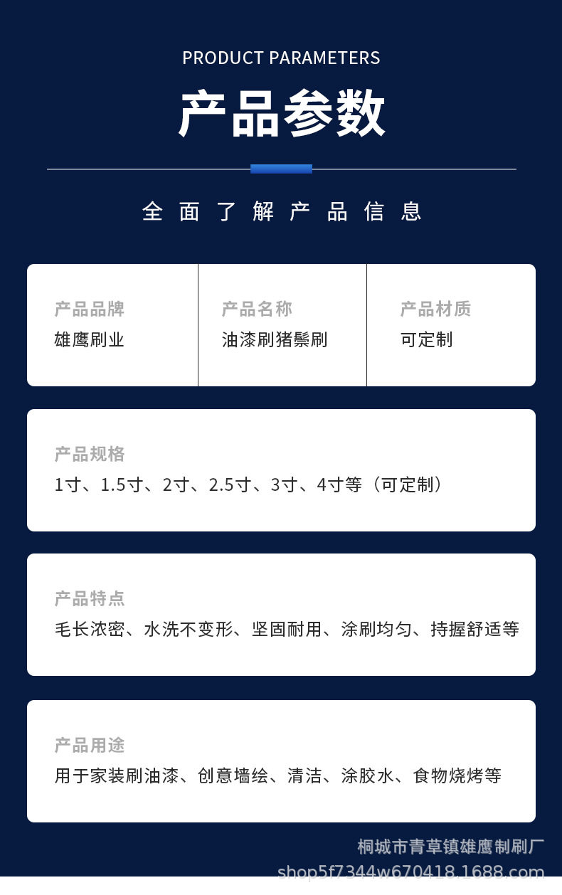 | Specification model | White; 1inch ; bristles,White; 1.5inch ; bristles,White; 2inch ; bristles,White; 2.5inch ; bristles,White; 3inch ; bristles,White; 4inch ; bristles,White; 5inch ; bristles,White; 6inch ; bristles,White; 8inch ; bristles |