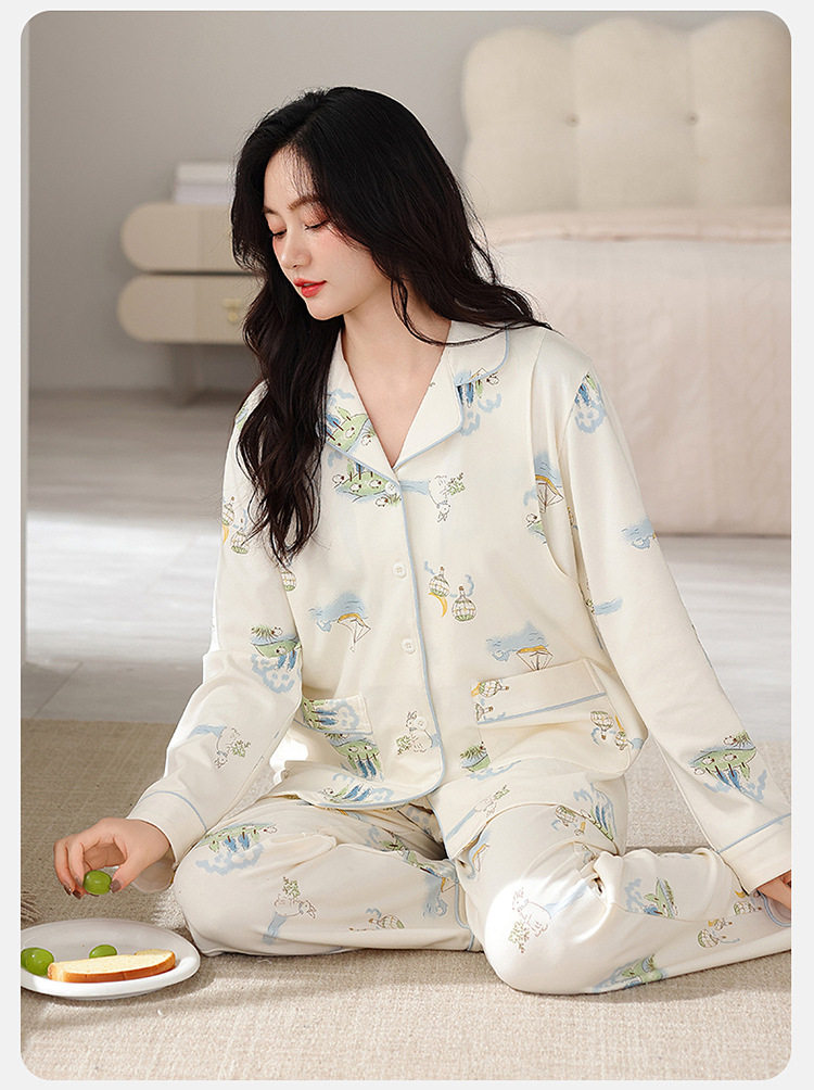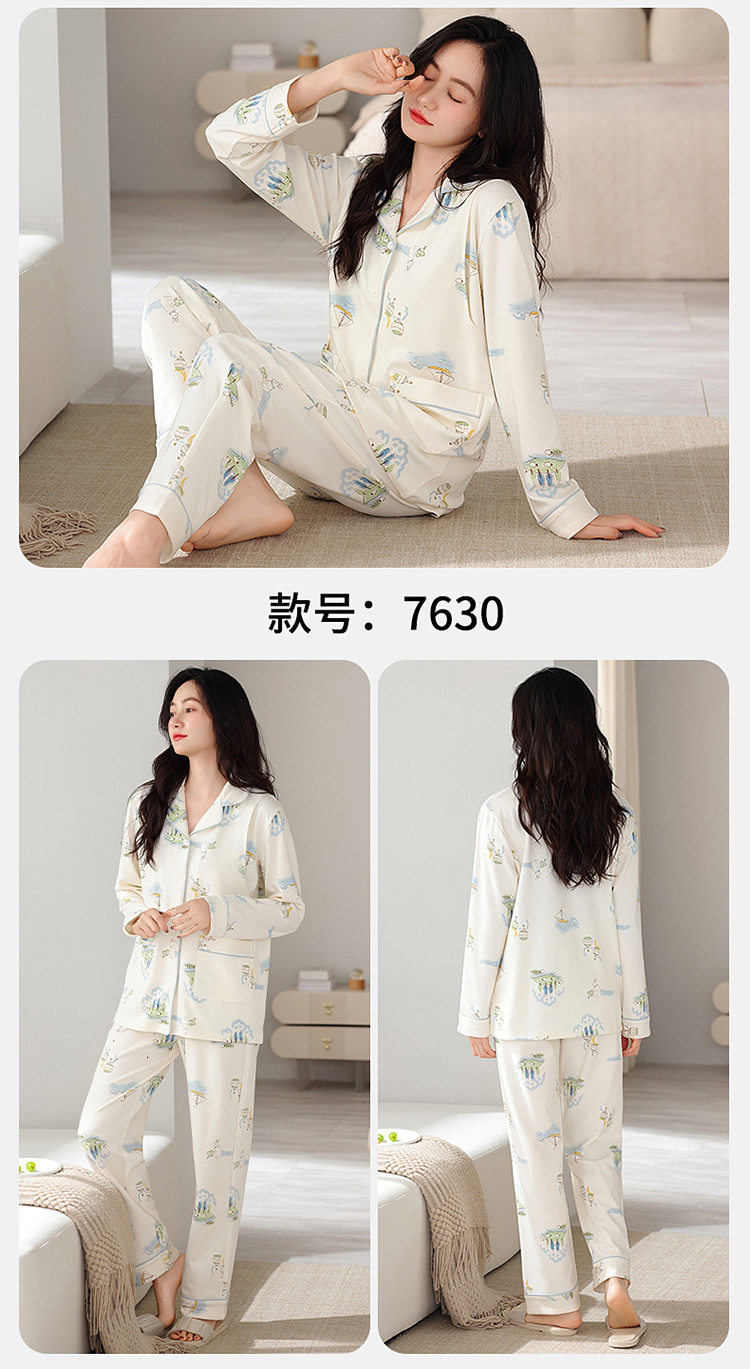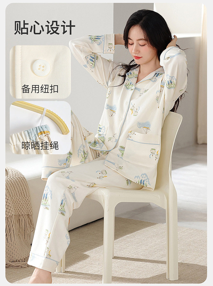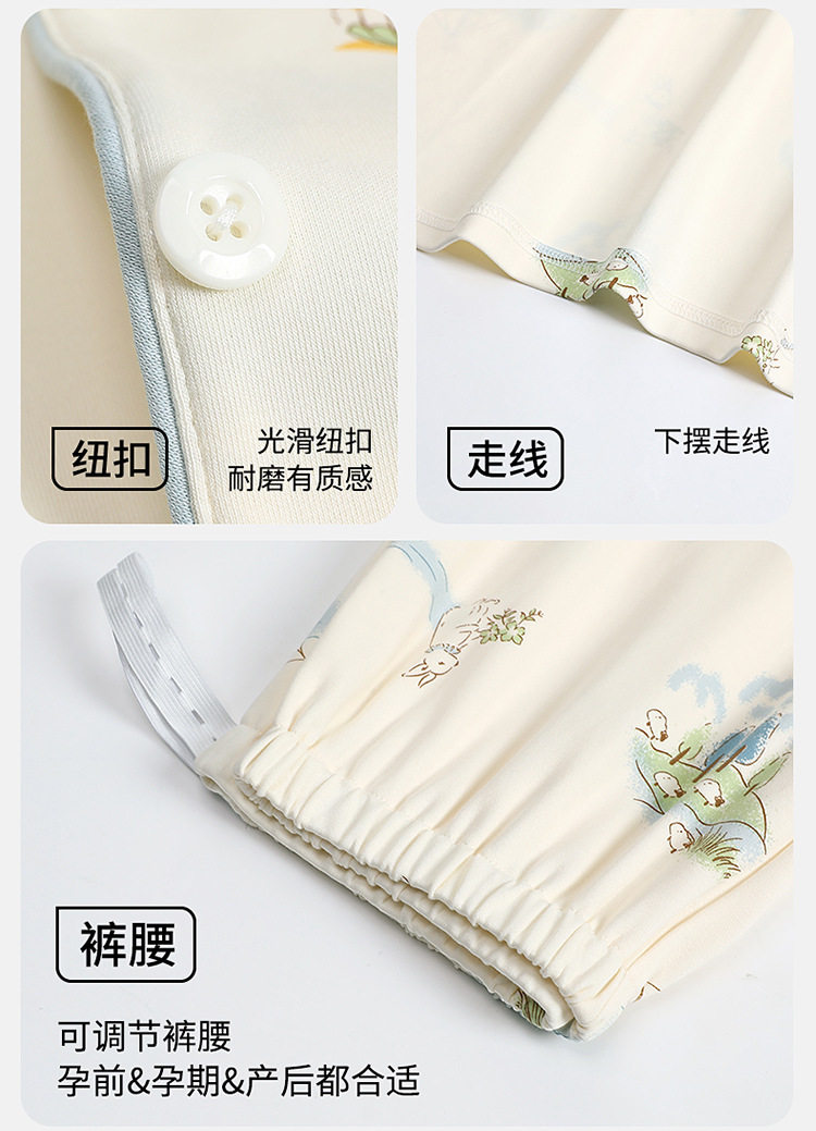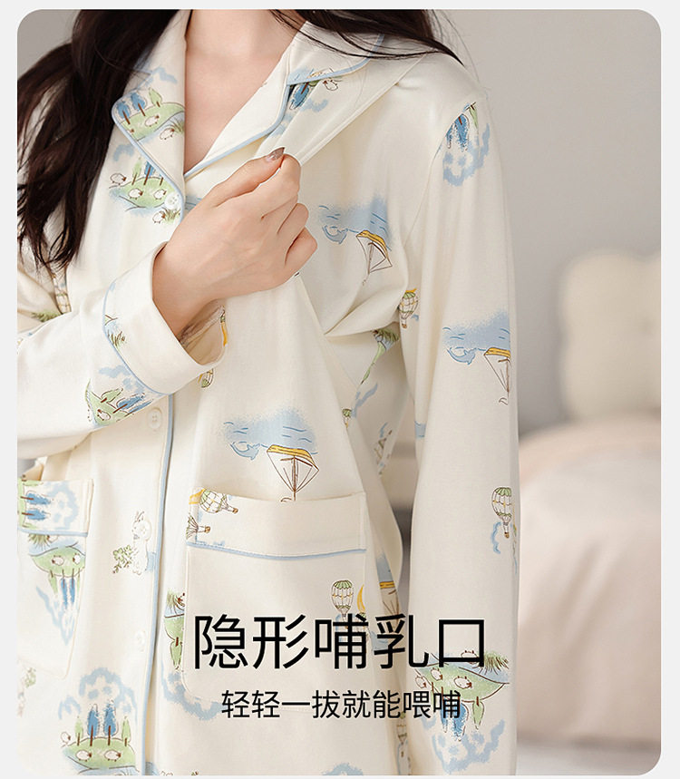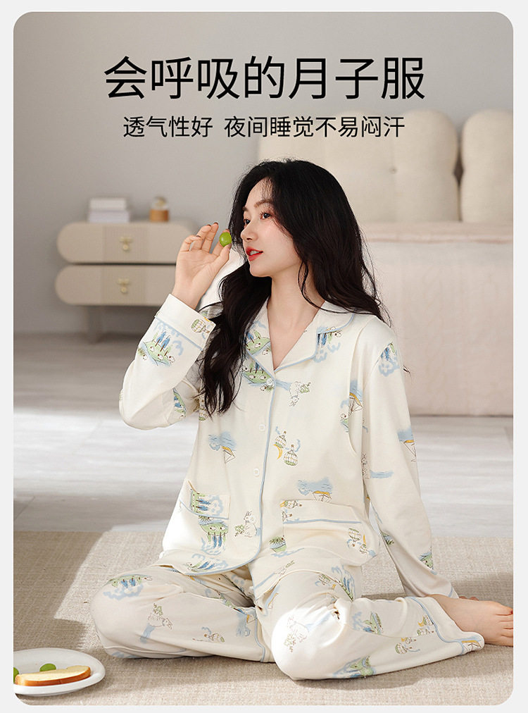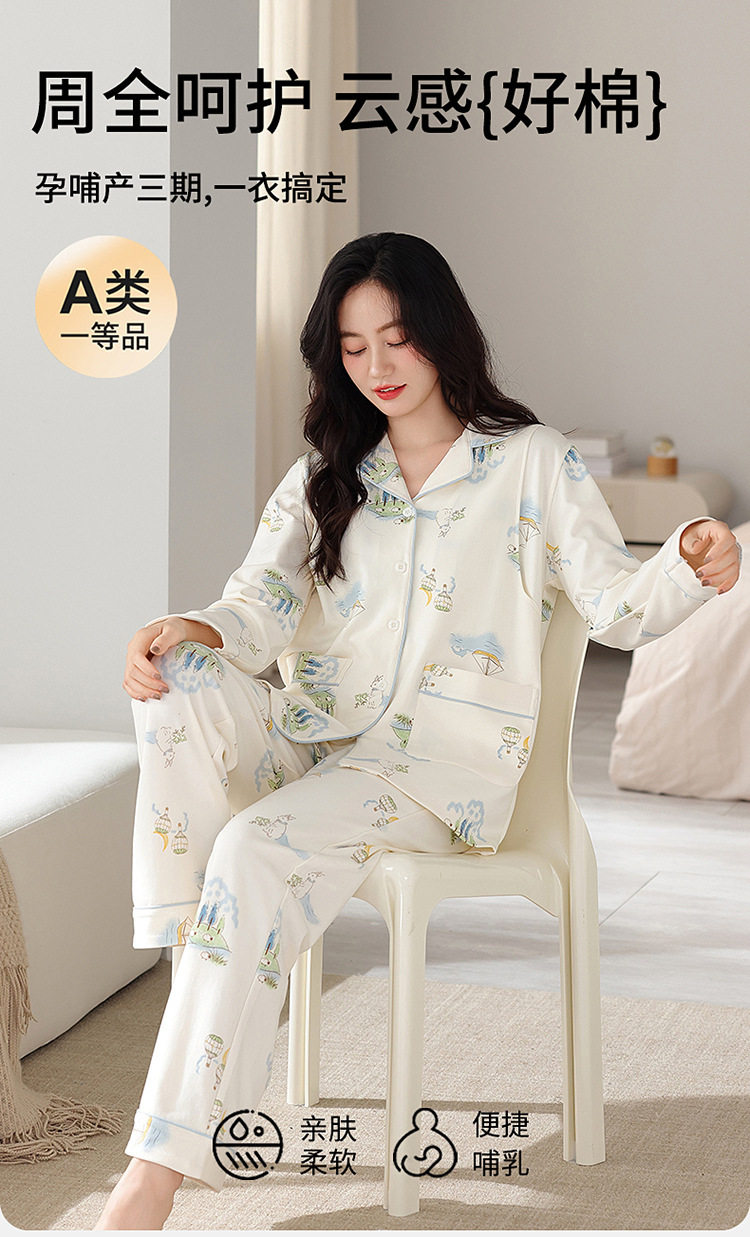 Pure Cotton Moon Clothing Invisible Side Opening Pregnant Women's Pajamas Postpartum Breast-feeding Clothing Autumn and Winter Women's Home Clothing