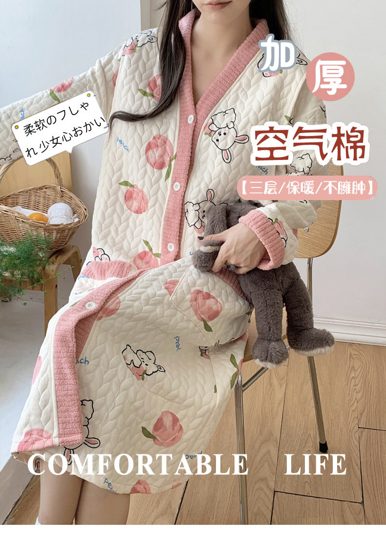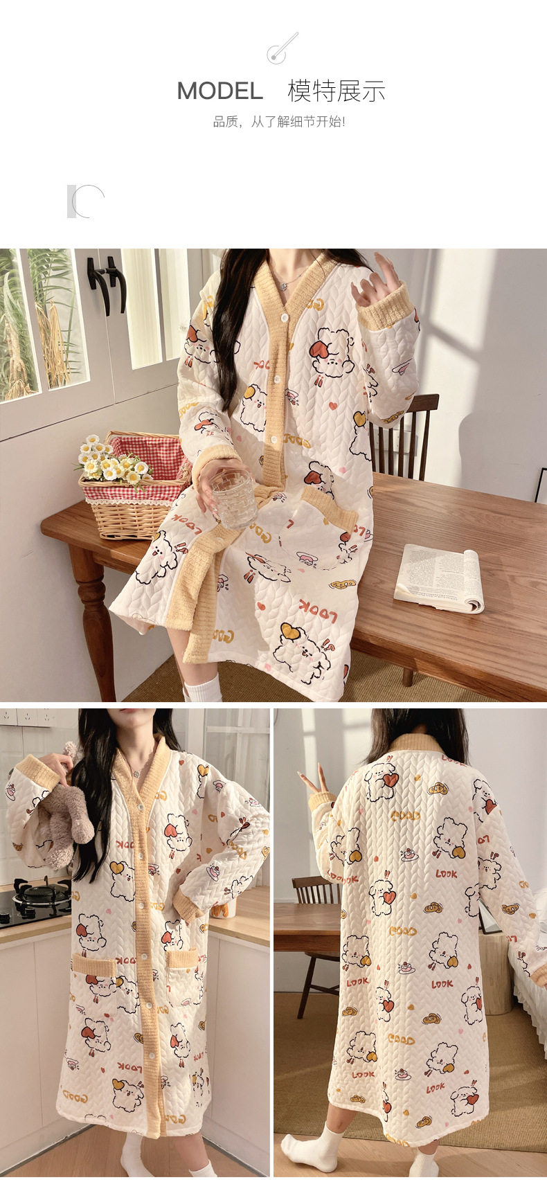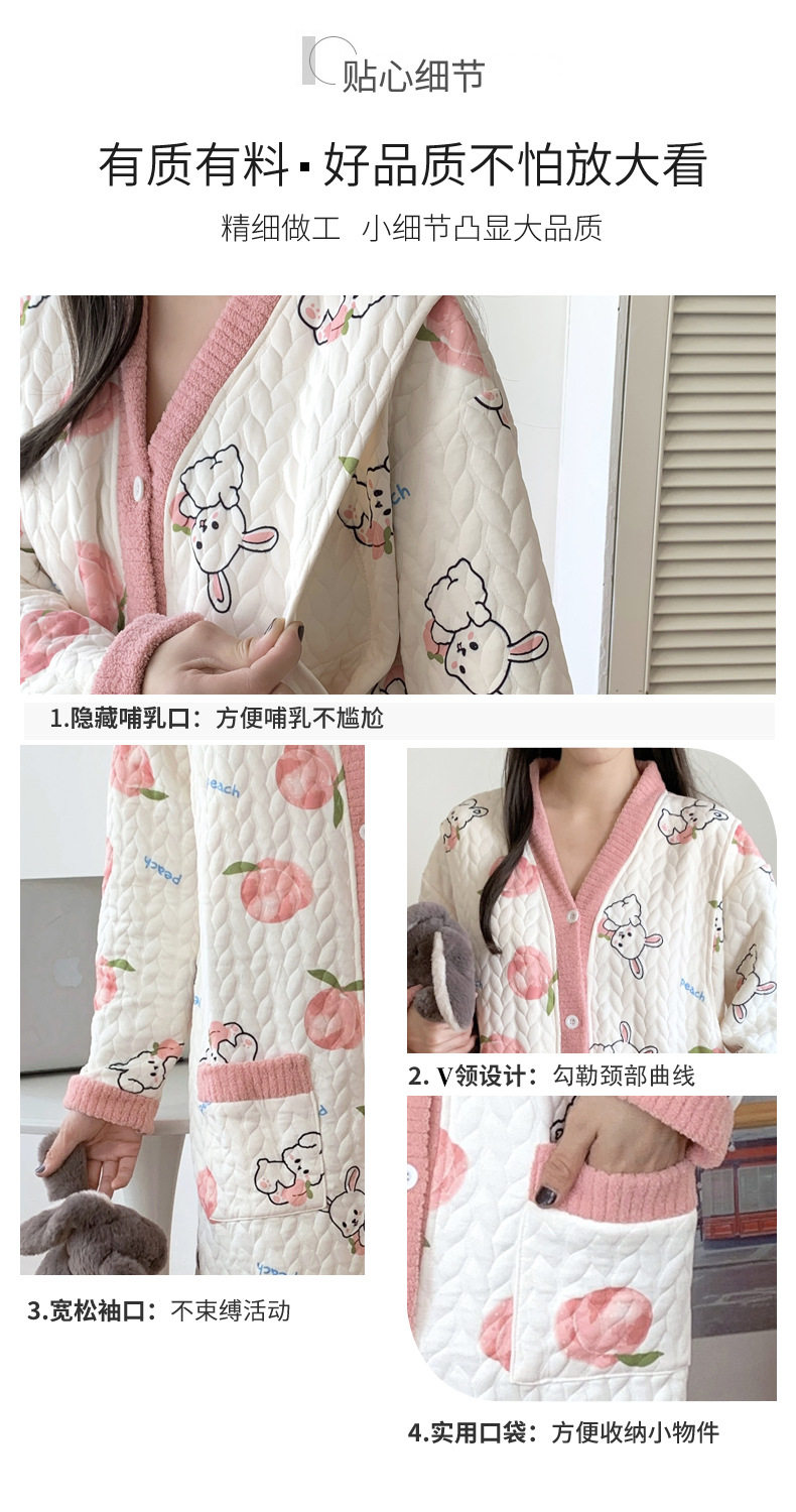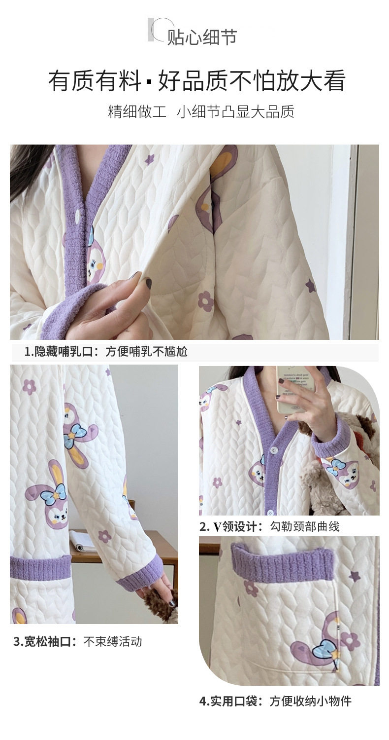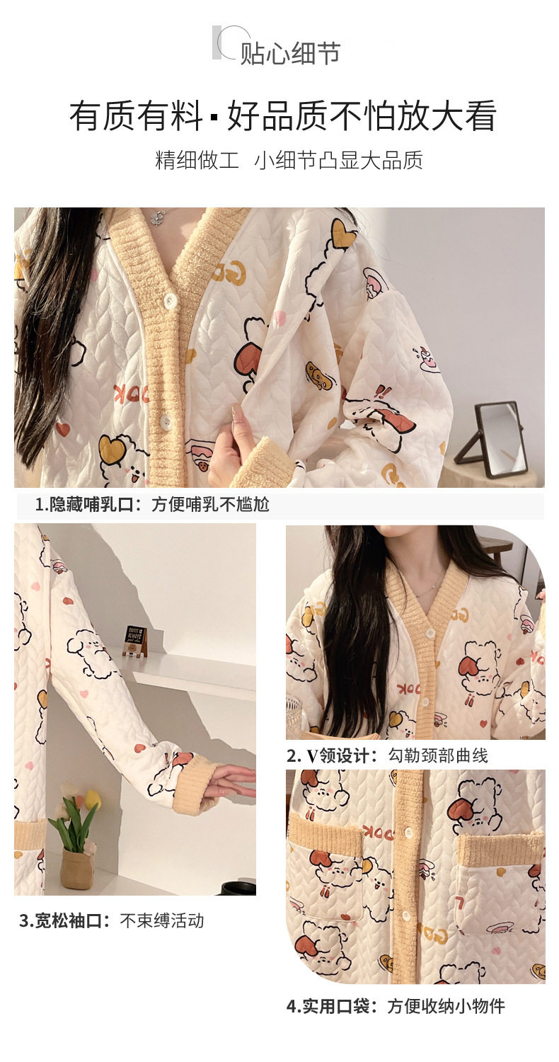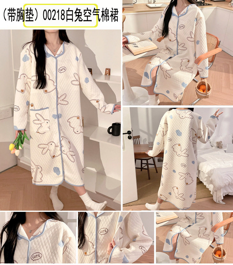 Pregnant Women with Chest Pad Maternal Examination Nightgown Autumn and Winter Nursing Pajamas Postpartum Feeding Air Cotton Maternal Clothing