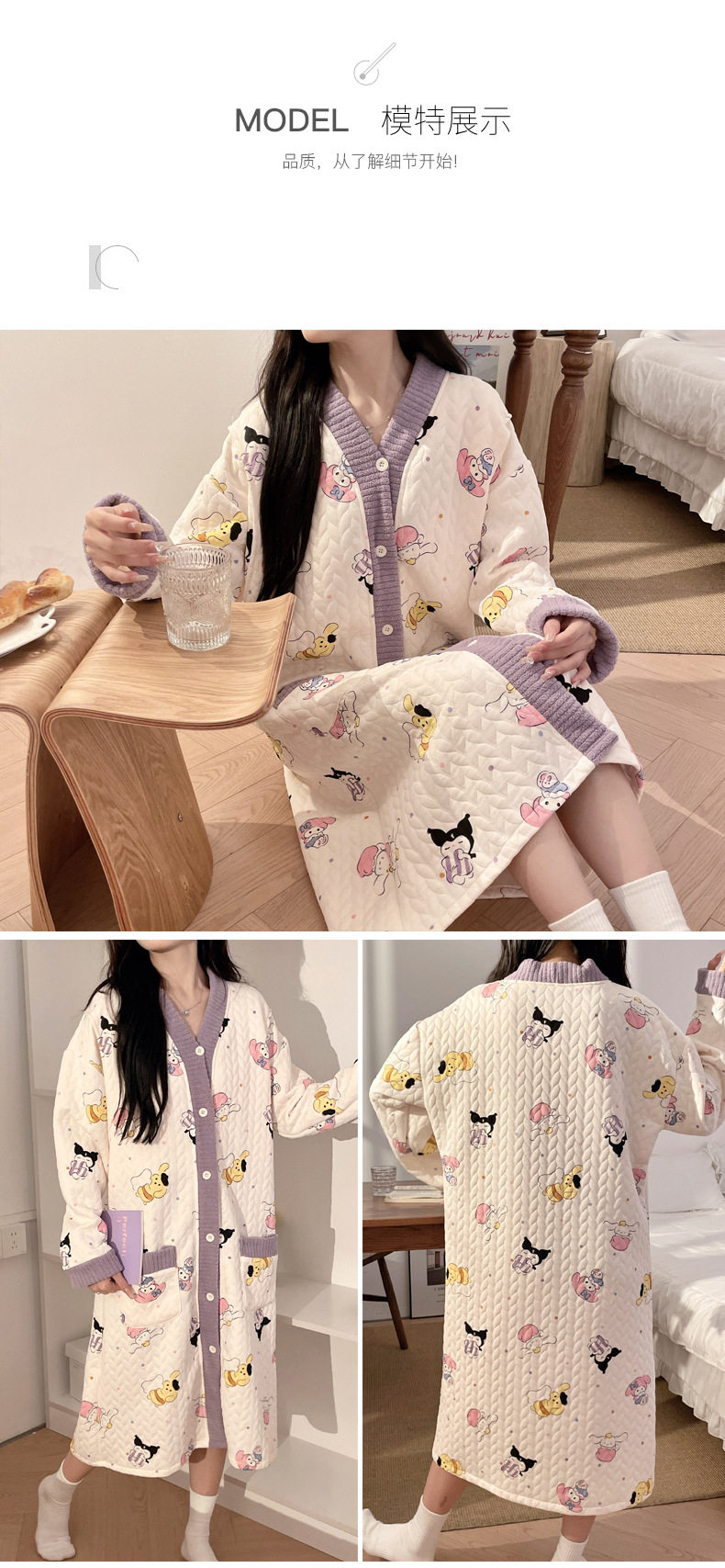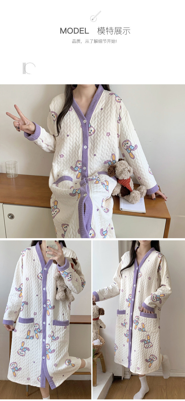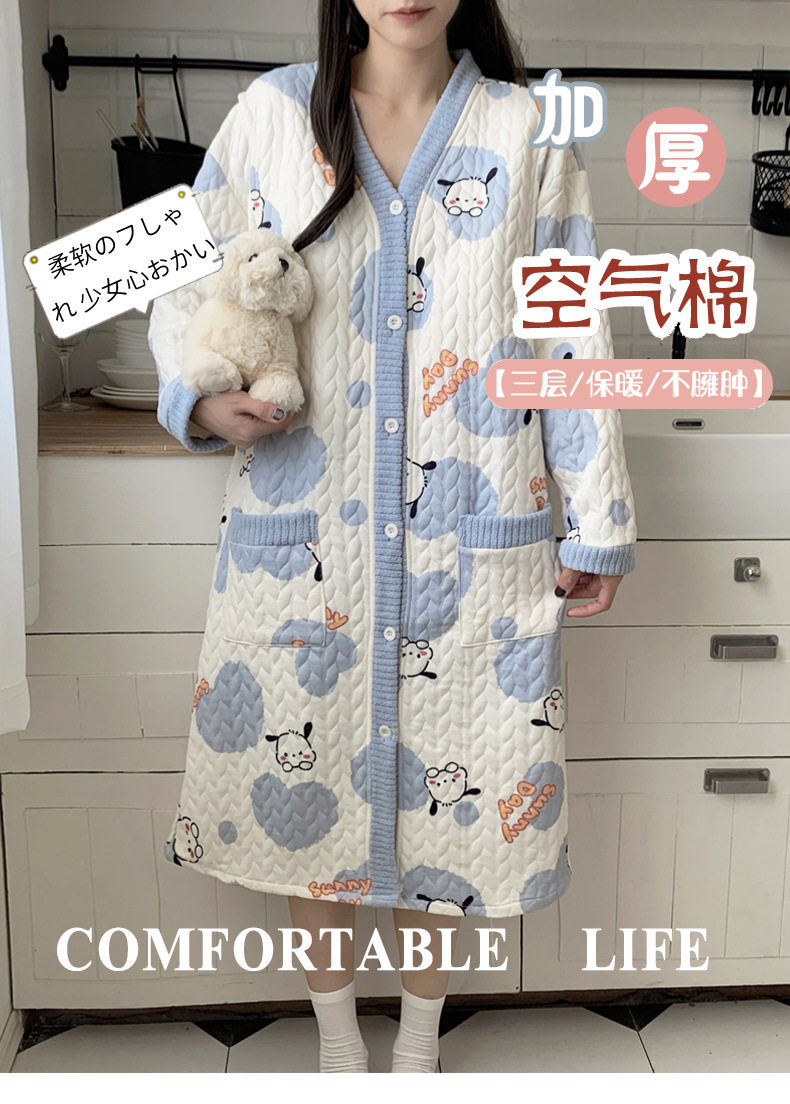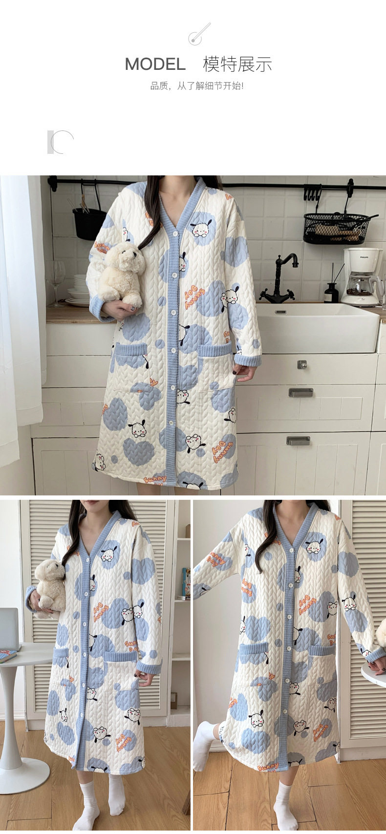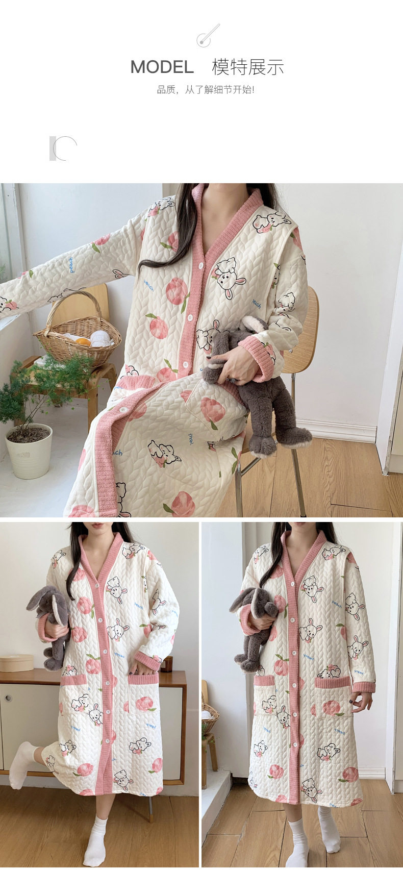 Pregnant Women with Chest Pad Maternal Examination Nightgown Autumn and Winter Nursing Pajamas Postpartum Feeding Air Cotton Maternal Clothing