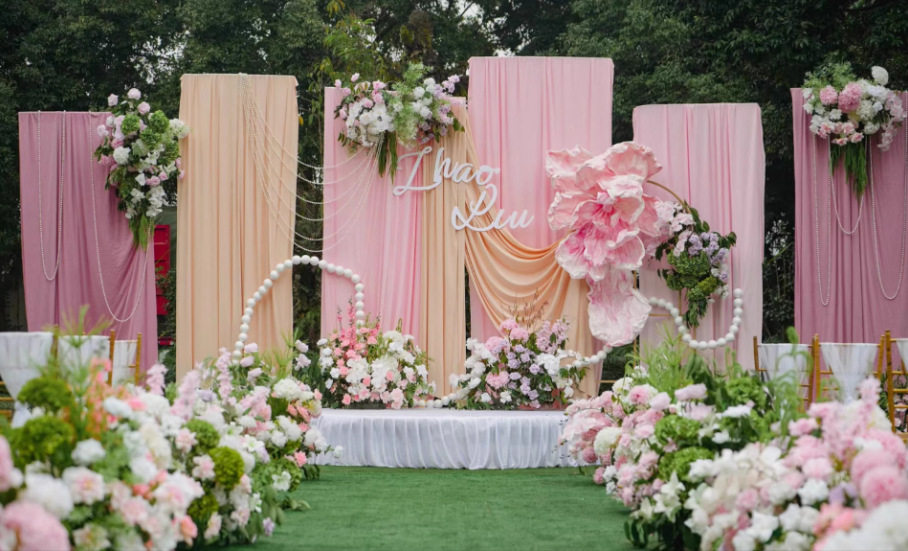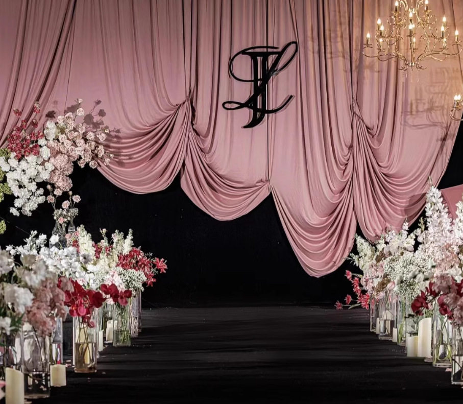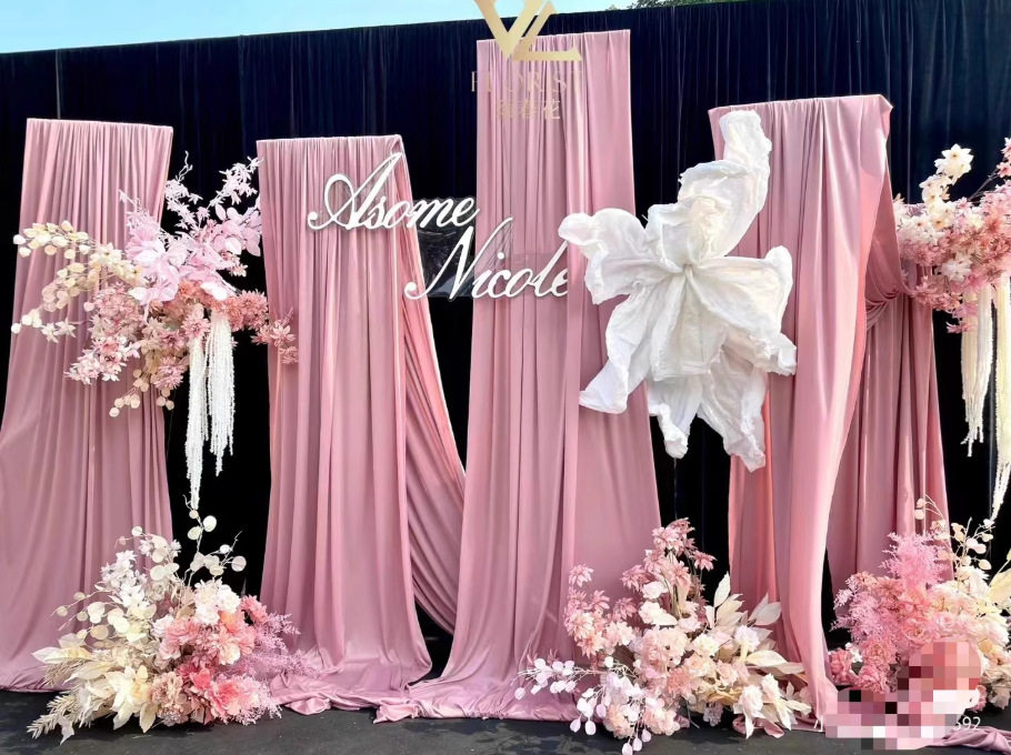 Wedding Celebration Pink Milk Silk Stretch Fabric Stage Background Decoration Drape Cloud Veil Props