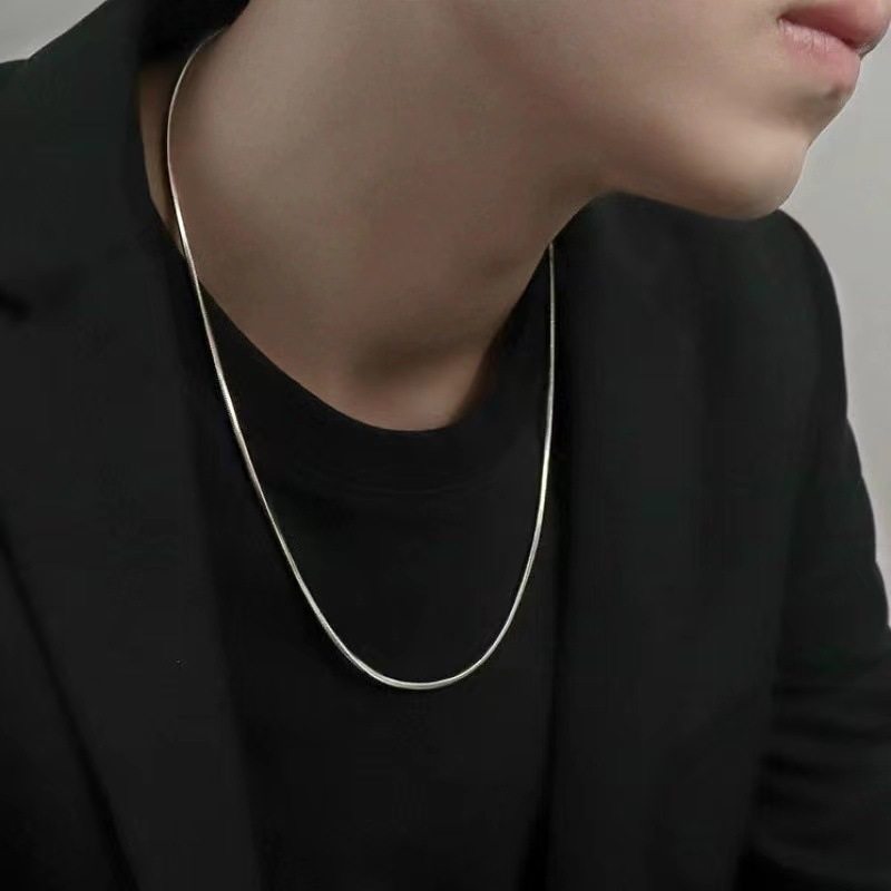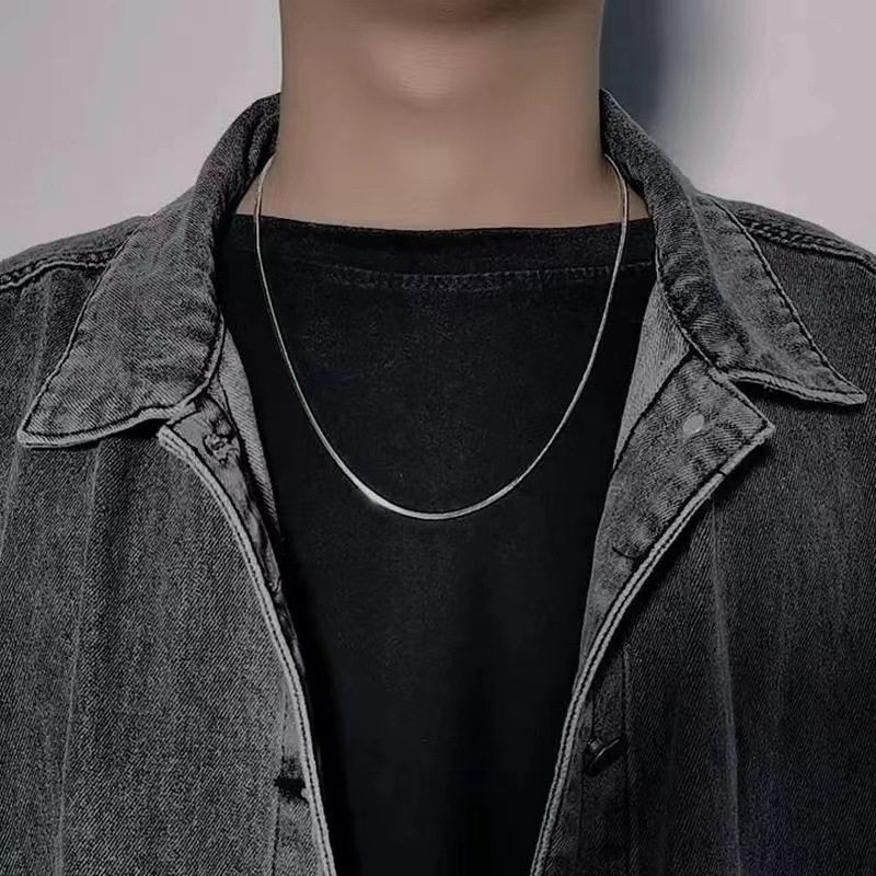 Stainless Steel Square Snake Bone Chain Titanium Steel Necklace Men's and Women's Trendy DIY Jewelry Accessories European and American Cross-border Pendant Matching Chain