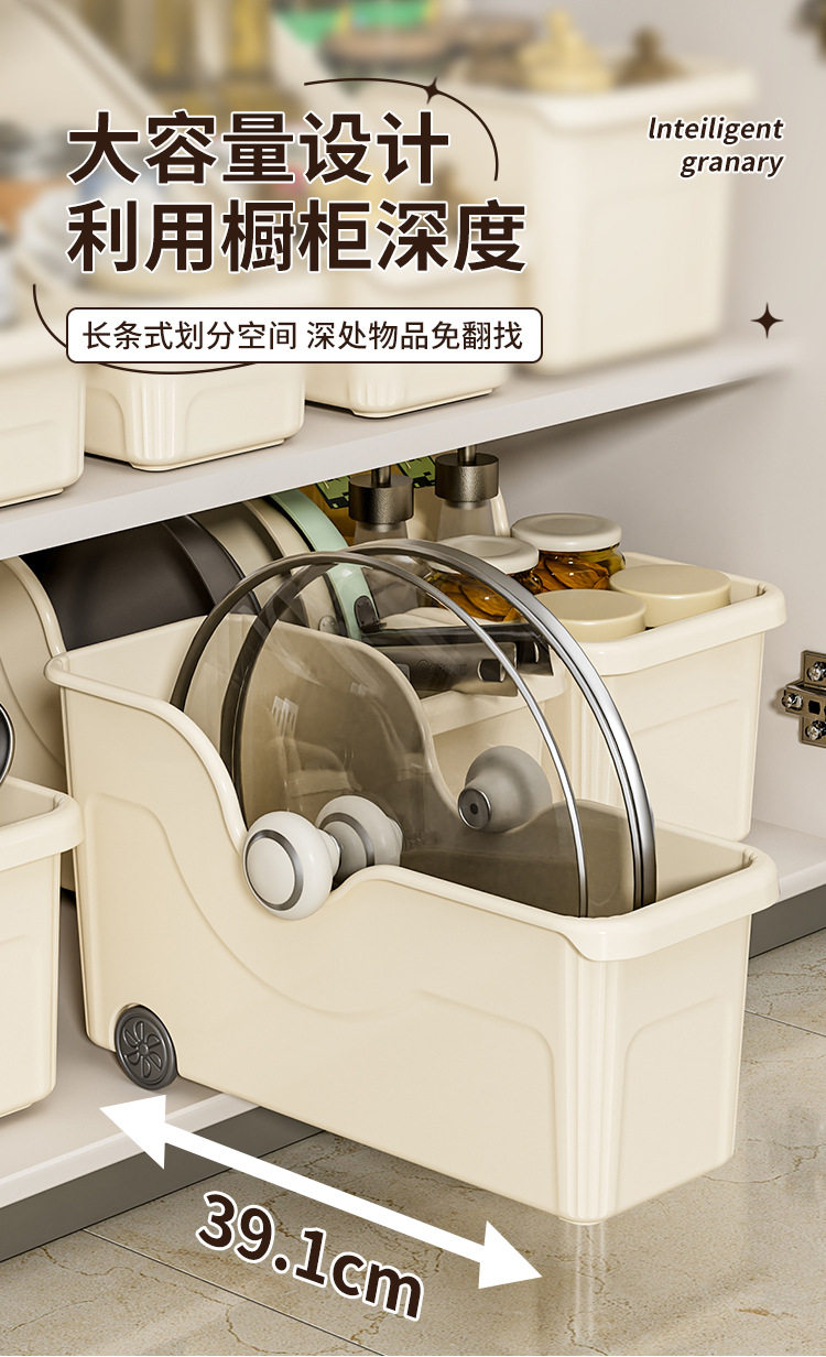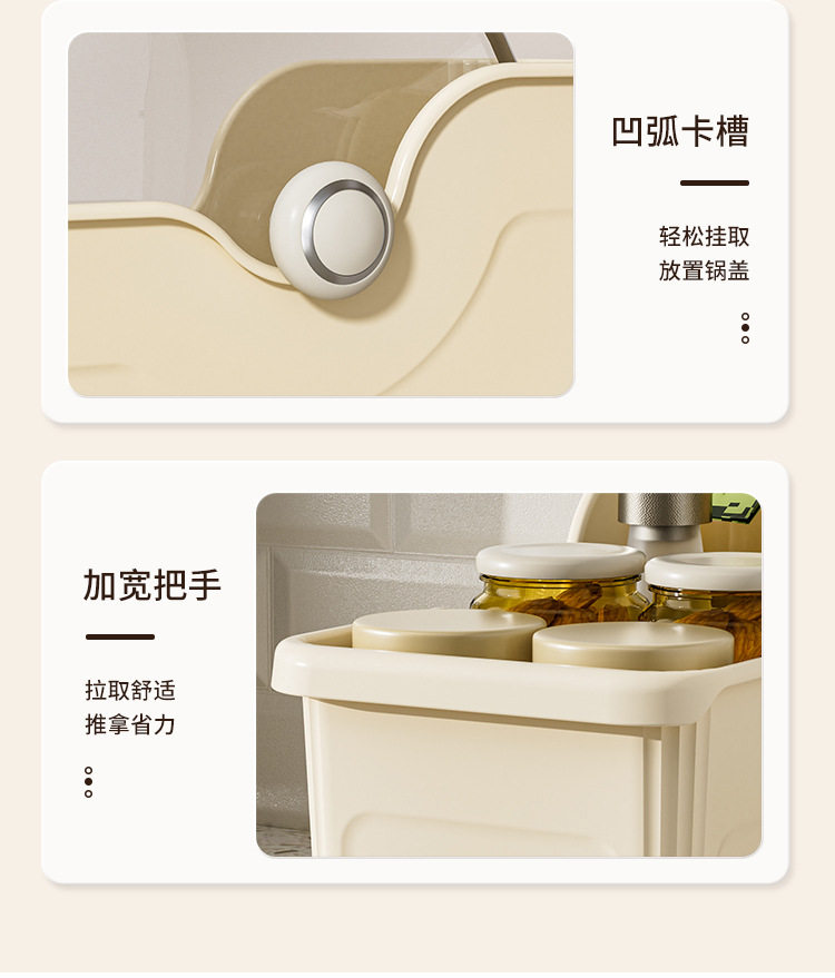 Kitchen Cookware Storage with Pulley Seasoning Sundries Storage Pot Lid Storage Basket Desktop Storage Bowl Chopsticks Chopping Board