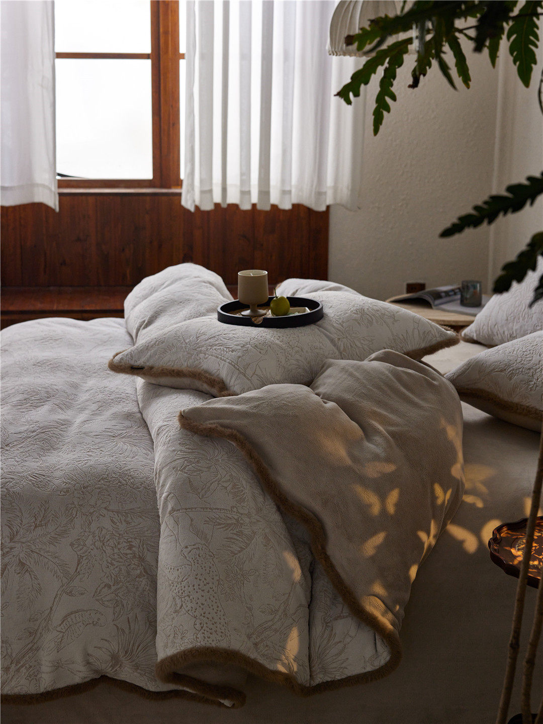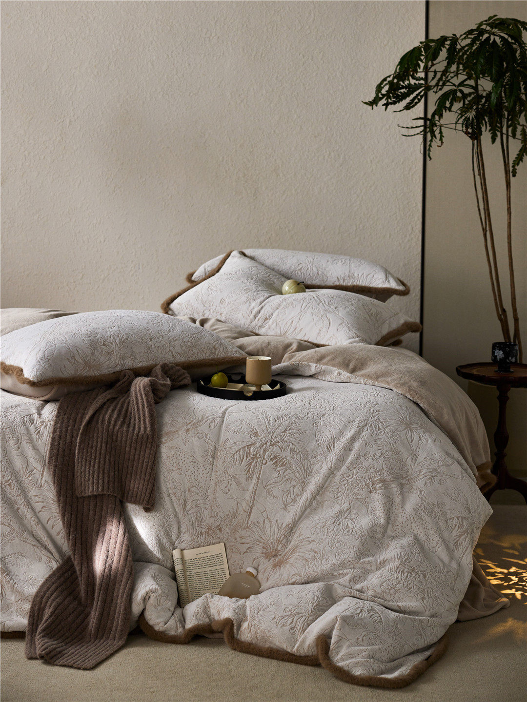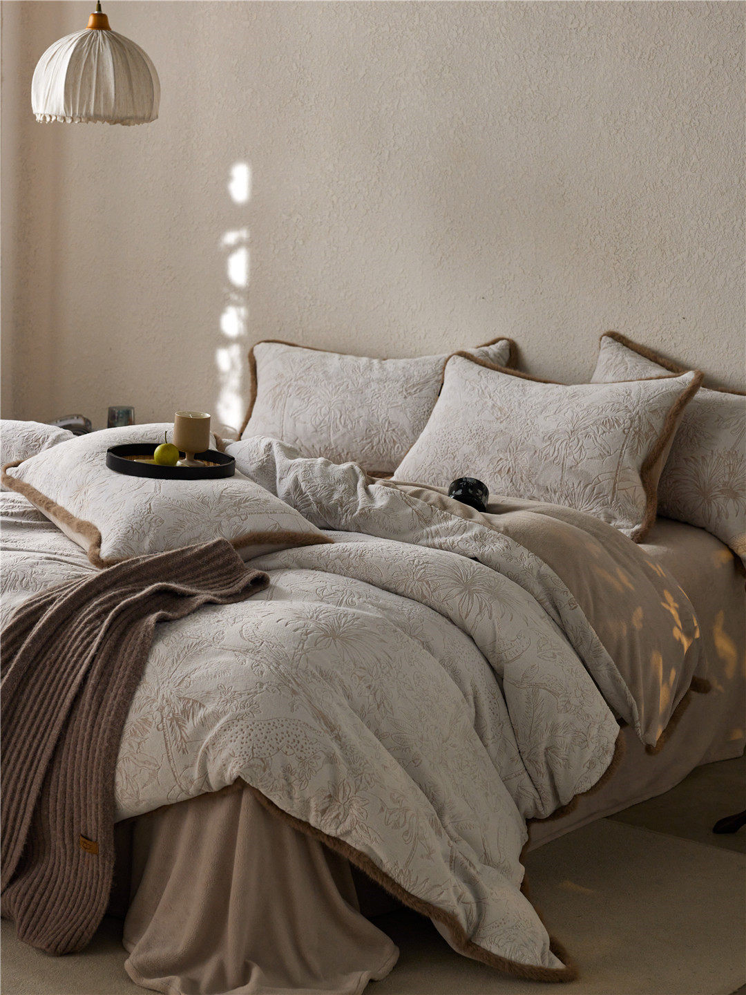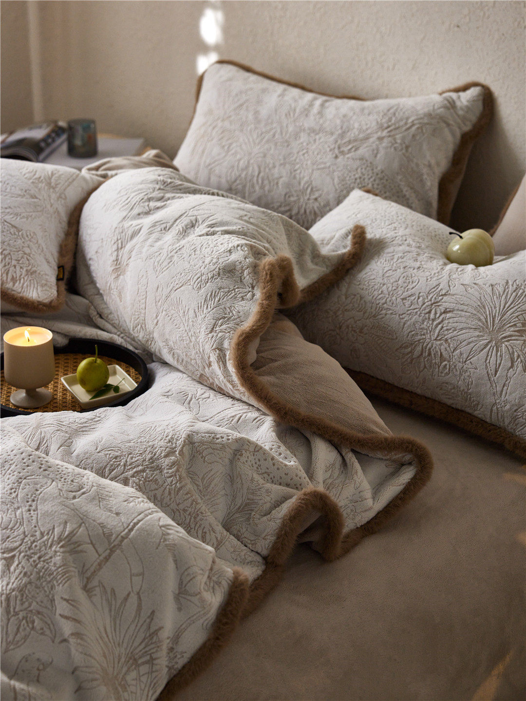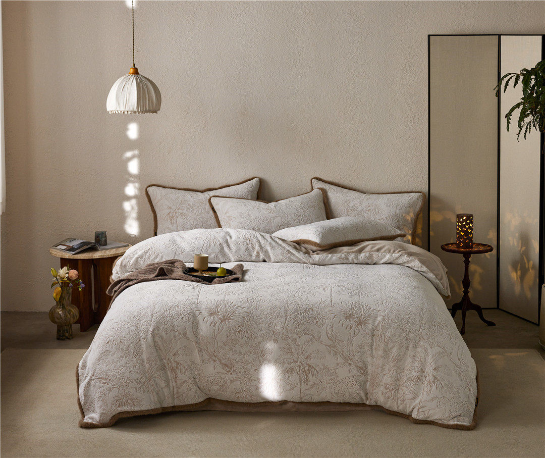 French Jungle Style Carved Fleece Thickened Warm Bedding Advanced Sense Milk Fleece Four-piece Set Antistatic Class A Bedding