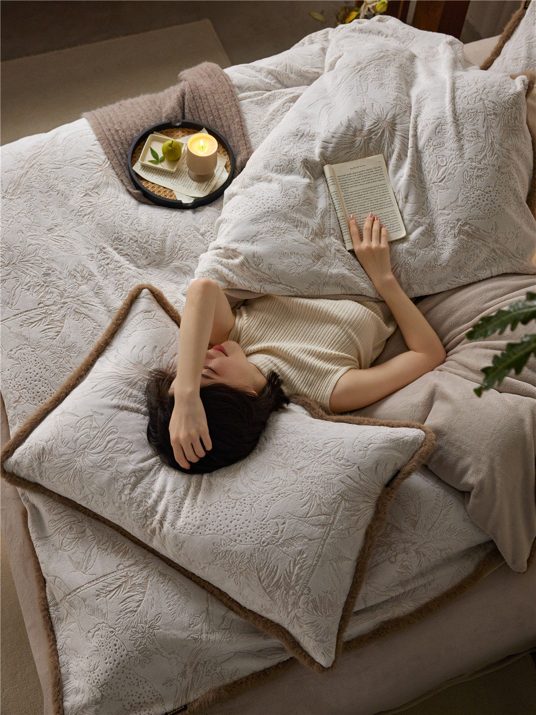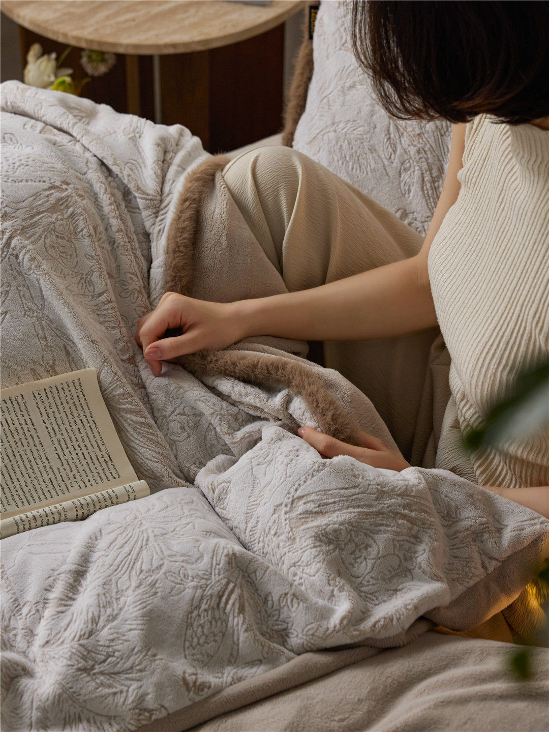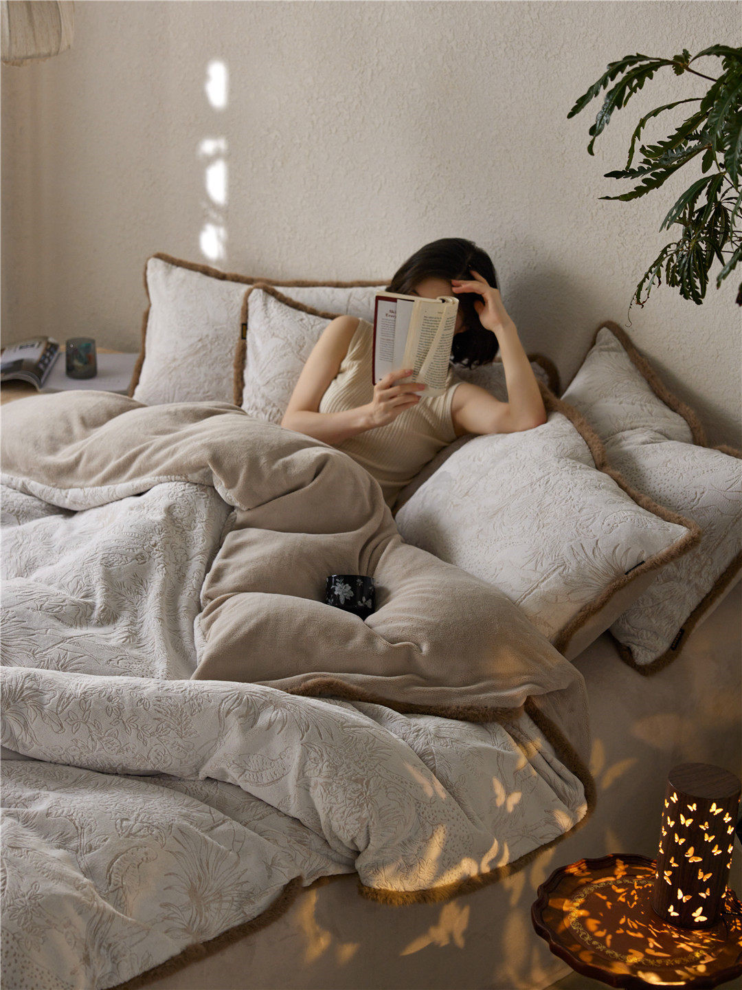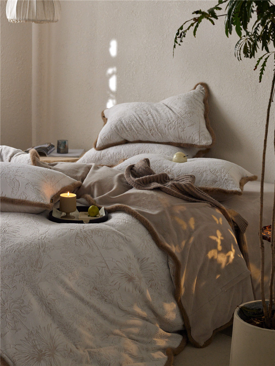French Jungle Style Carved Fleece Thickened Warm Bedding Advanced Sense Milk Fleece Four-piece Set Antistatic Class A Bedding
