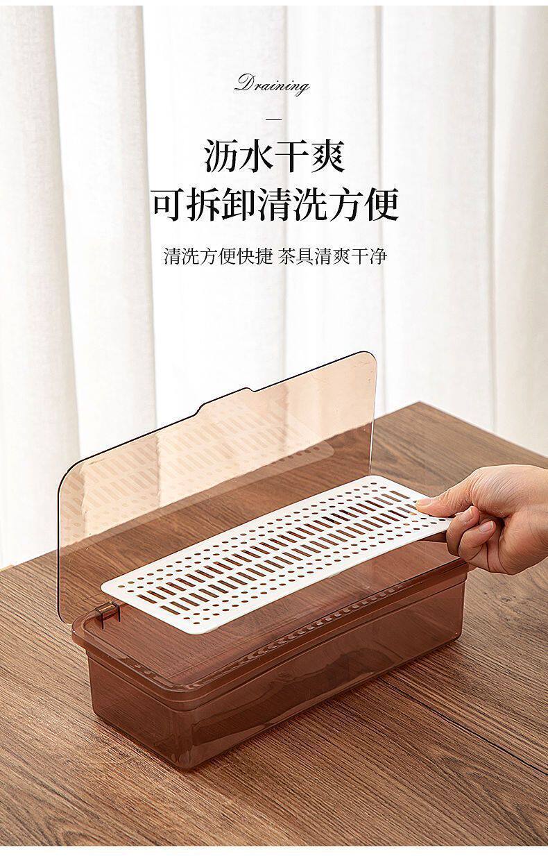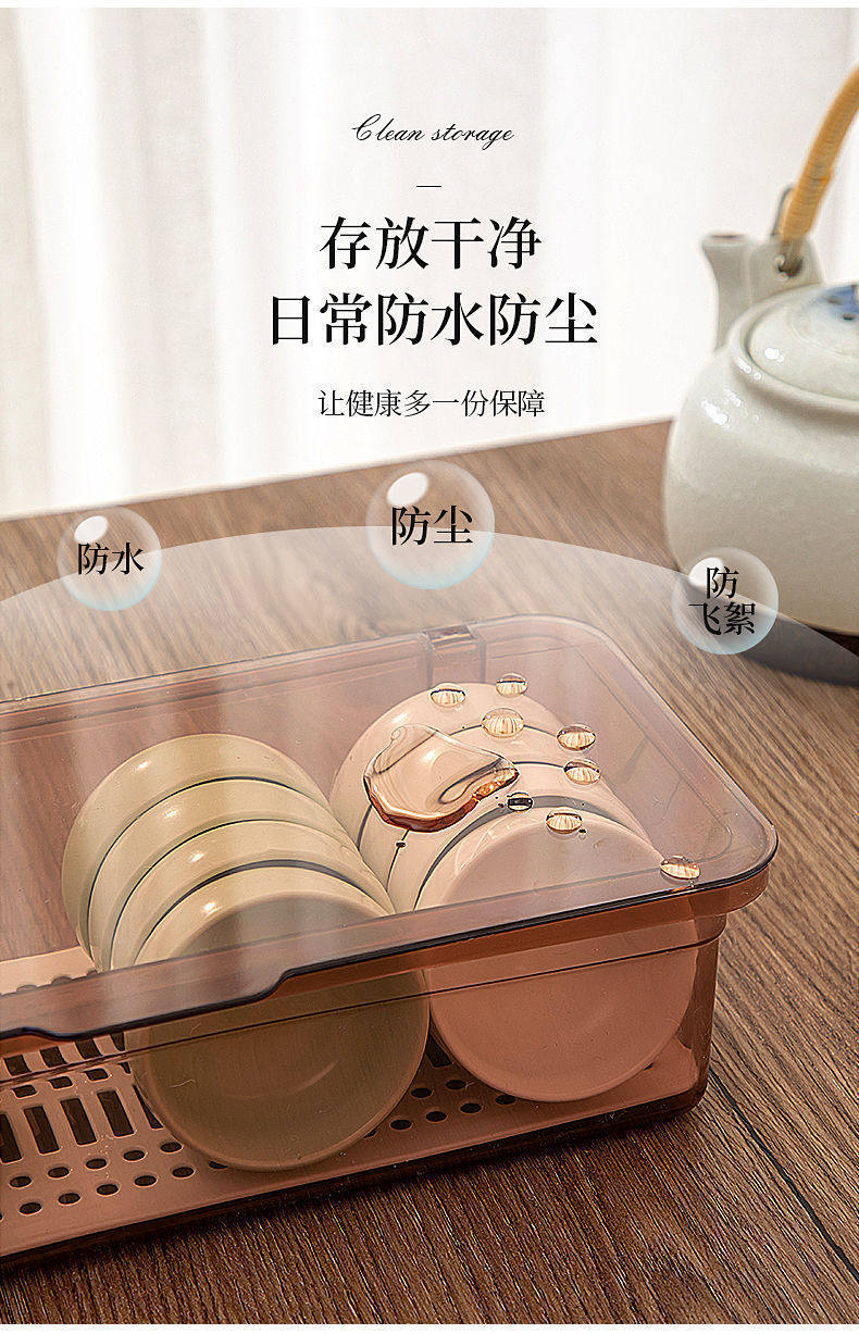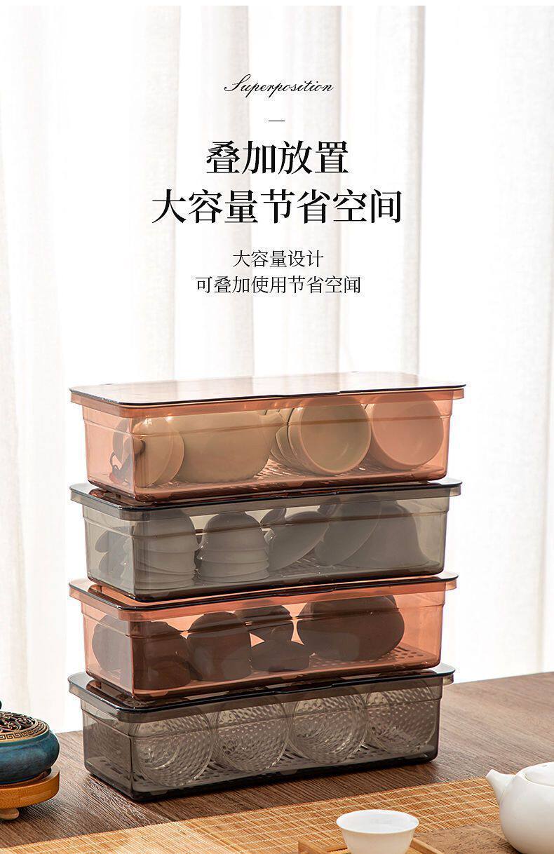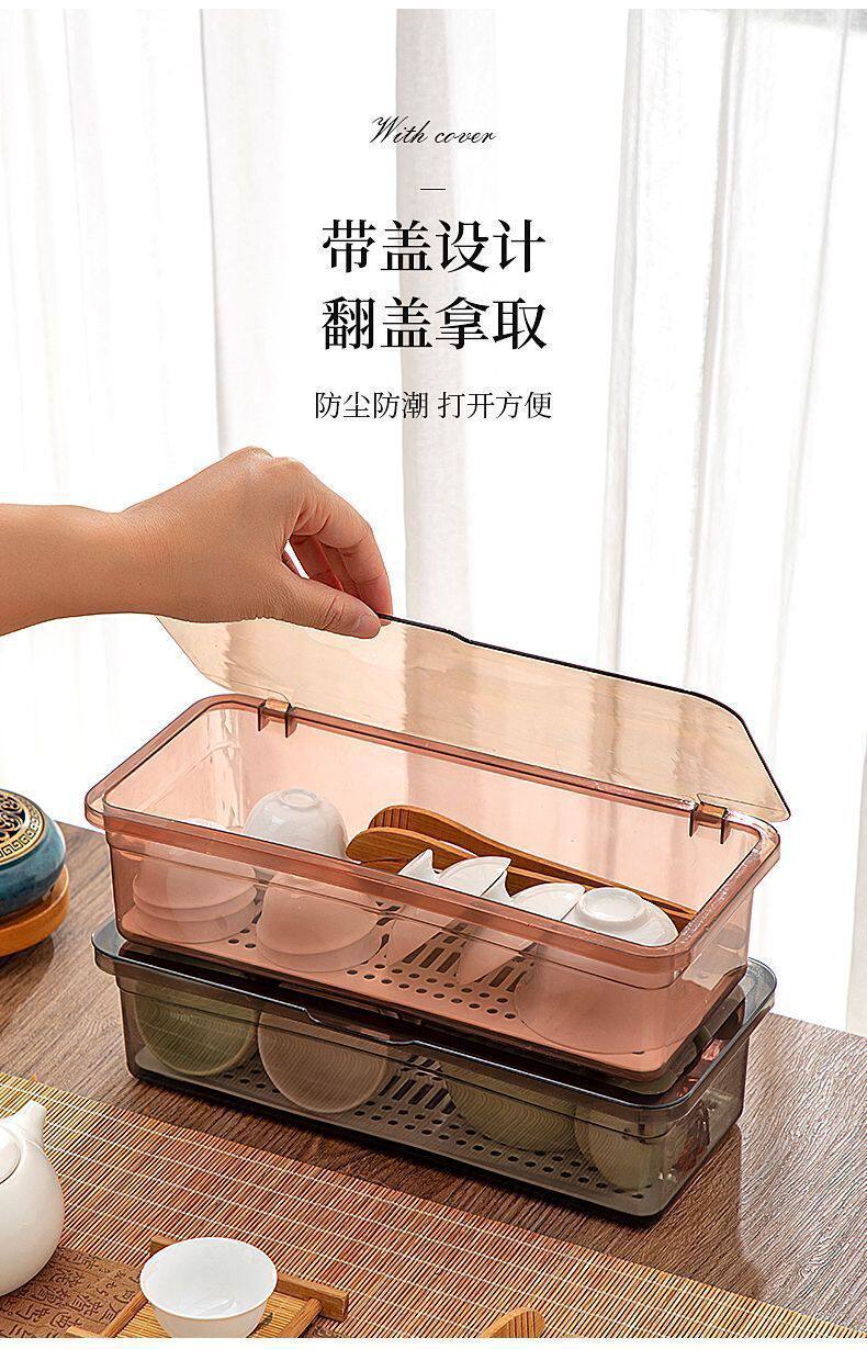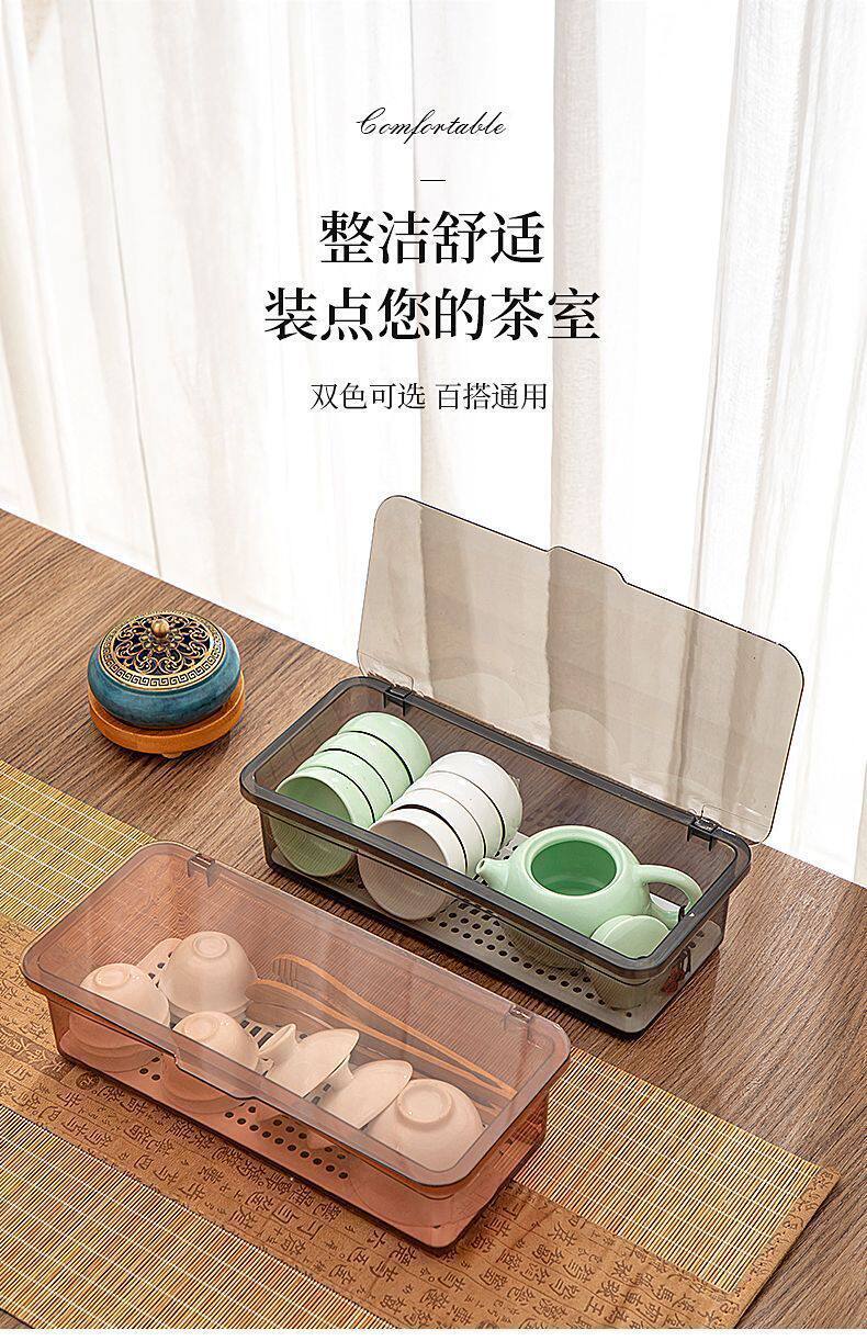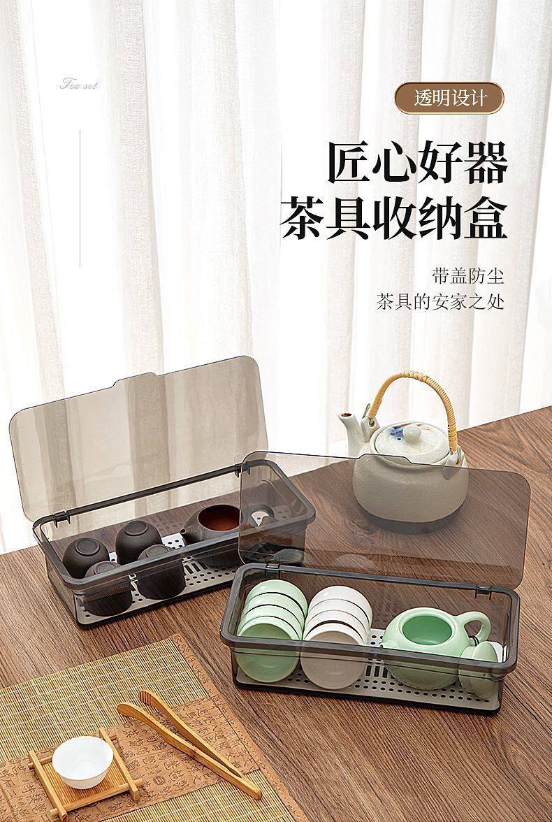 Tea Set Storage Box Desktop Dustproof with Lid Tea Cup Tea Bowl Teapot Stackable Storage Rack Lipstick Eyebrow Pen Storage Box
