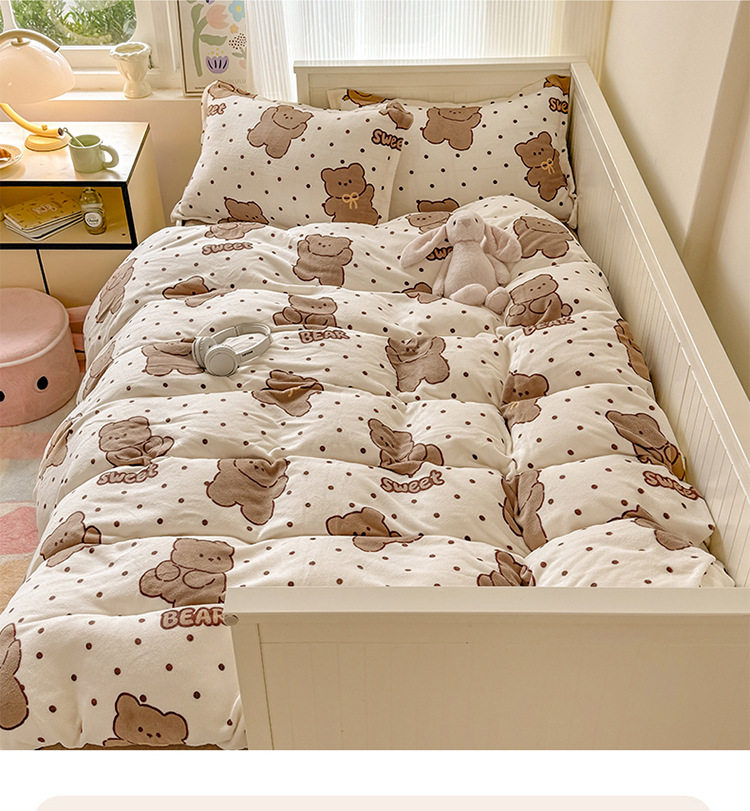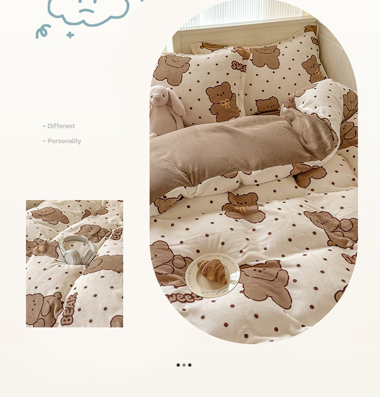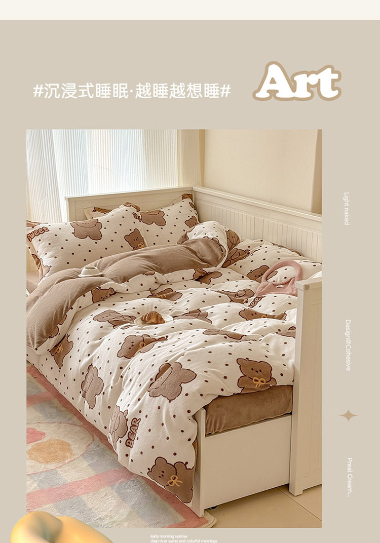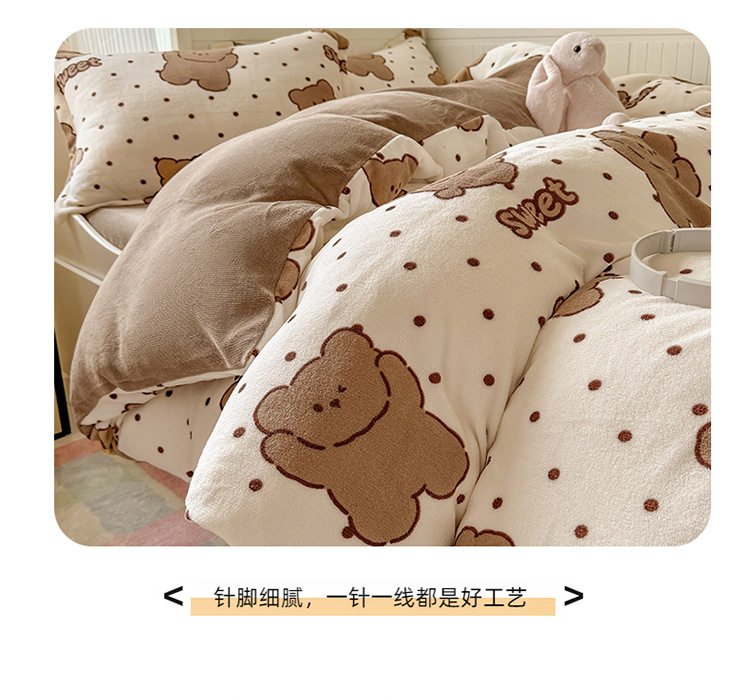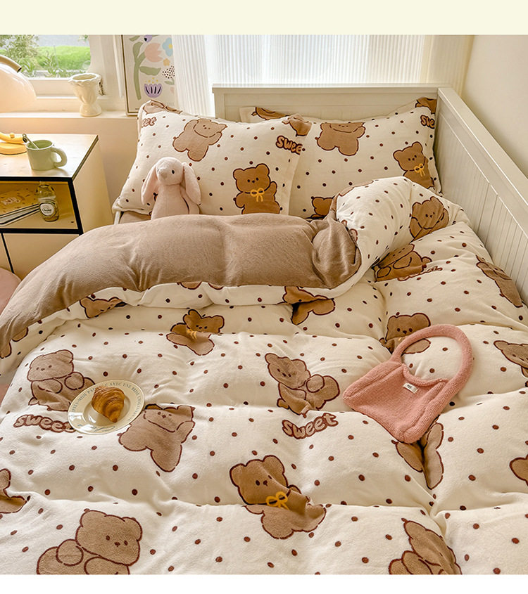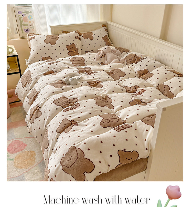 Ins Style Milk Velvet Winter Four-piece Set Student Dormitory Faleel Velvet Bed Three-piece Set Quilt Cover Cartoon Bear Bed Sheet