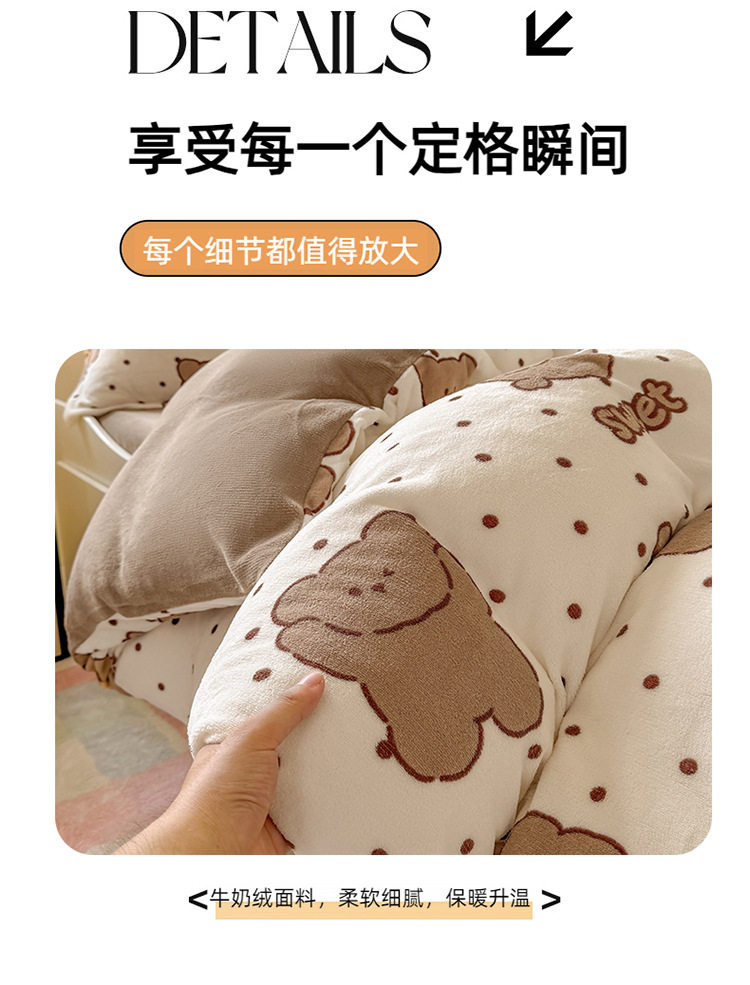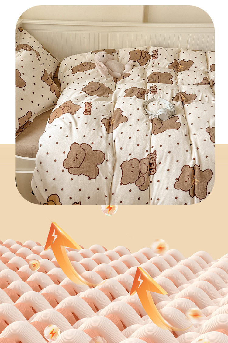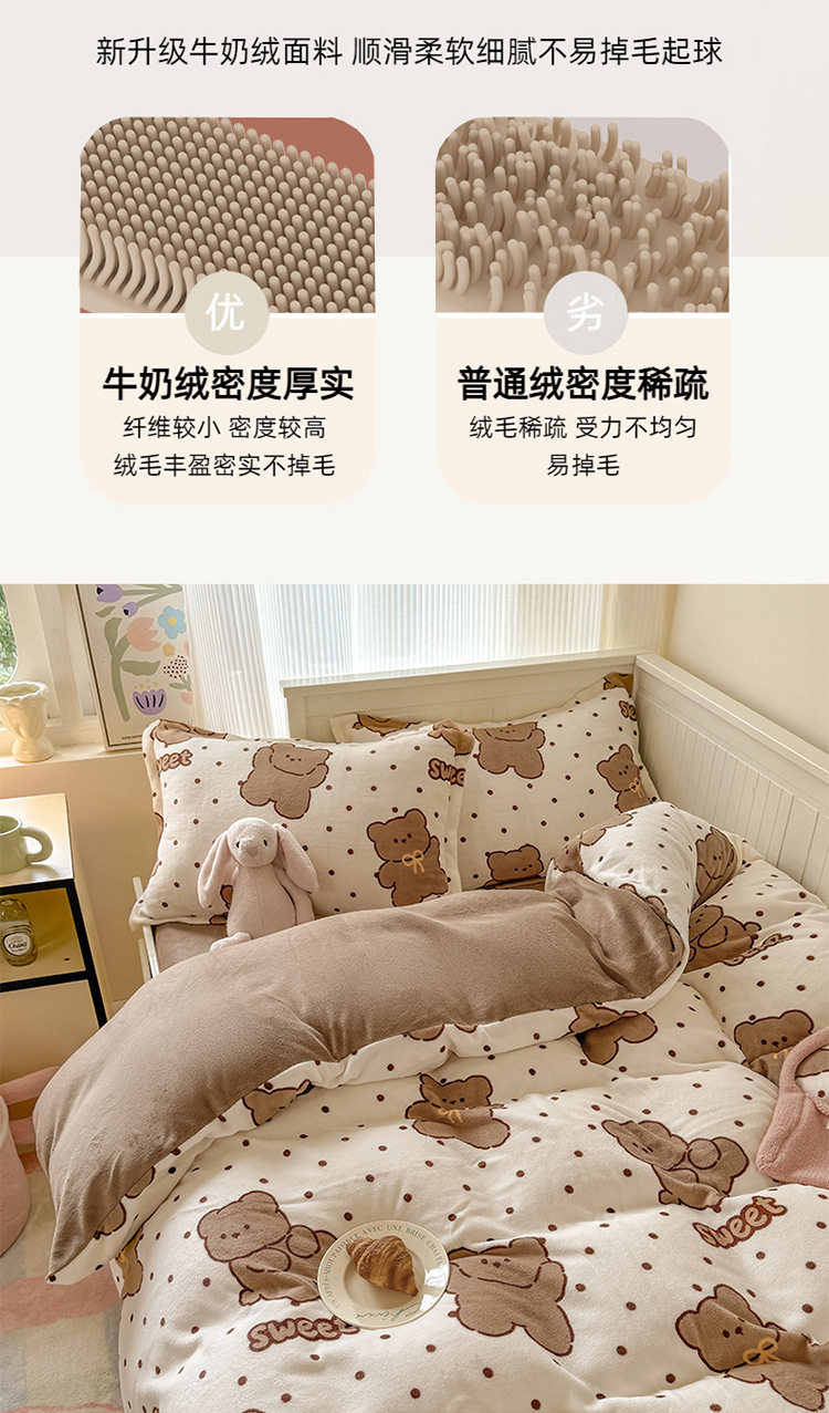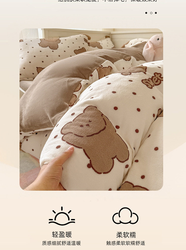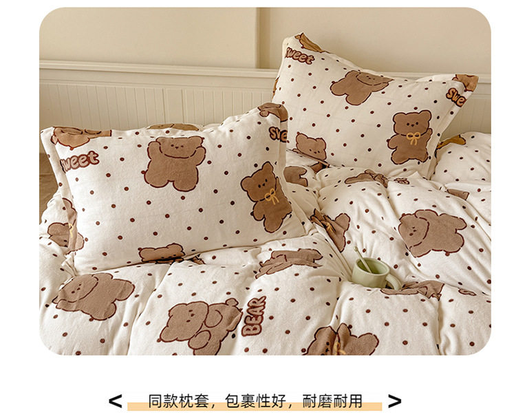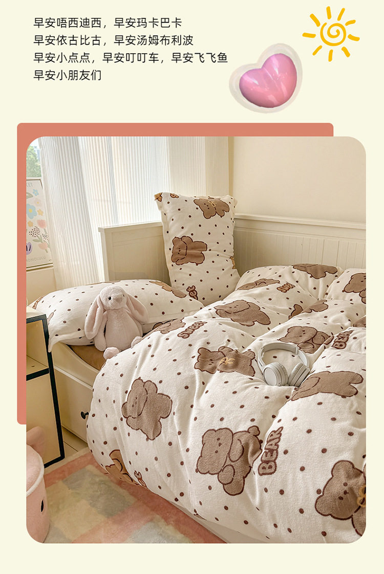 Ins Style Milk Velvet Winter Four-piece Set Student Dormitory Faleel Velvet Bed Three-piece Set Quilt Cover Cartoon Bear Bed Sheet