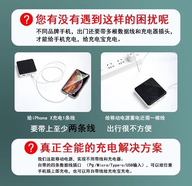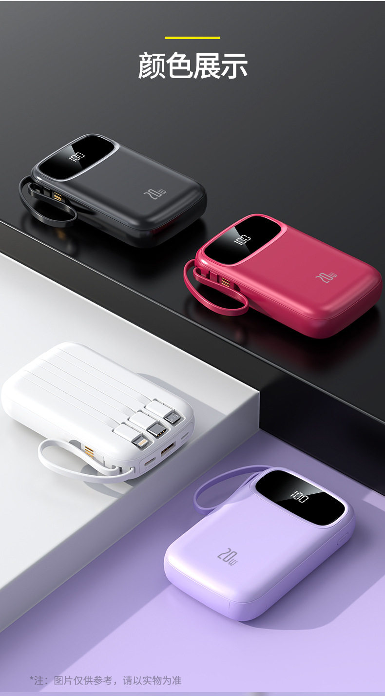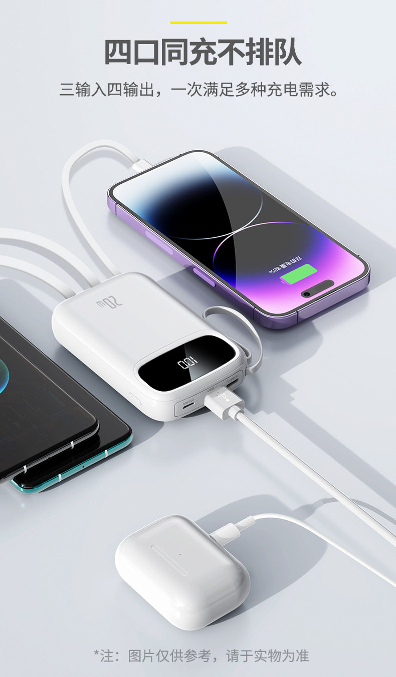 3C Certified 20000Mah Capacity Power Bank, Fast Charging, Mini Portable, Comes with 4 Cables, Mobile Power Supply, Gift Printing
