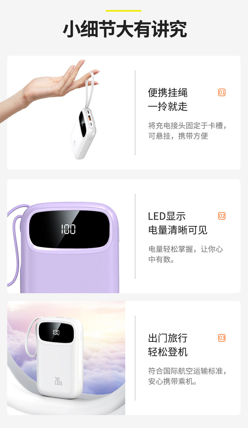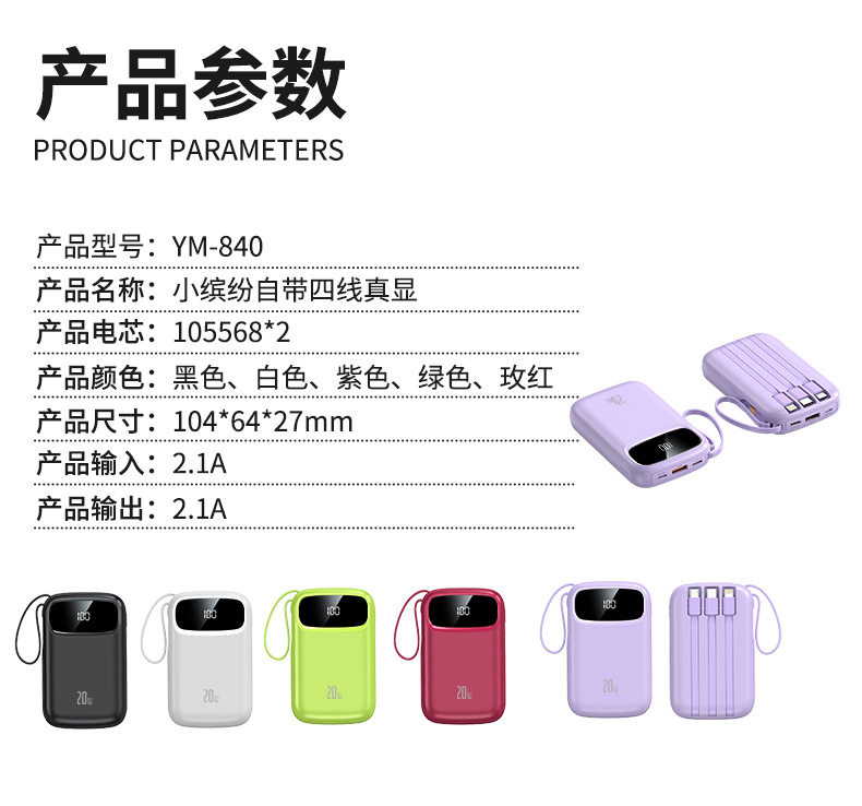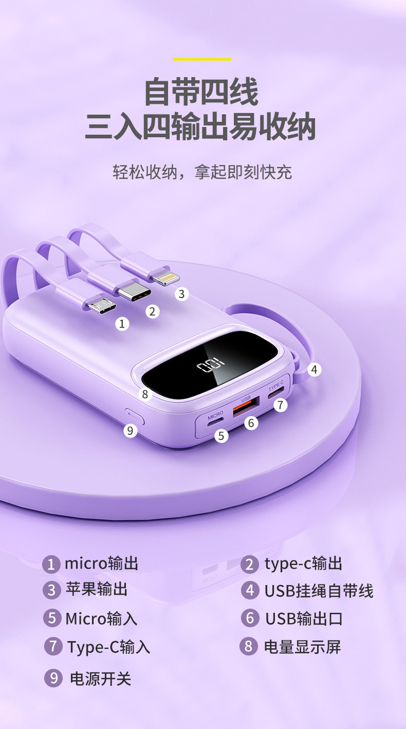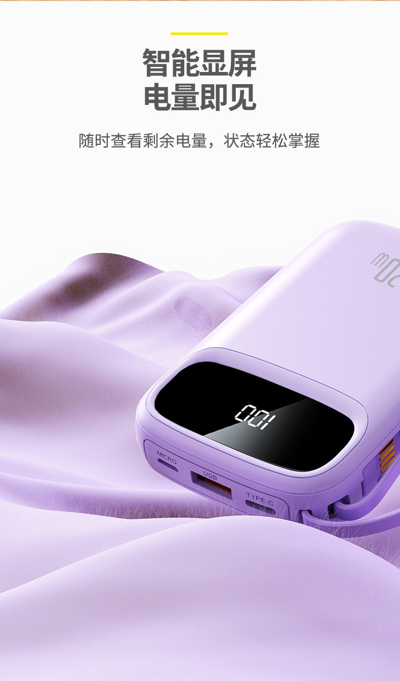 | Function | Comes with data cable,Multiple usb port output,Support fast charging,Digital display of battery level |