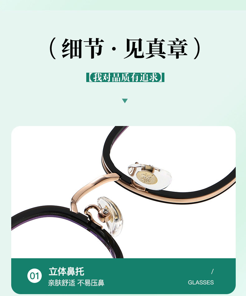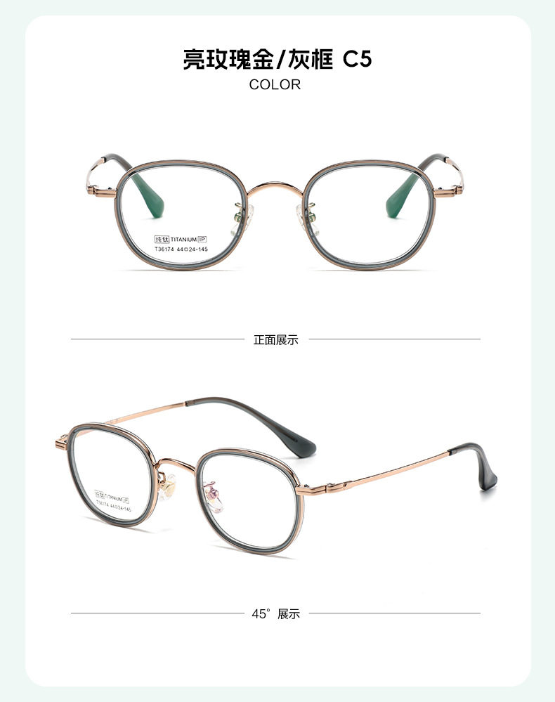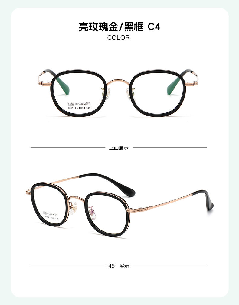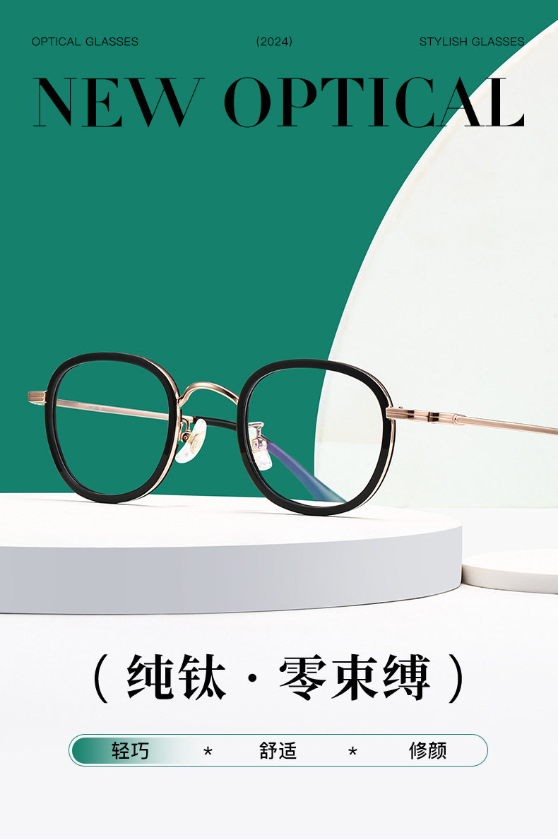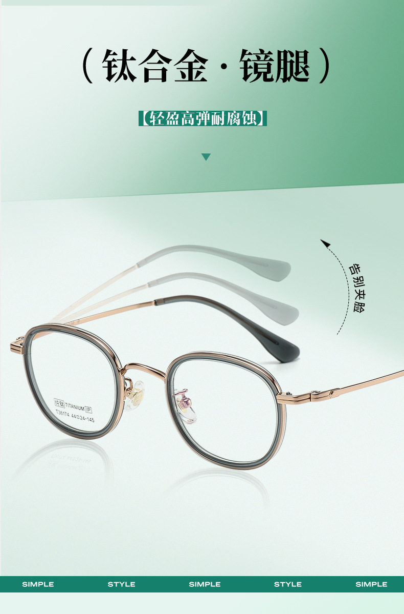New Ins High-Looking Small Frame for Women, Fashionable and Compact Gold Glue Pure Titanium Oval Frame Factory Direct Sales