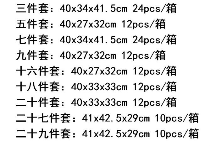 | Specifications | Three-piece baking set,Five-piece baking set,Seven-piece baking set,Nine-piece baking set,Sixteen-piece baking set,Eighteen-piece baking set,Twenty-piece baking set,Twenty-seven baking set,Twenty nine-piece baking set |