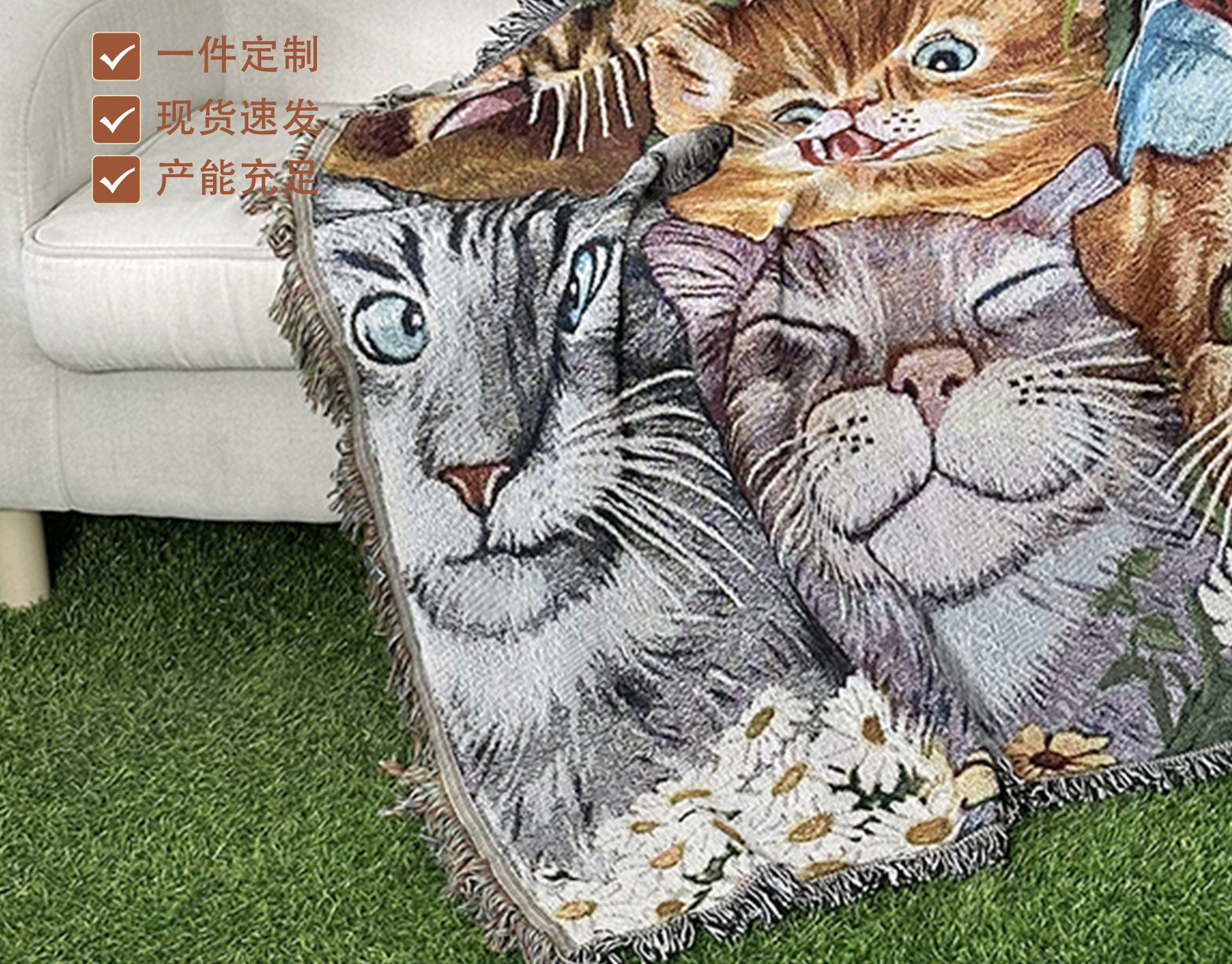 American Tapestry Cat Polyester Cotton Blanket European Style Home Decoration Fabric Washable Thickeneded Tapestry