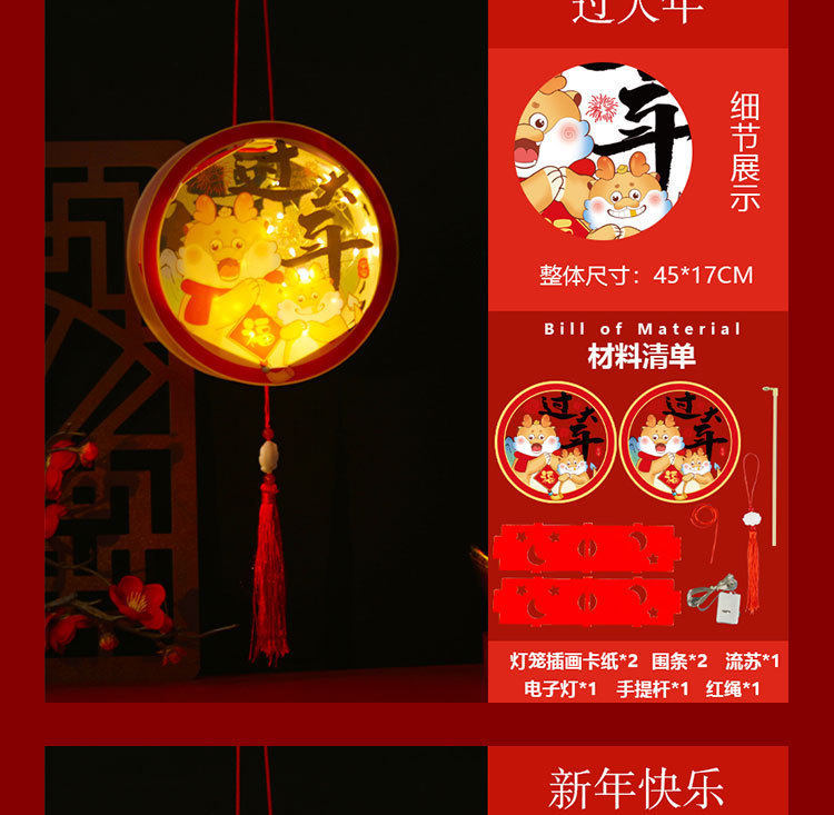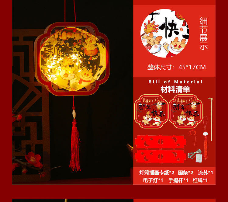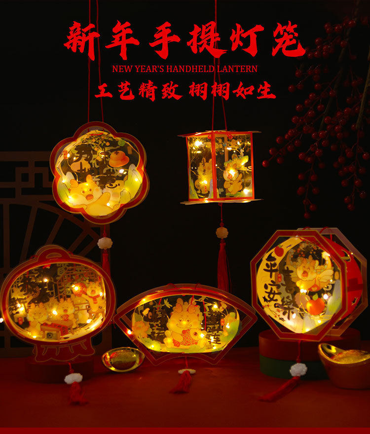 New Year Lantern Festival Dragon Lantern New Year Children's Portable DIY Lantern Material Bag PVC Luminous Lantern Lantern Decoration