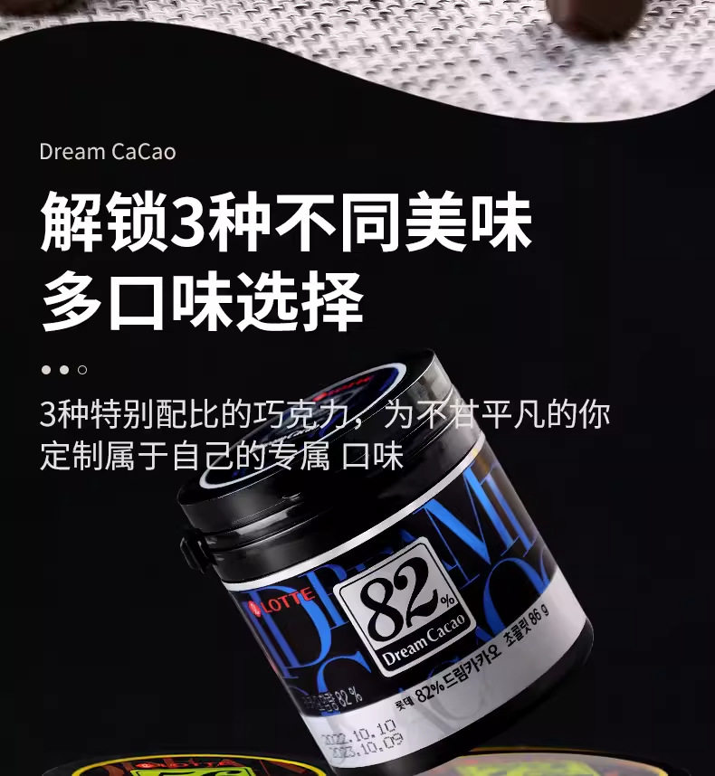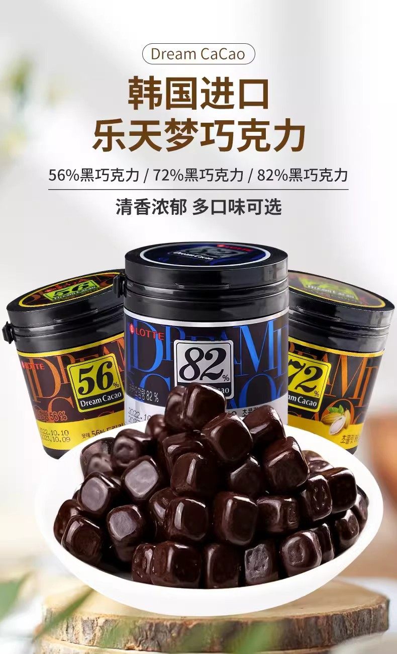 South Korea imported Lotte dream dark chocolate beans 72% 56% 82% canned 86g pure cocoa butter sugar beans