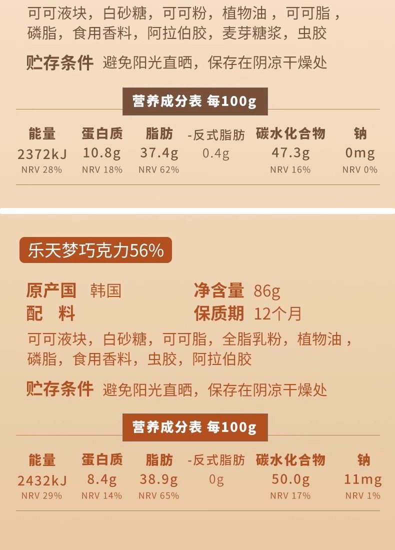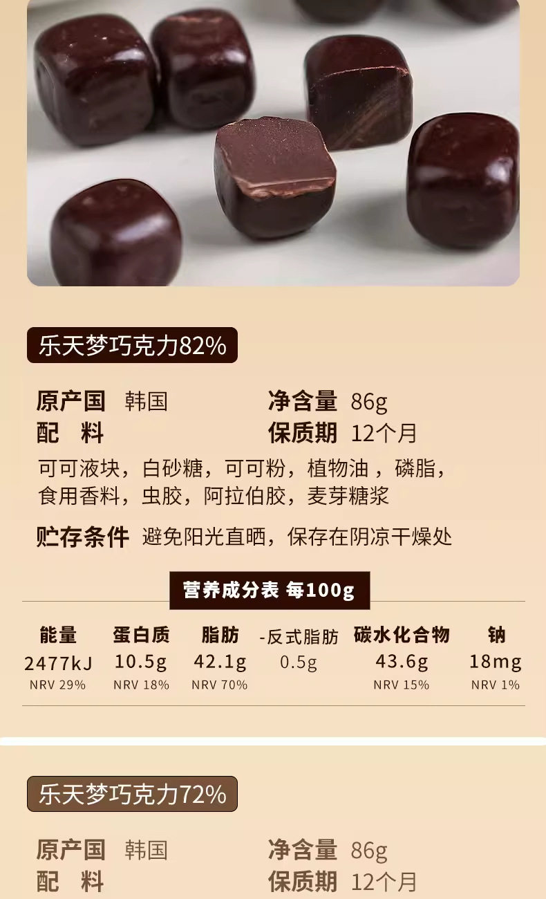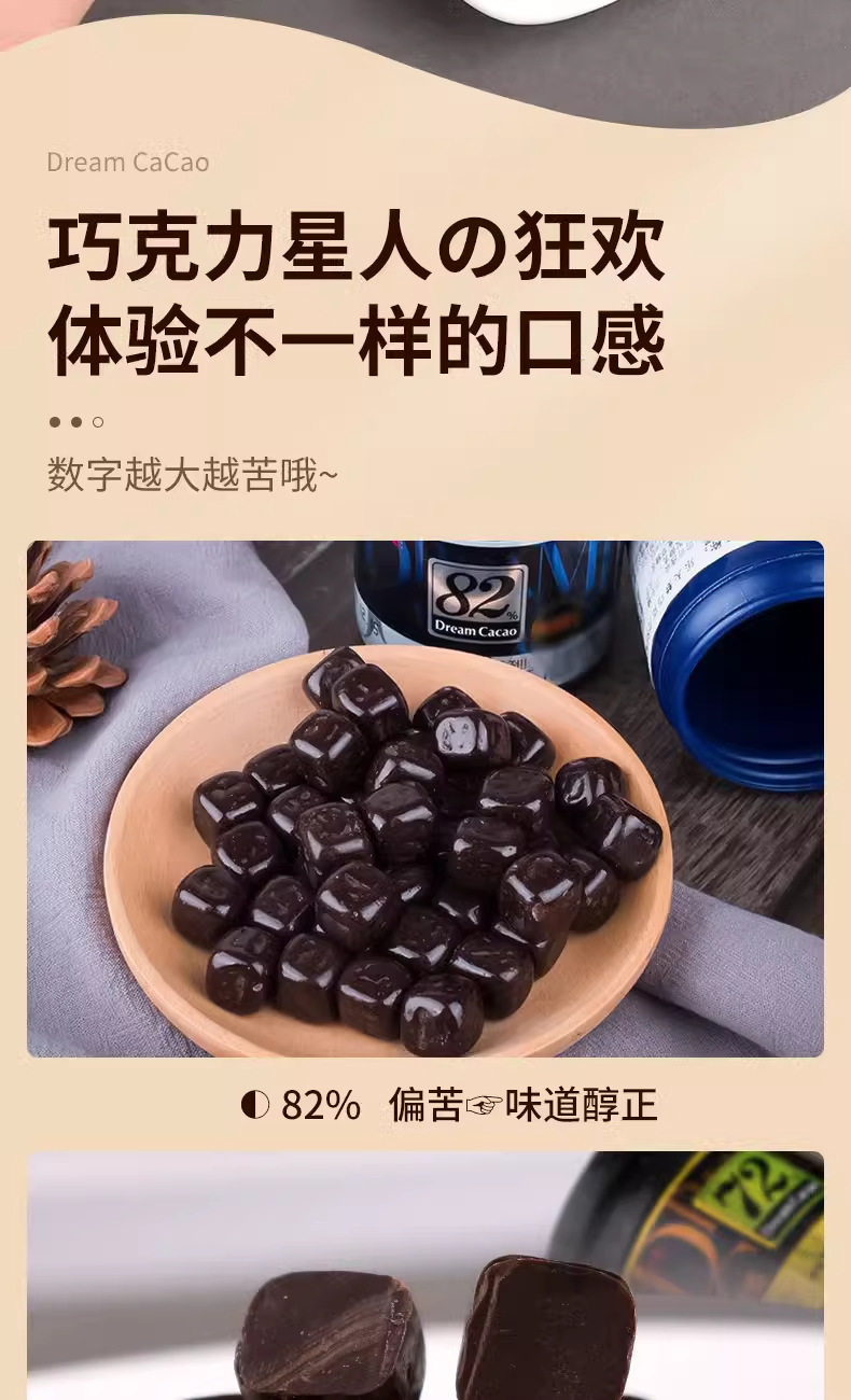 | Packaging specifications | 56% chocolate beans 86g,72% chocolate beans 86g,82% chocolate beans 86g |