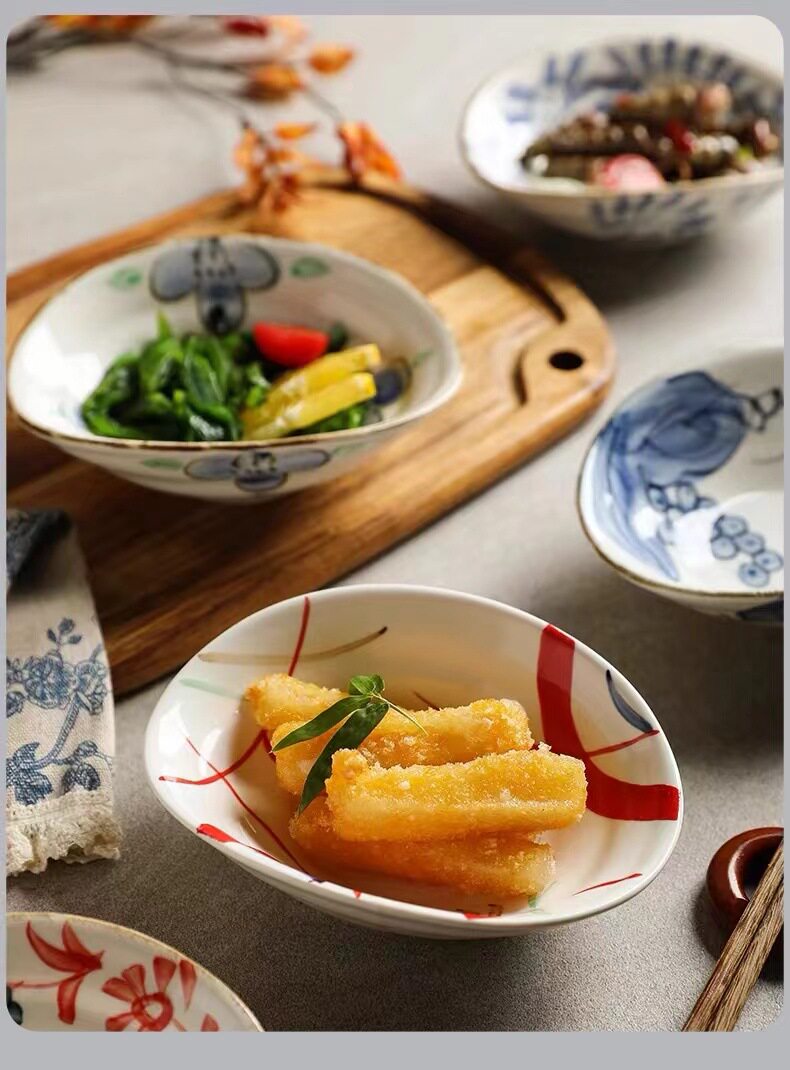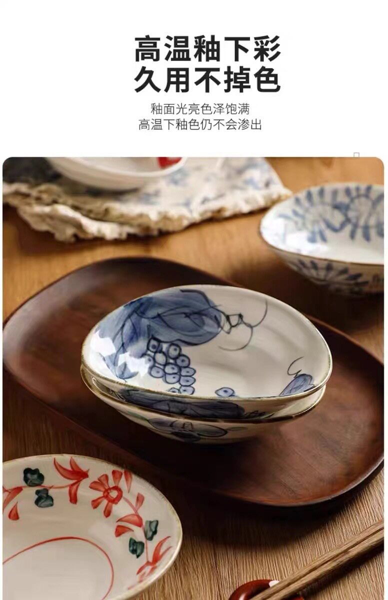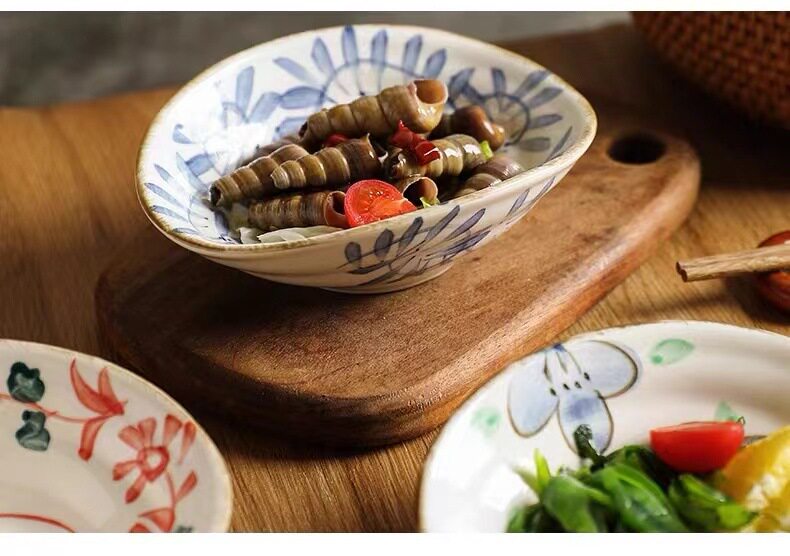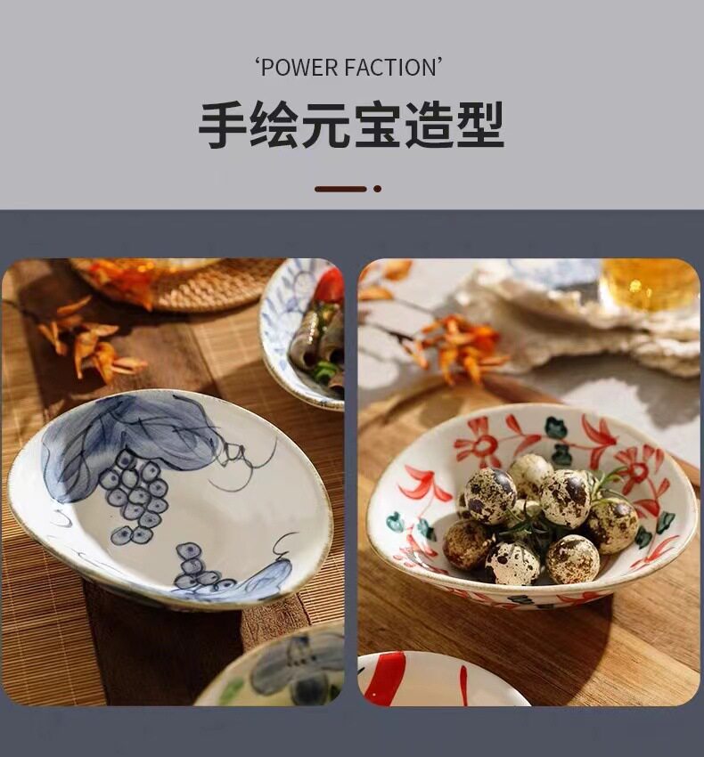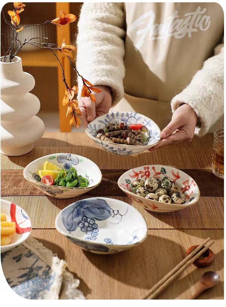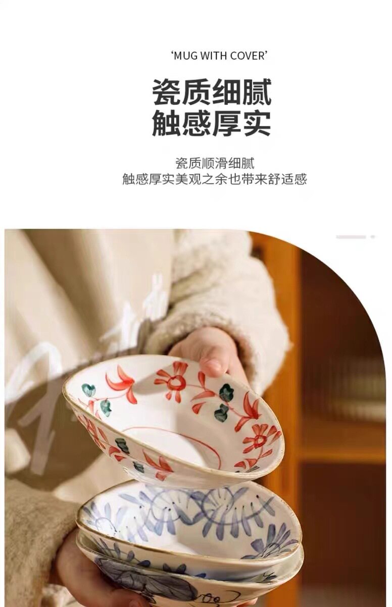 Hand-painted shallow dish plate ceramic tableware retro breakfast plate shallow bowl hand-painted shaped dish restaurant cold dish