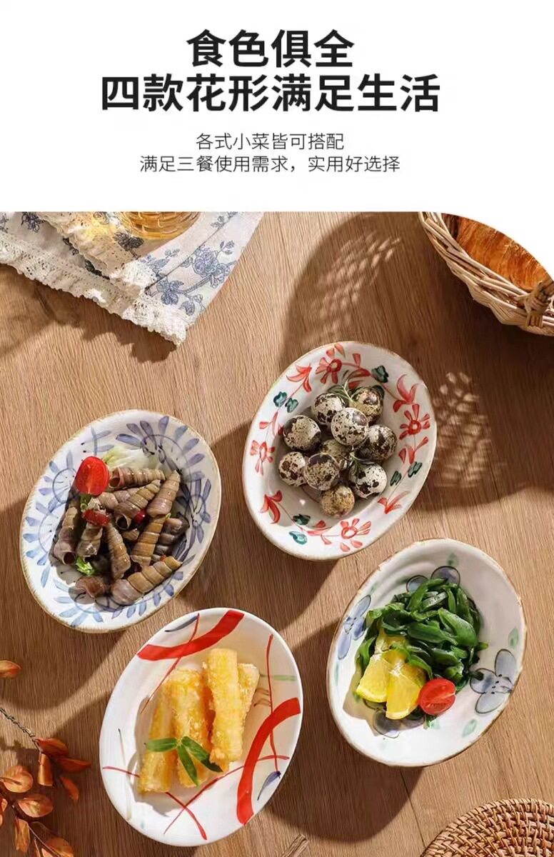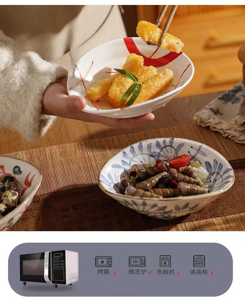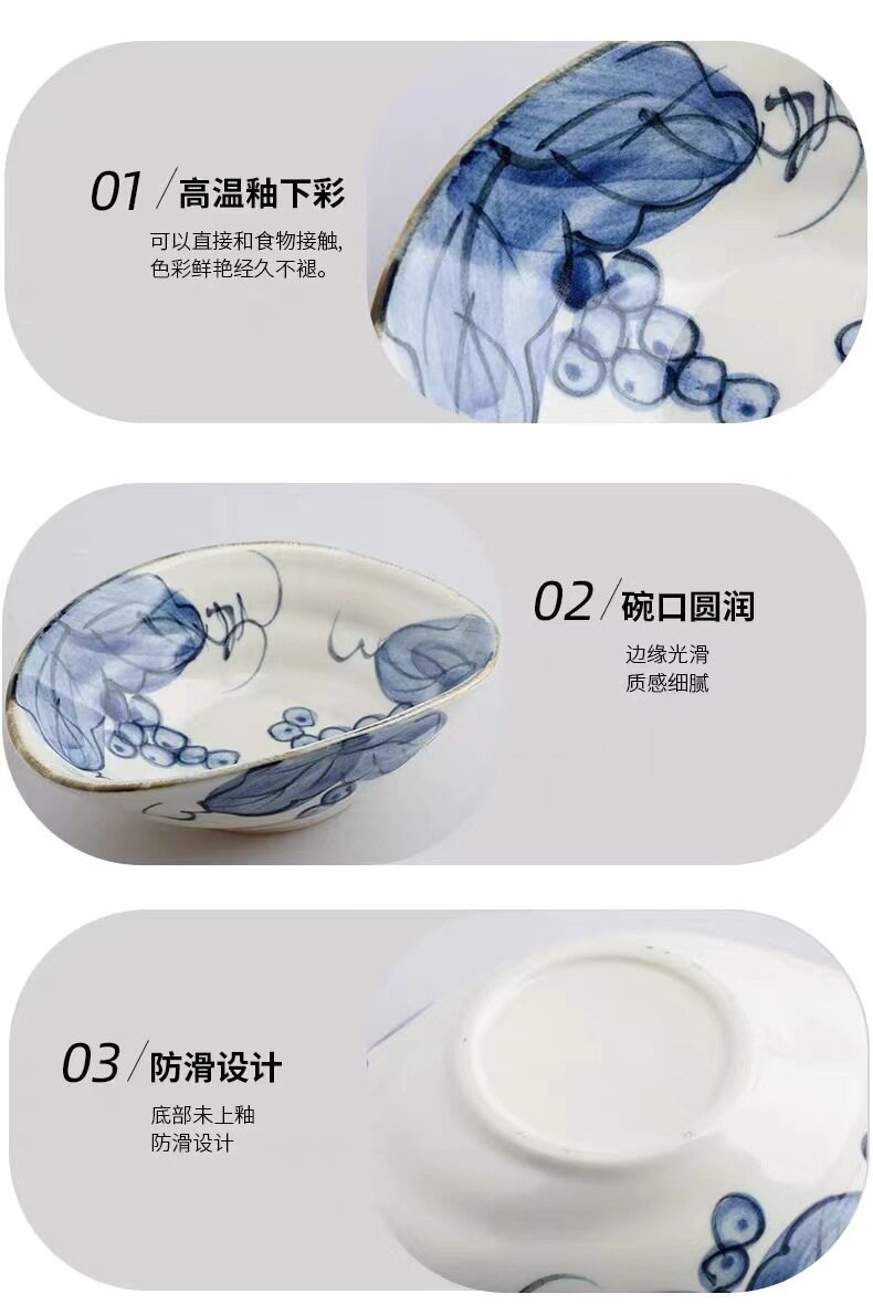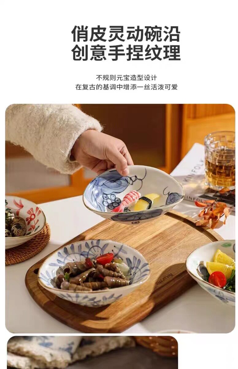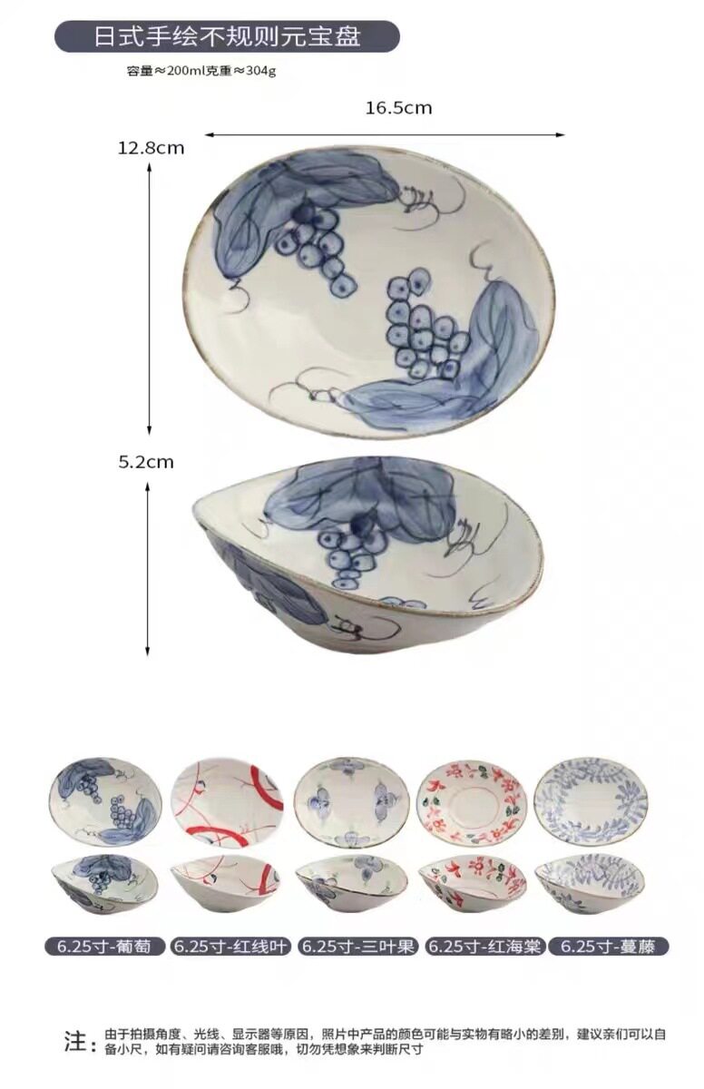 Hand-painted shallow dish plate ceramic tableware retro breakfast plate shallow bowl hand-painted shaped dish restaurant cold dish